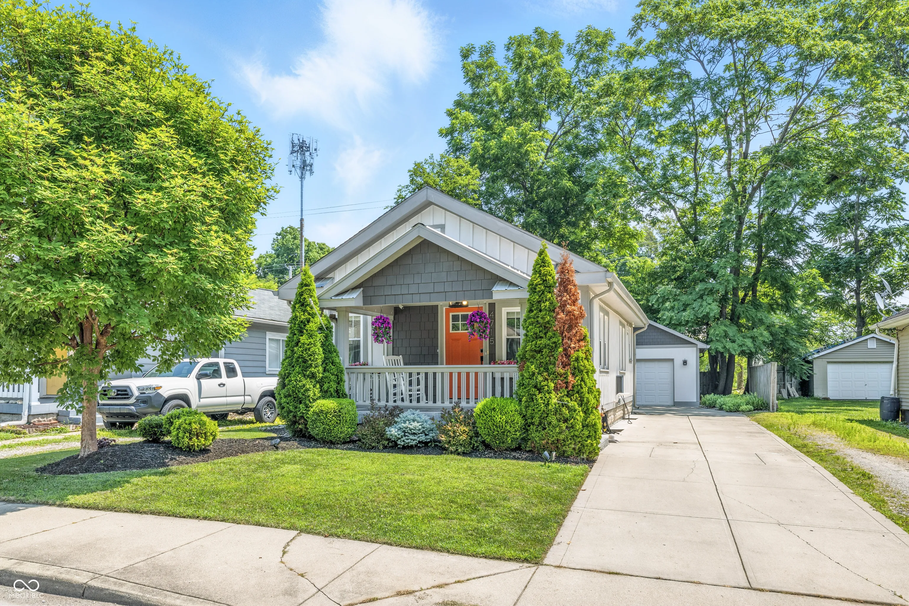 One of a Kind SOBRO Beautiful Bungalow! Everything has been updated including the professional landscaping with irrigation system for those hot days lately. Fiber Cement/composite siding, Craftsman trim & baseboards, Beautiful Hardwoods throughout first floor. Lovely inviting covered front porch to wind down a busy lifestyle! Large Living Room with Stunning eat-in kitchen with built-in bench, SS Appliances (gas Range), show stopping butcher-block counters and tile floor. Stylish full bathroom with dual shower heads and tile floor. Relax on the large concrete patio with fenced in back yard with nice lighting. Nice vegetable garden behind garage. The Monon walking trail is right behind the house or take a short walk to the Dunkin Donuts for a morning coffee. Large concrete driveway with oversized Garage. Smart Home Features include Ring Doorbell & Alarm System, Hardwired Cameras plus Monitor, Carbon Monoxide and Fire Protection also front, garage and backdoor electronic keypads. Full basement downstairs is clean, dry and ready to be finished if you want. Includes a Radon Mitigation system, ejection pump and upgraded wiring for car charger! All appliances including washer/dryer. Setup a showing today!