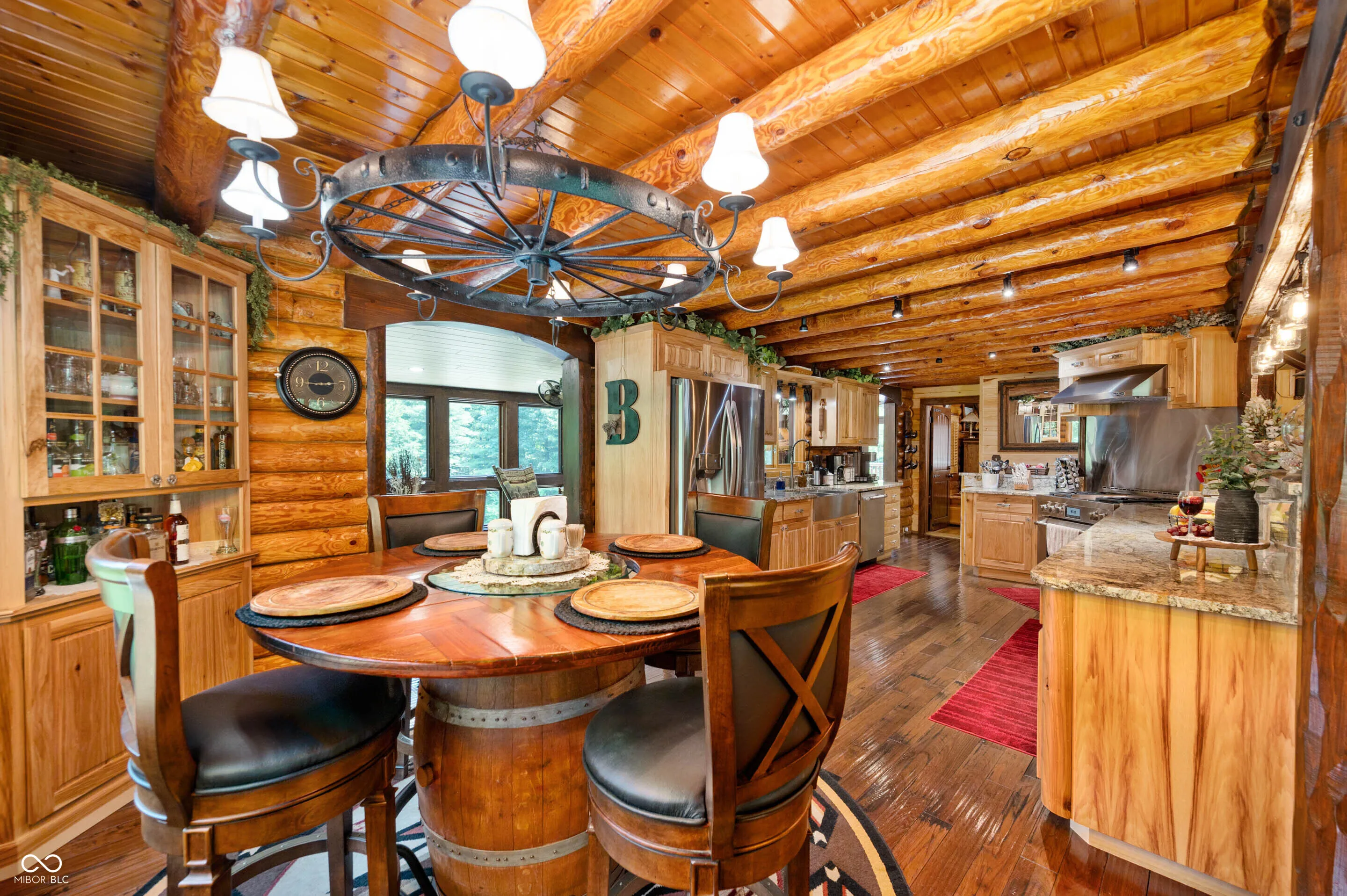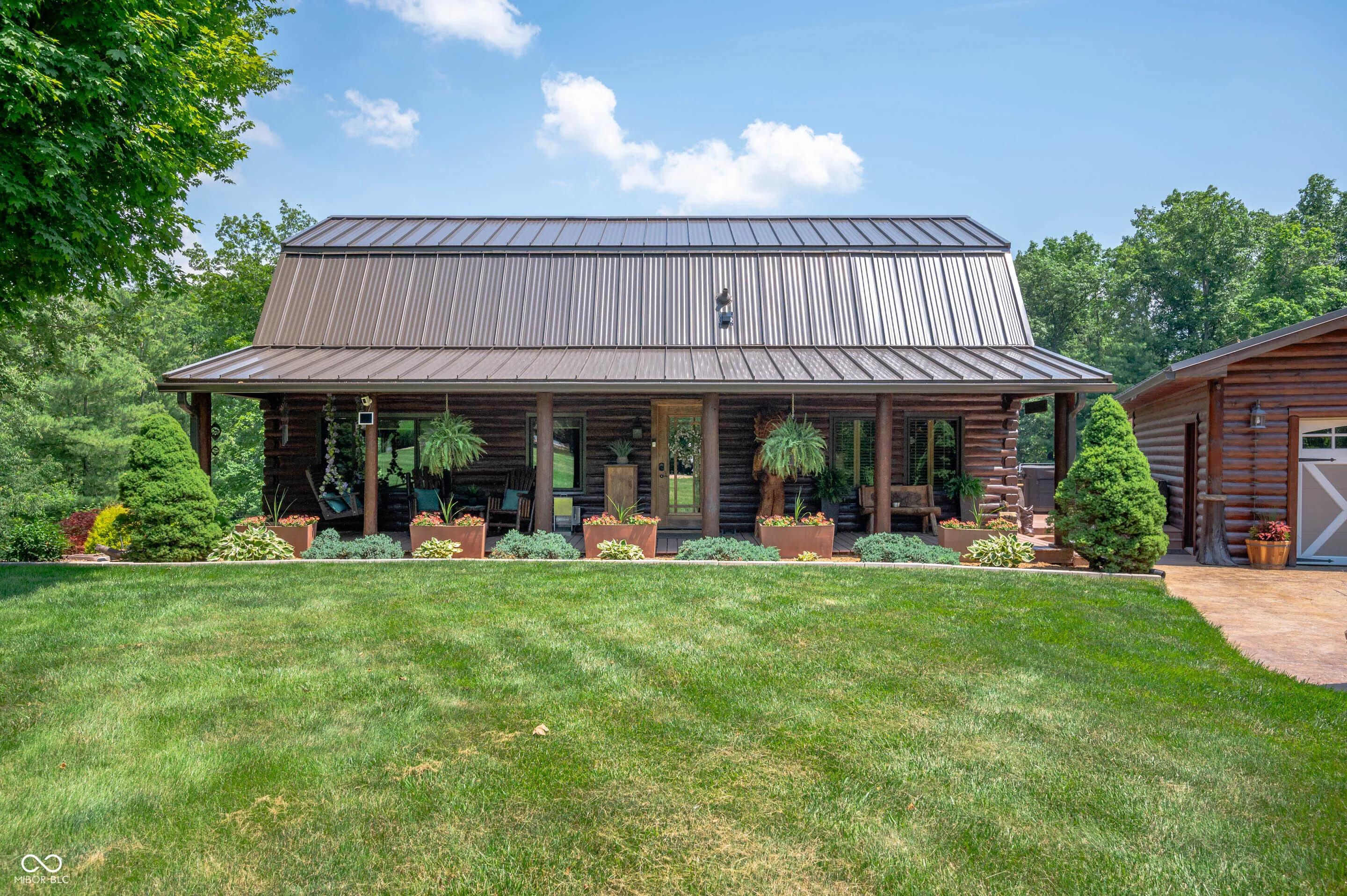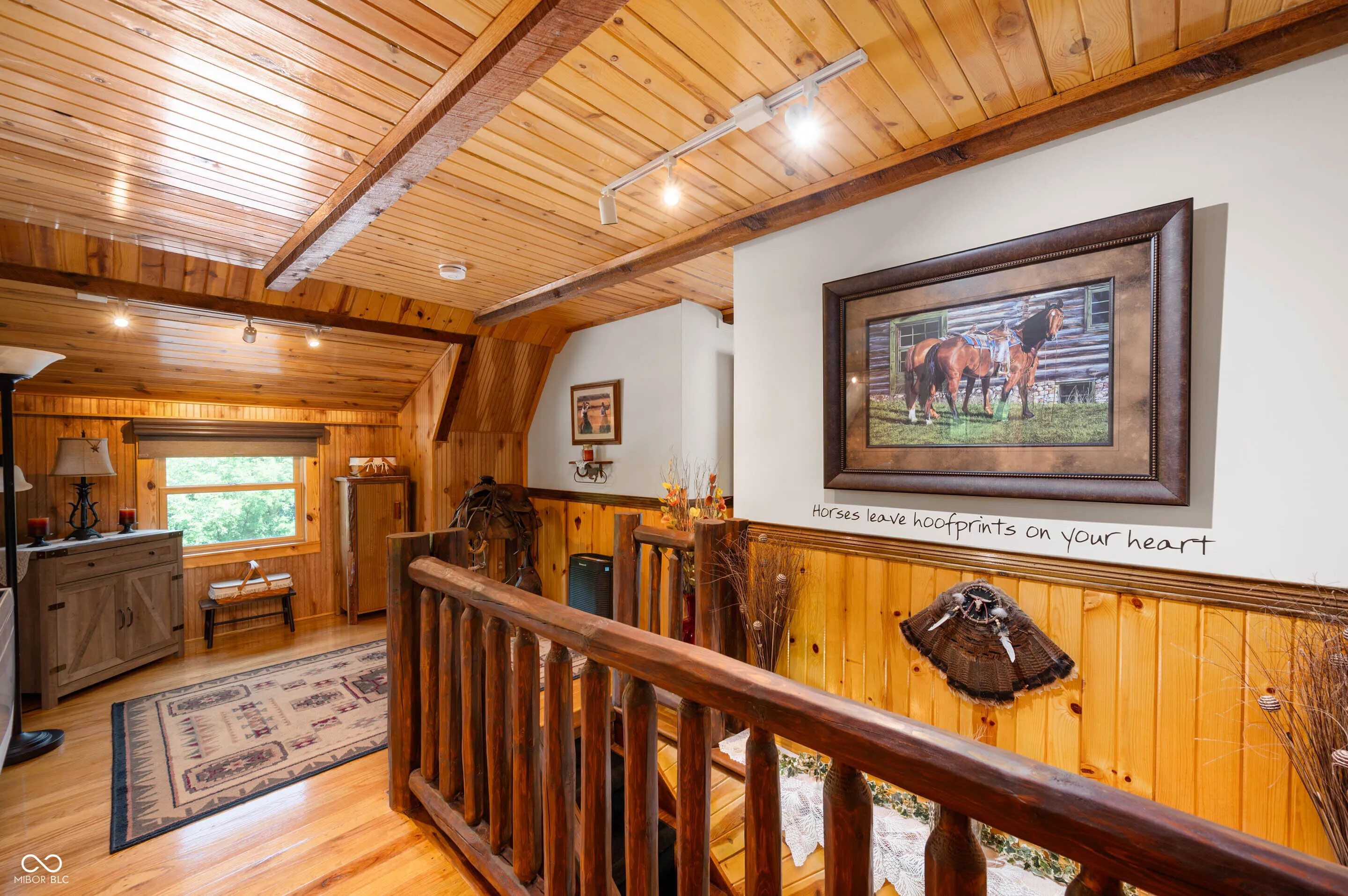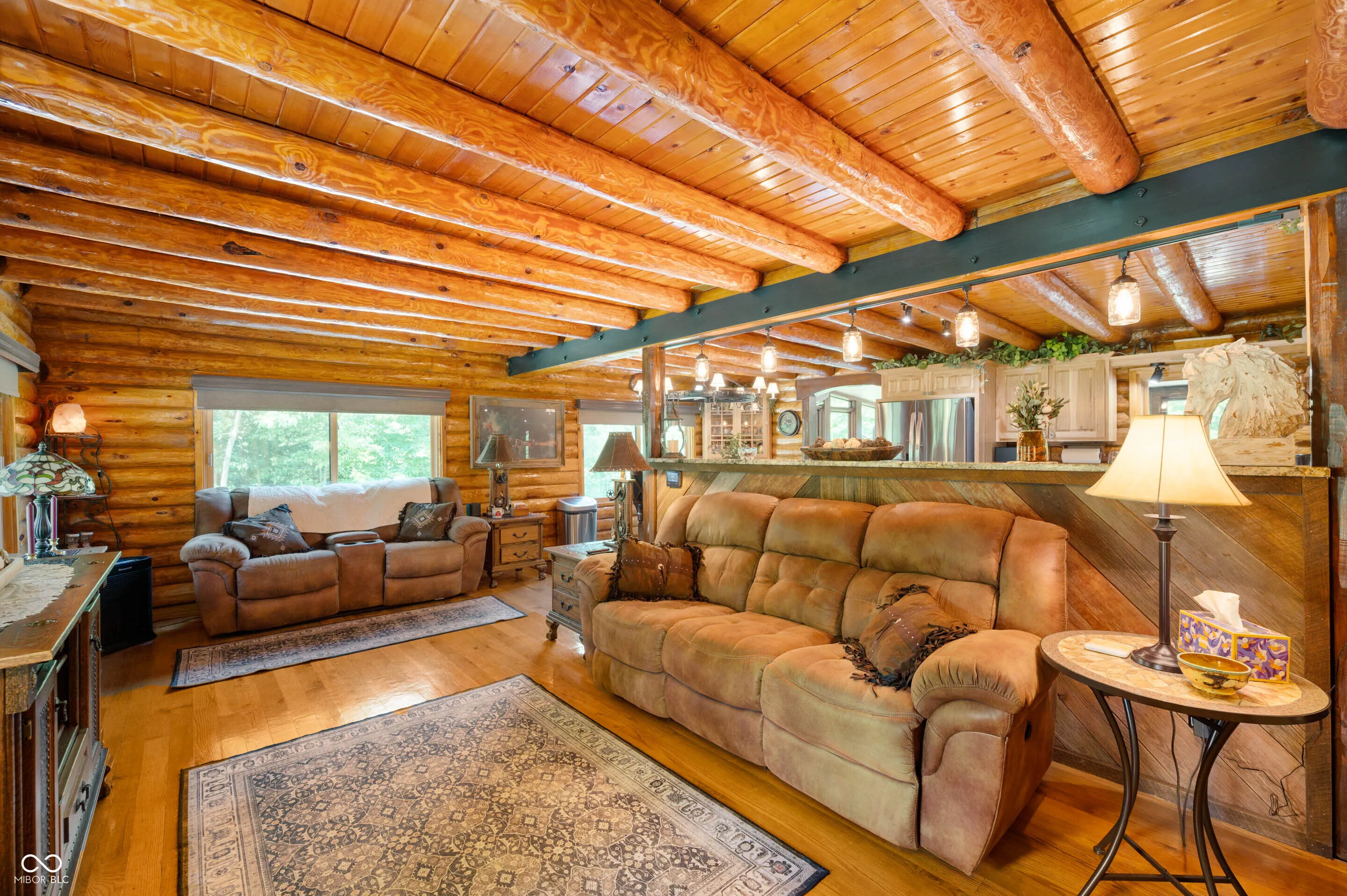 Experience the perfect blend of luxury, natural beauty, and equestrian living with this extraordinary 30+ acre estate. Tucked away in a serene setting, this one-of-a-kind property features a beautifully updated log cabin home, two stocked ponds, mature woods with winding trails, gently rolling hills, lush pastures, and a tranquil creek. With over $1.4 million in updates over the last eight years, every inch of this four-bedroom, three-bath home has been meticulously crafted for comfort and style. A private 700+ foot asphalt driveway leads you past the impressive 65×37 horse barn, complete with four stalls, a tack room, storage, office, hay loft with drop-down feeding system, and a horse watering system. A separate 53×14 storage area offers ideal space for boats, RVs, or additional equipment. As you approach the log home, you’re welcomed by a peaceful covered porch and the soothing sound of a custom waterfall. Inside, soaring wood-beamed ceilings, rich hardwood floors, and warm wood finishes create a rustic yet elegant ambiance. The chef’s kitchen features high-end granite countertops, a vented gas range, stainless steel appliances, and custom cabinetry. The expansive 39×14 four-season room offers breathtaking views of the ponds and forest beyond, perfect for year-round enjoyment. The main-level primary suite includes a luxurious spa-style bathroom, while three additional bedrooms and a loft upstairs provide ample space. The walk-out basement is ideal for entertaining, featuring a spacious 31×24 family room with fireplace and another 39×14 four-season room. A 20×12 bonus room off the garage is perfect for a mancave, home gym, or playroom. Professionally landscaped with exquisite stonework and retaining walls, the entire property is a retreat unlike any other. Properties of this caliber are rarely available-don’t miss your chance to own this private paradise.