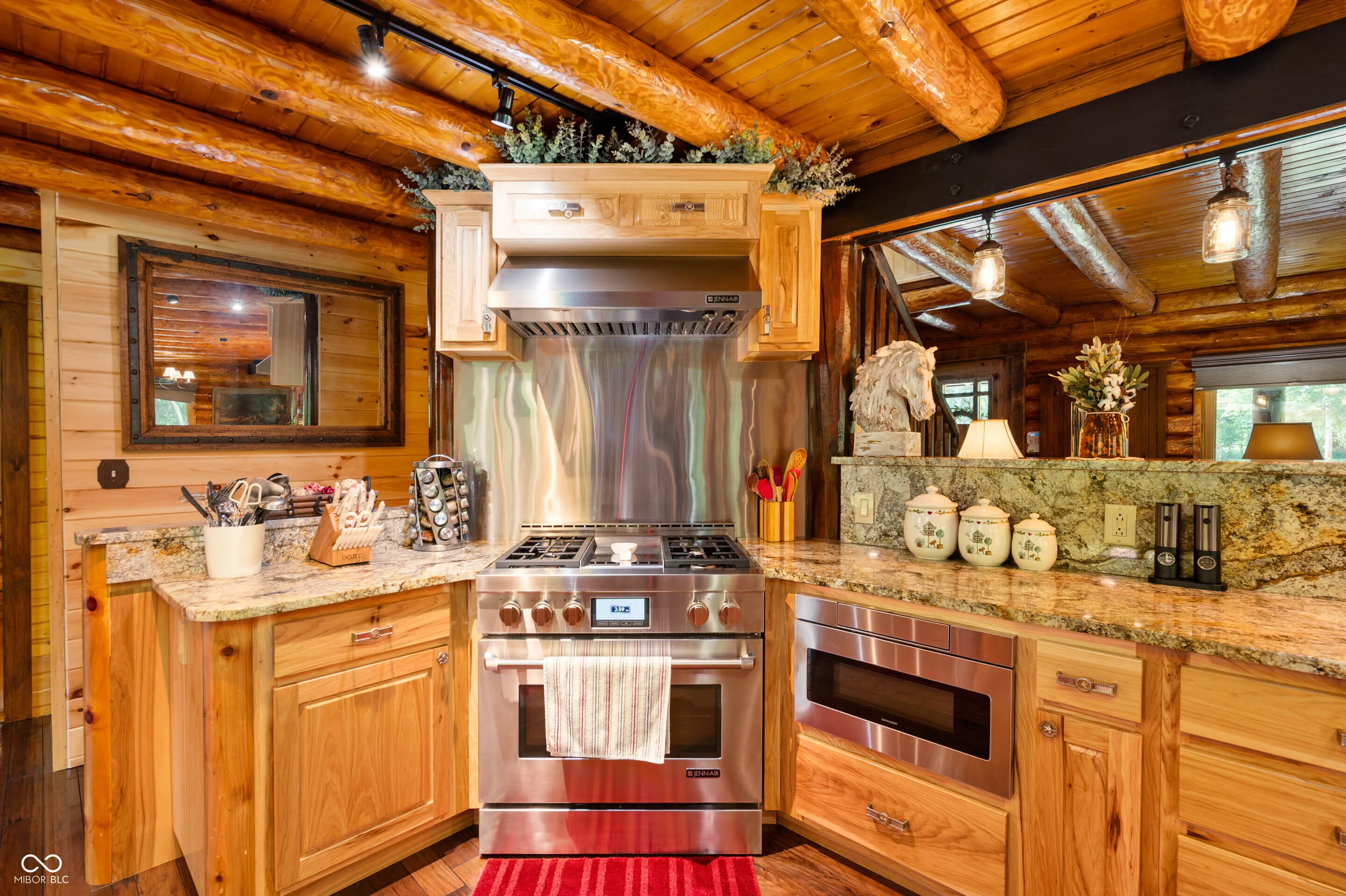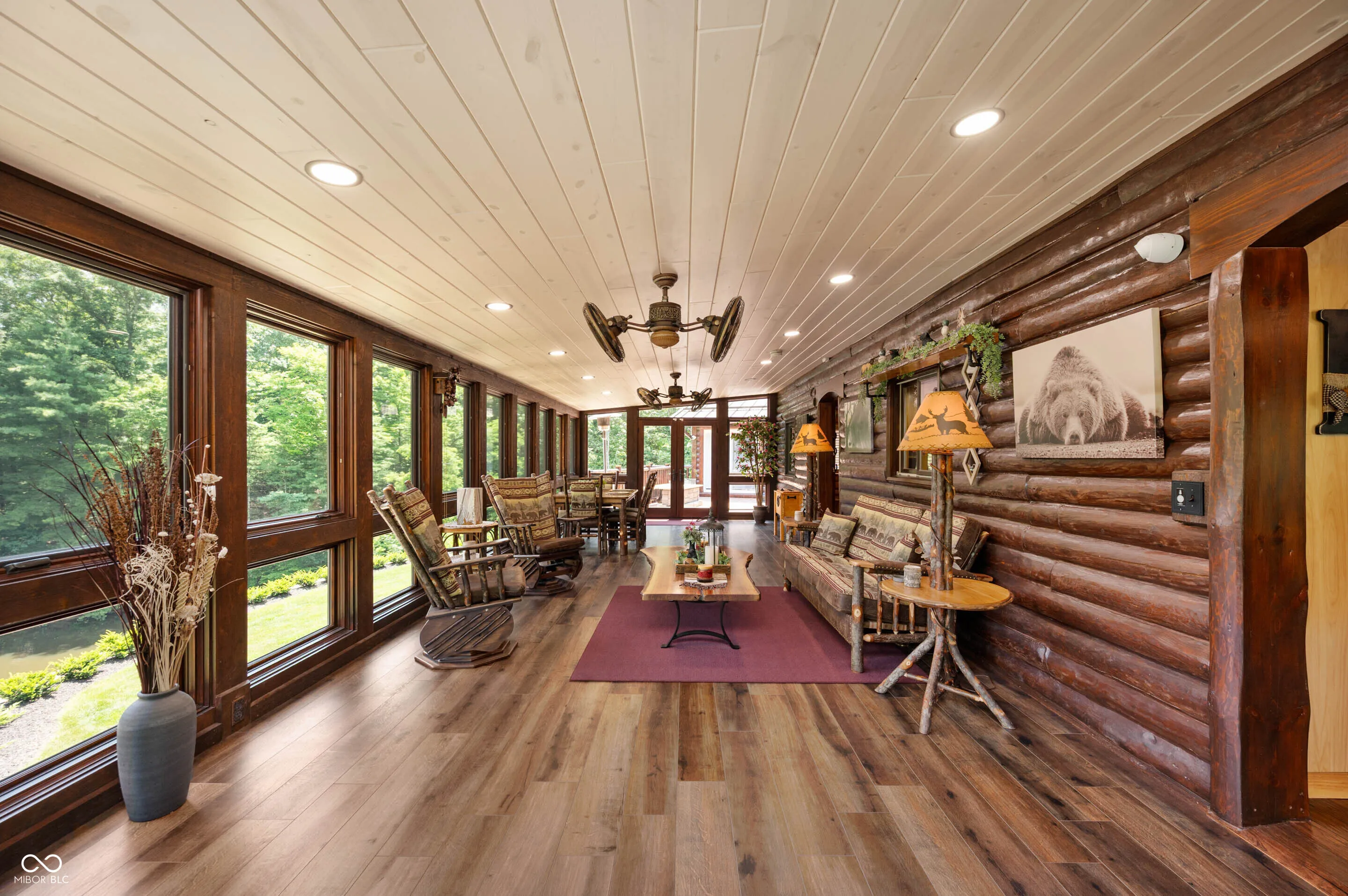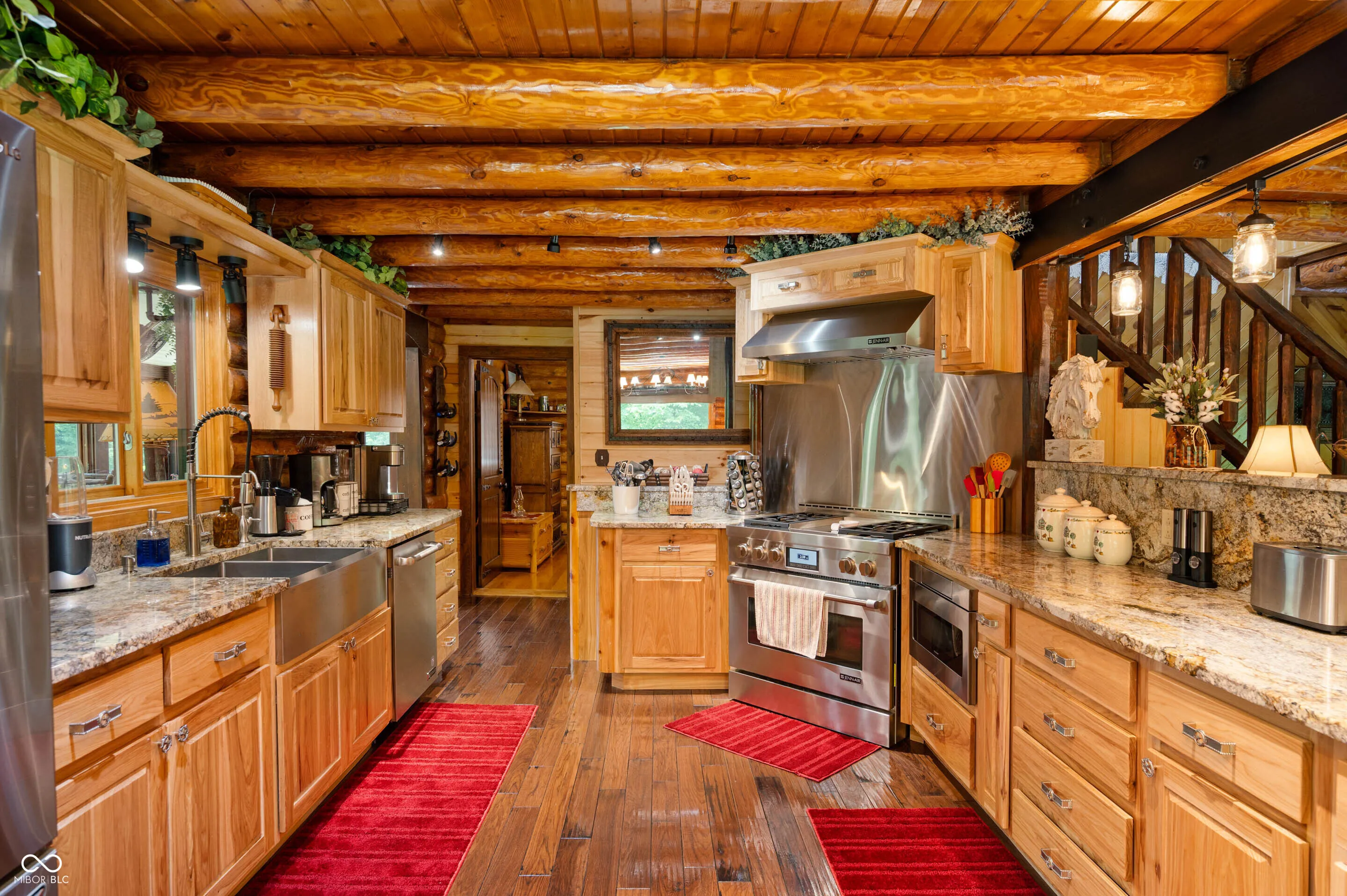 Experience the perfect blend of luxury, natural beauty, and equestrian living with this extraordinary 30+ acre estate. Tucked away in a serene setting, this one-of-a-kind property features a beautifully updated log cabin home, two stocked ponds, mature woods with winding trails, gently rolling hills, lush pastures, and a tranquil creek. With over $1.4 million in updates over the last eight years, every inch of this four-bedroom, three-bath home has been meticulously crafted for comfort and style. A private 700+ foot asphalt driveway leads you past the impressive 65×37 horse barn, complete with four stalls, a tack room, storage, office, hay loft with drop-down feeding system, and a horse watering system. A separate 53×14 storage area offers ideal space for boats, RVs, or additional equipment. As you approach the log home, you’re welcomed by a peaceful covered porch and the soothing sound of a custom waterfall. Inside, soaring wood-beamed ceilings, rich hardwood floors, and warm wood finishes create a rustic yet elegant ambiance. The chef’s kitchen features high-end granite countertops, a vented gas range, stainless steel appliances, and custom cabinetry. The expansive 39×14 four-season room offers breathtaking views of the ponds and forest beyond, perfect for year-round enjoyment. The main-level primary suite includes a luxurious spa-style bathroom, while three additional bedrooms and a loft upstairs provide ample space. The walk-out basement is ideal for entertaining, featuring a spacious 31×24 family room with fireplace and another 39×14 four-season room. A 20×12 bonus room off the garage is perfect for a mancave, home gym, or playroom. Professionally landscaped with exquisite stonework and retaining walls, the entire property is a retreat unlike any other. Properties of this caliber are rarely available-don’t miss your chance to own this private paradise.