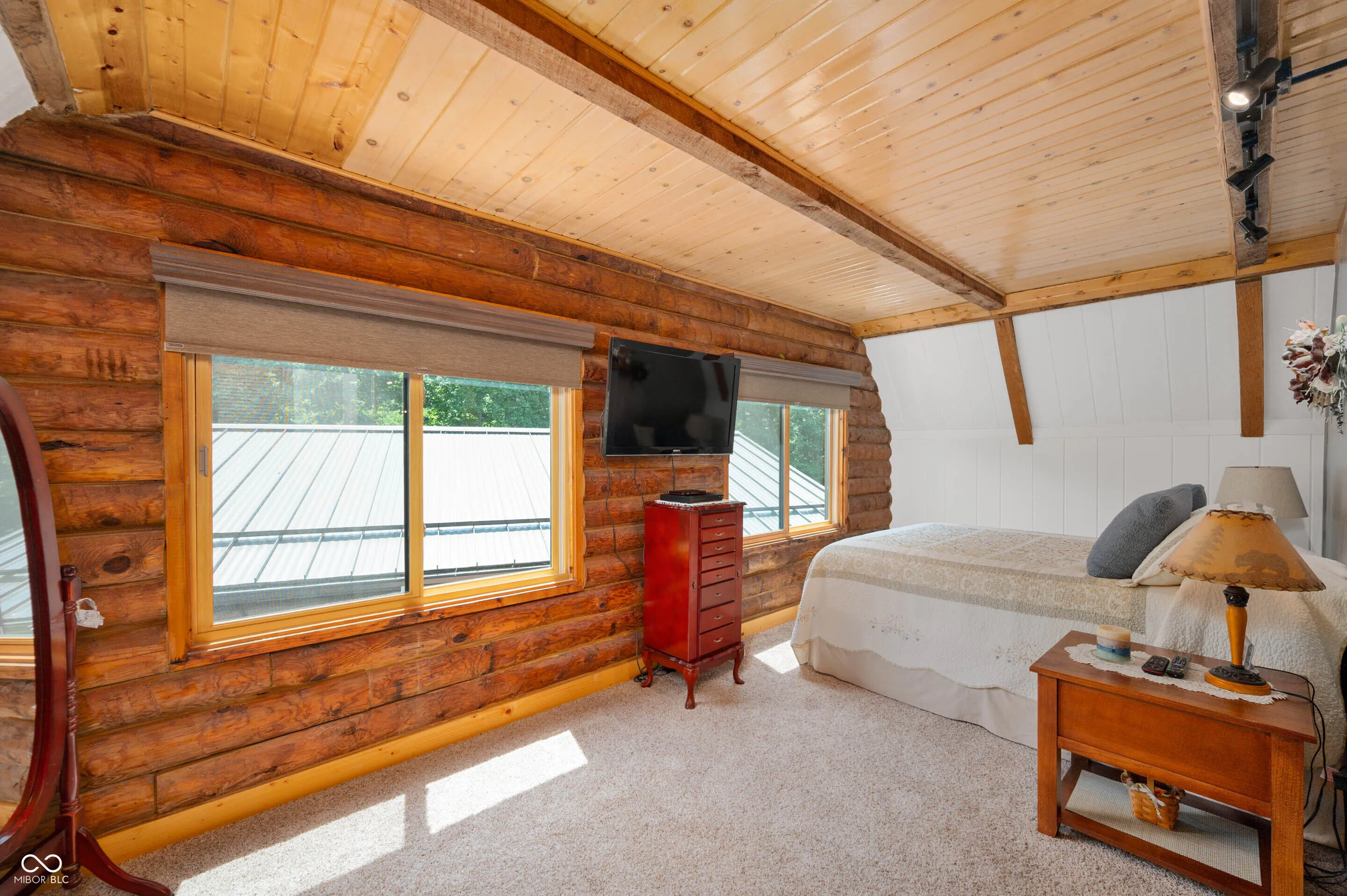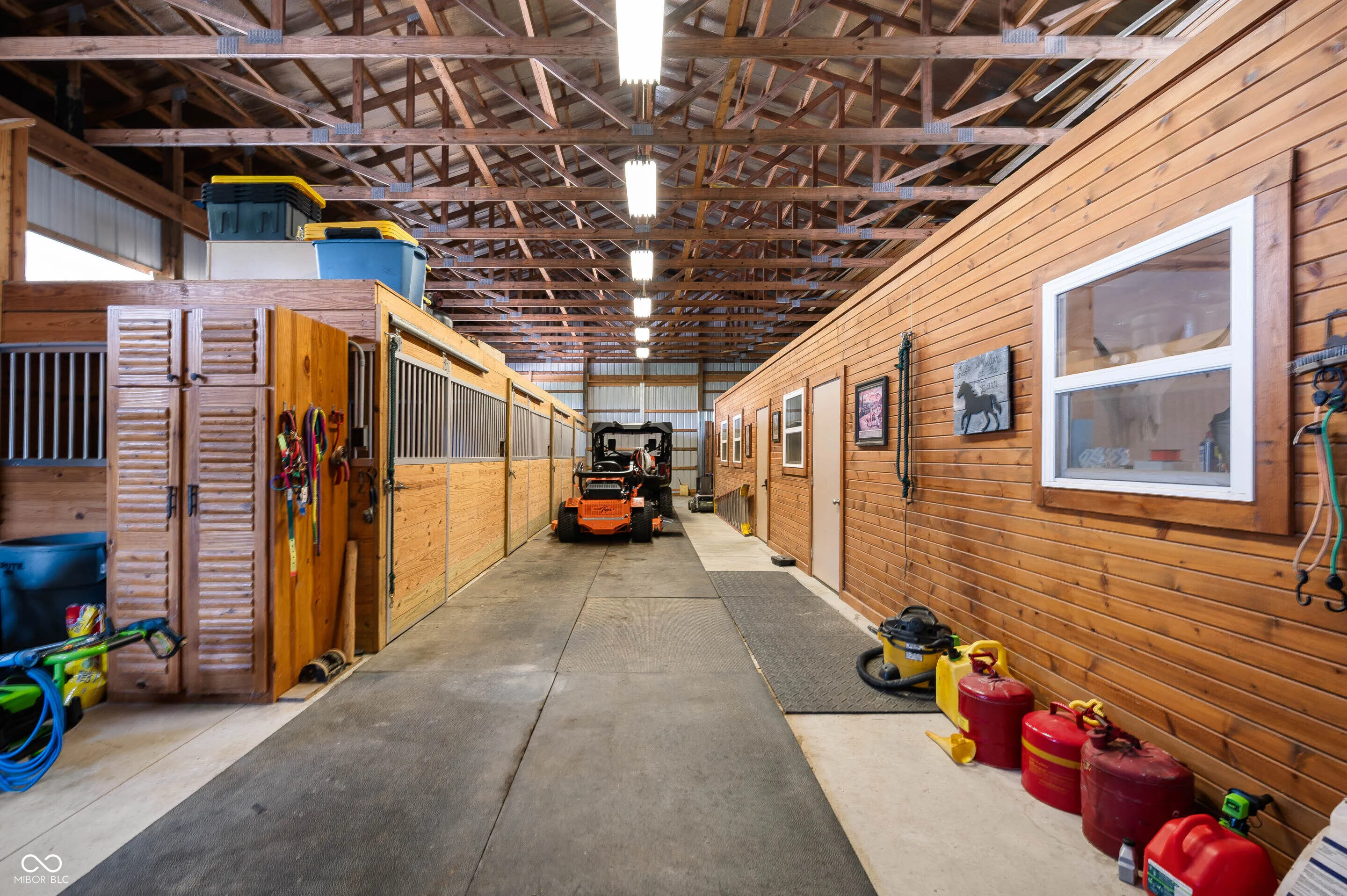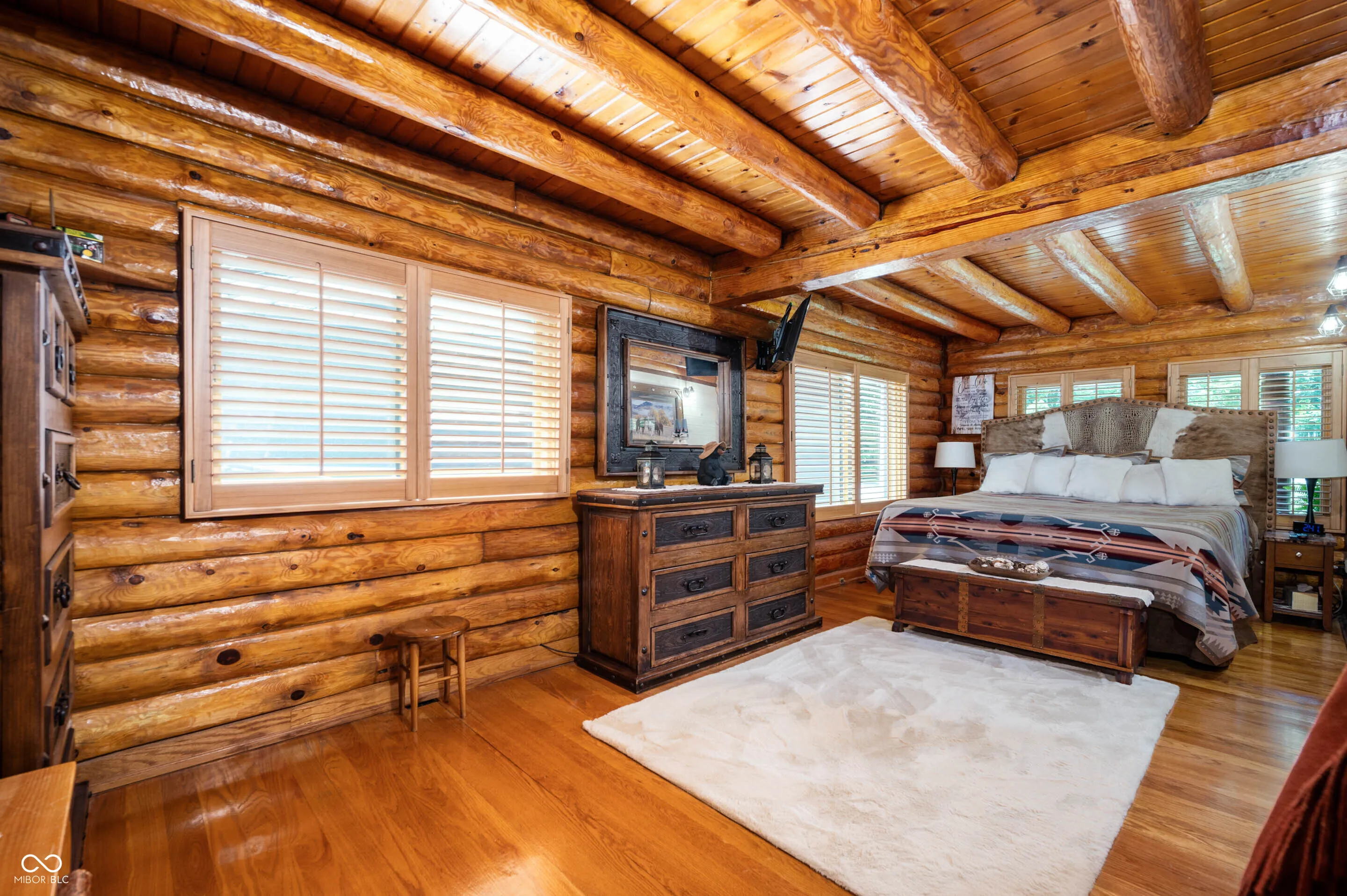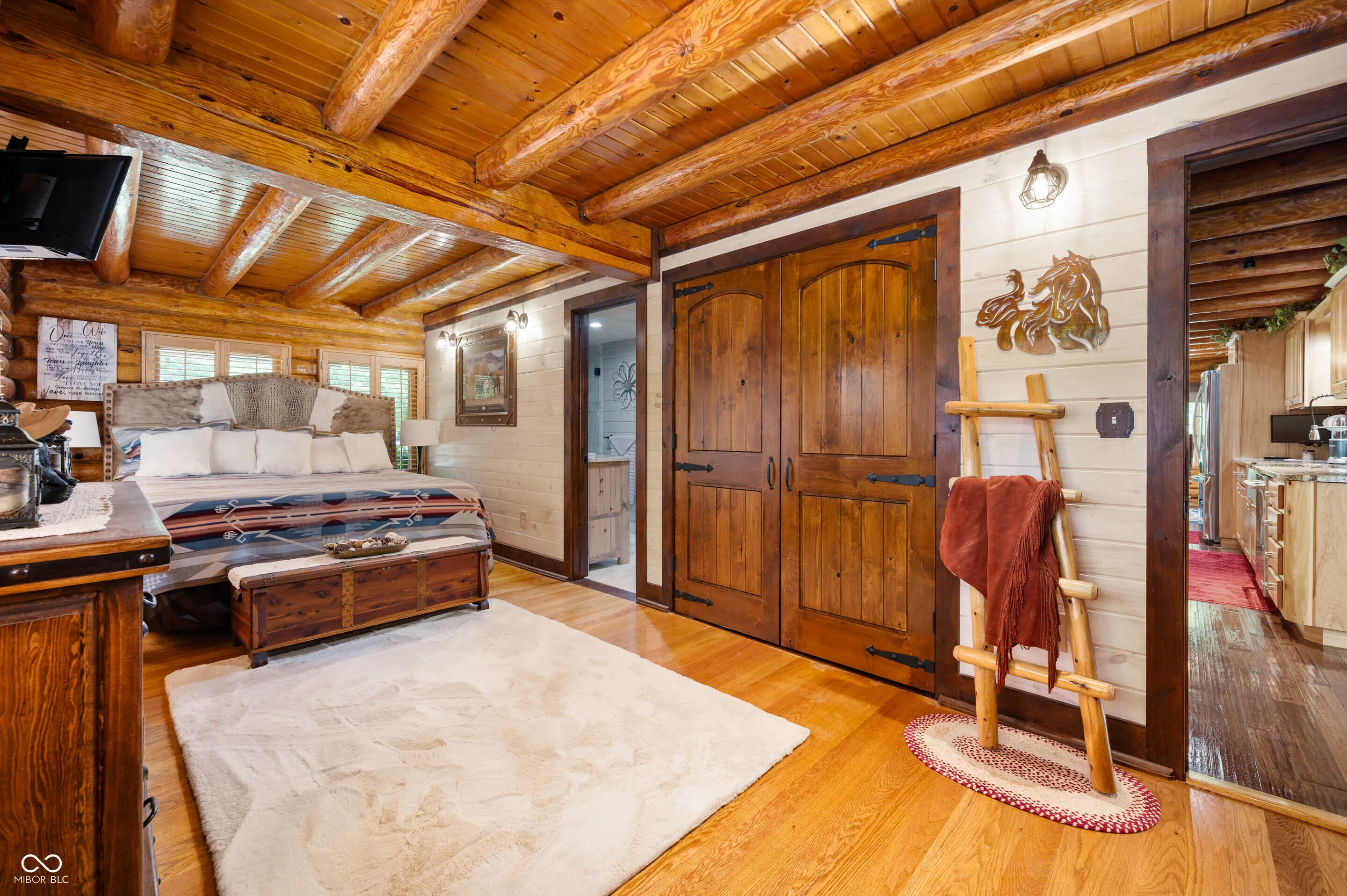 Experience the perfect blend of luxury, natural beauty, and equestrian living with this extraordinary 30+ acre estate. Tucked away in a serene setting, this one-of-a-kind property features a beautifully updated log cabin home, two stocked ponds, mature woods with winding trails, gently rolling hills, lush pastures, and a tranquil creek. With over $1.4 million in updates over the last eight years, every inch of this four-bedroom, three-bath home has been meticulously crafted for comfort and style. A private 700+ foot asphalt driveway leads you past the impressive 65×37 horse barn, complete with four stalls, a tack room, storage, office, hay loft with drop-down feeding system, and a horse watering system. A separate 53×14 storage area offers ideal space for boats, RVs, or additional equipment. As you approach the log home, you’re welcomed by a peaceful covered porch and the soothing sound of a custom waterfall. Inside, soaring wood-beamed ceilings, rich hardwood floors, and warm wood finishes create a rustic yet elegant ambiance. The chef’s kitchen features high-end granite countertops, a vented gas range, stainless steel appliances, and custom cabinetry. The expansive 39×14 four-season room offers breathtaking views of the ponds and forest beyond, perfect for year-round enjoyment. The main-level primary suite includes a luxurious spa-style bathroom, while three additional bedrooms and a loft upstairs provide ample space. The walk-out basement is ideal for entertaining, featuring a spacious 31×24 family room with fireplace and another 39×14 four-season room. A 20×12 bonus room off the garage is perfect for a mancave, home gym, or playroom. Professionally landscaped with exquisite stonework and retaining walls, the entire property is a retreat unlike any other. Properties of this caliber are rarely available-don’t miss your chance to own this private paradise.