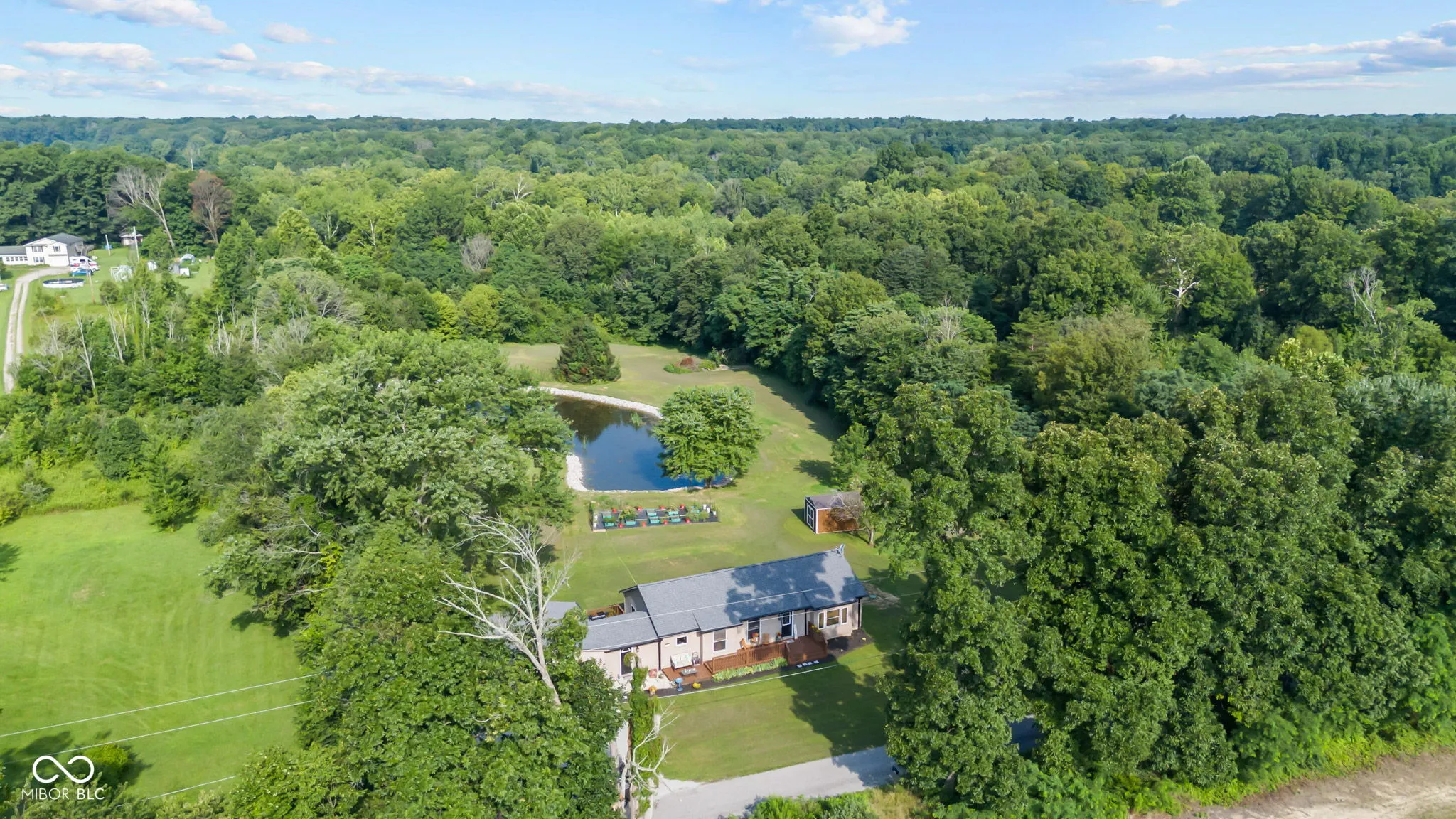 Here is your opportunity to own a private retreat centered around a stunning one-acre fully stocked pond, enhanced with new rip-rap (rock) and surrounded by nearly 7 acres of natural landscape. This peaceful water feature sets the tone for the entire property-ideal for fishing, relaxing, or simply enjoying the tranquil views. The 3-bedroom, 2-bath ranch offers approximately 1,400 square feet of main-level living space with an updated layout, large windows, and tasteful modern features throughout. The updated kitchen includes stainless steel appliances, maple cabinets, and stylish finishes, making it both functional and inviting. A full 1,322-square-foot basement offers valuable additional space-perfect for storage or wine cellar. Full-scale waterproofing and structural work has already been completed, providing you a solid foundation with confidence and transferable warranty. With a new roof, gutters, vinyl siding, electrical, septic, well, pressure tank, water heater and a recent septic pumping. This home is ready for your personal touches-worry free with all the big updates are already taken care of. Outside, enjoy privacy with wide open landscape, water views, mature trees, an outdoor patio, partially fenced yard, and established gardens. More amenities include a detached outbuilding with power, insulation, heating and cooling. Offering flexible space for a workshop, hobby studio, she shed or more storage. This is more than just a home-it’s a lifestyle, and a rare opportunity to enjoy privacy, space, nature in one unique package. All the key maintenance items are done. This home is Move in ready. Call your favorite realtor and schedule your showings today.