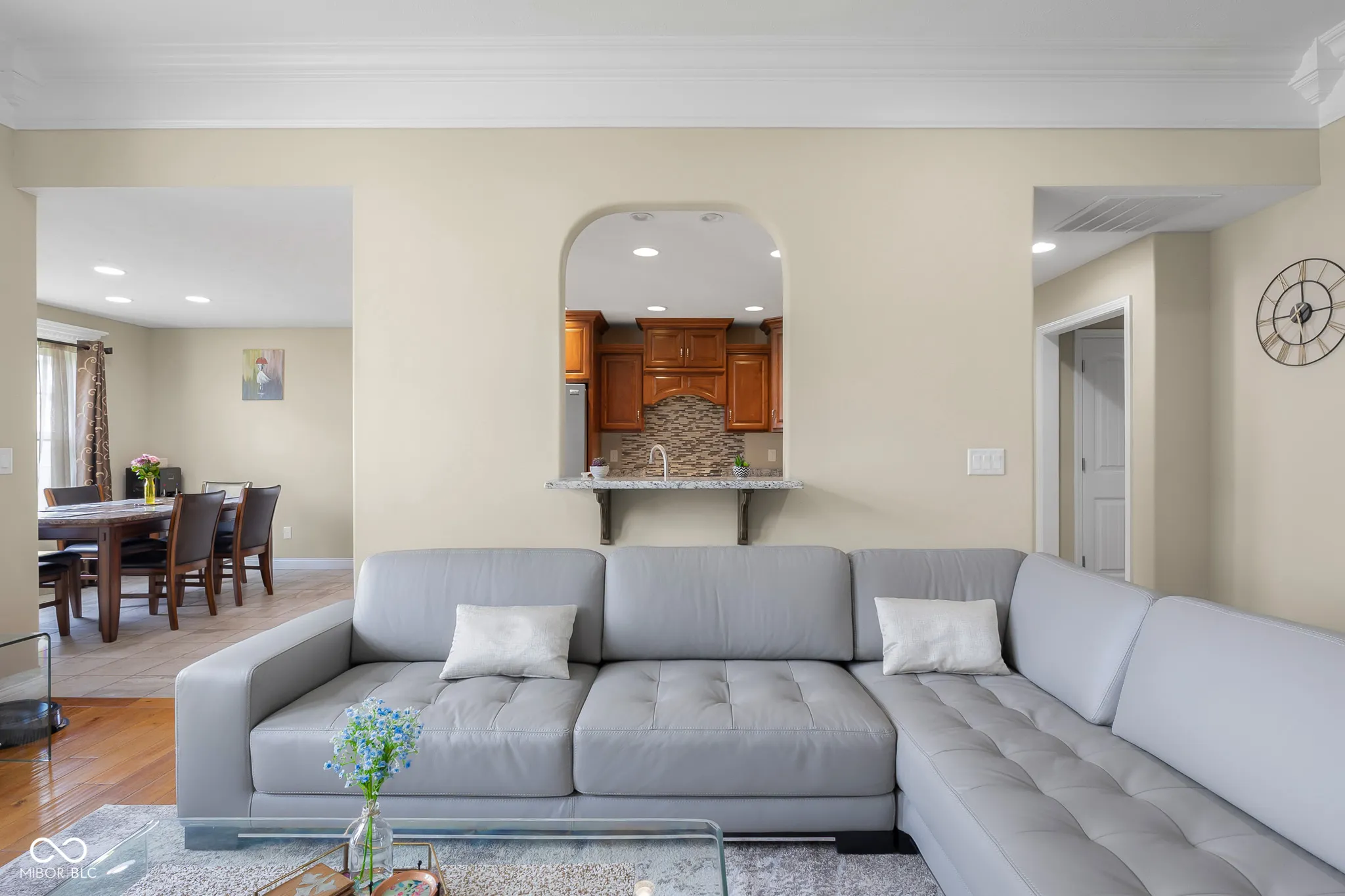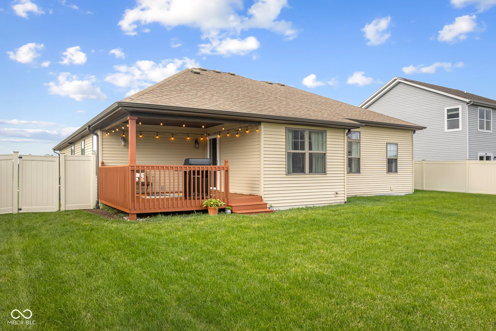 Quality constructed 4 Bed, 3 Bath Ranch in Wildflower. Custom finishings and upgrades thru-out. Home faces north and treats you to serene water views from the covered front porch. Step inside and instantly feel at home in this ranch-style gem, built by Phillips Development. Bathed in natural light, the interior features a spacious living room ideal for relaxation and entertaining. Gourmet kitchen with granite counters, pantry and stainless steel appliances including a new gas range. Breakfast room nestled off the kitchen is perfect for casual meals. The primary suite shines with a trey ceiling, custom molding, walk-in closet, and full bath with dual sinks, whirlpool tub, and a roomy walk-in tiled shower. Two additional bedrooms, a full bath, and the conveniently located laundry room complete the main level. Take the tour downstairs and discover a fully finished basement with family room and wet bar, ideal for additional entertainment space. Basement also includes a fourth bedroom, full bathroom, bonus/flex room and ample storage space. Step outside onto the freshly painted covered back deck overlooking the fenced backyard and professionally landscaped grounds. 3 car attached finished garage. This meticulously maintained, move in ready home, offers turnkey living.