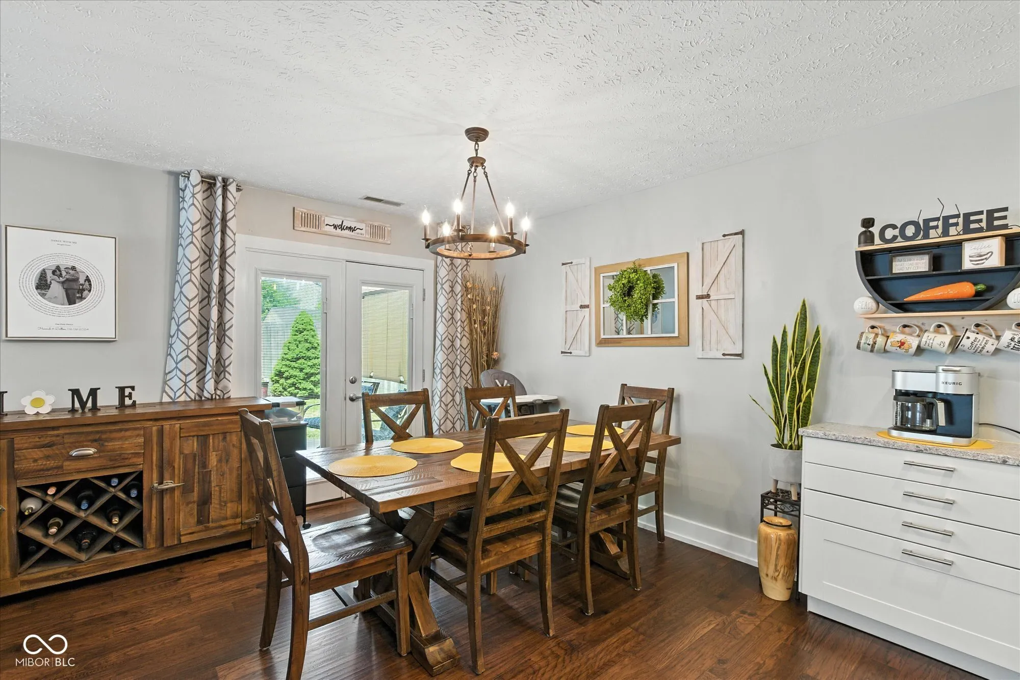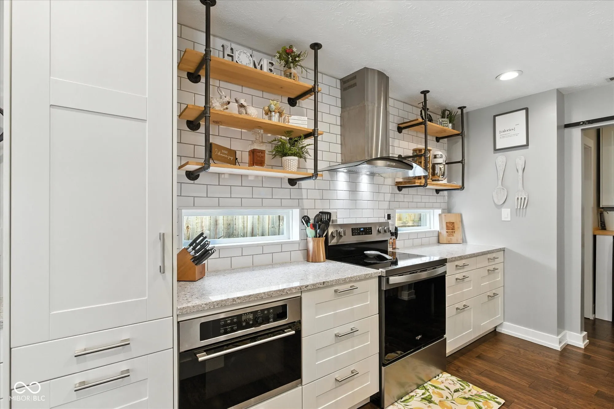 Step into style and comfort in this beautifully updated home featuring a spacious open-concept layout with soaring ceilings, designer finishes, and exceptional attention to detail. The bright and airy living room is highlighted by large windows with custom louvered shutters, rich engineered hardwood flooring throughout both levels, and a lofted overlook that enhances the architectural appeal. The adjacent dining area offers a warm and inviting space with updated lighting and integral blind doors that lead directly to the backyard patio and pergola-perfect for indoor-outdoor entertaining. Flowing seamlessly into the kitchen, you’ll find a thoughtfully designed renovation complete with quartz countertops, subway tile backsplash, stainless steel appliances, apron-front farmhouse sink, accent windows, and all-new cabinetry with smart storage solutions and custom open shelving. Retreat to the luxurious primary suite featuring a vaulted shiplap ceiling with a wood accent beam, a stone-veneer fireplace with mantle, rustic accent wall, and sliding barn doors leading to a beautifully updated ensuite bath. Throughout the home, every detail has been elevated-new craftsman-style interior doors, updated light fixtures, coordinated door hardware, and stylish trim work contribute to the cohesive modern aesthetic. Additional highlights include a dedicated laundry room with built-in cabinetry and a wood folding surface, adding convenience to everyday living. This move-in ready home blends modern charm with timeless features and must be seen in person to truly appreciate the scope of its high-quality updates.