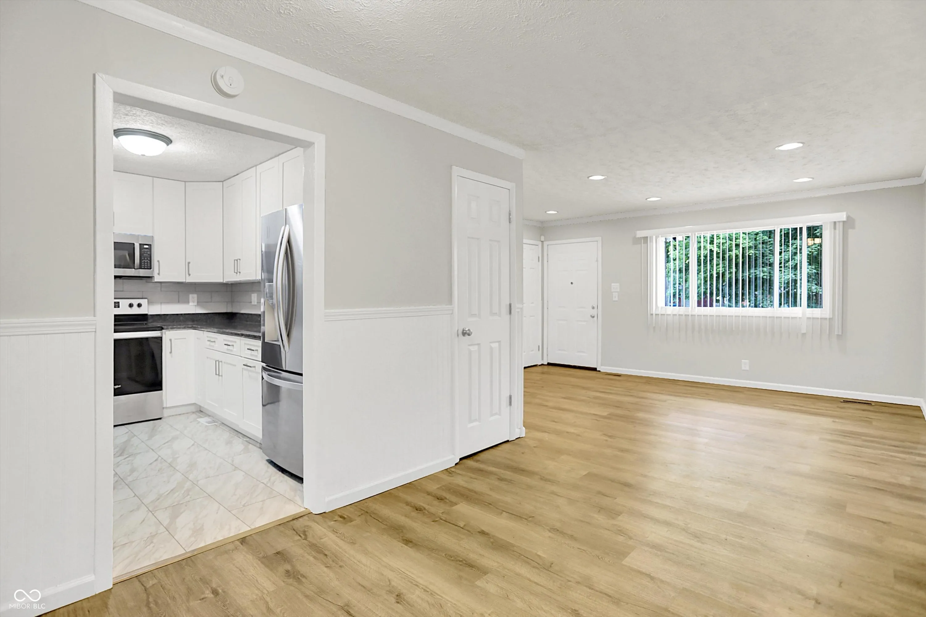 Nestled in desirable Carmel with its award-winning schools, this updated 4 bedroom, 2 1/2 bathroom ranch home with 2-car garage is spacious and inviting! You’re welcomed into the light and bright living room which flows into the dining area with beautiful wood-look luxury vinyl plank flooring. The kitchen has been completely remodeled with white shaker cabinets, stylish glazed tile backsplash, granite countertops, stainless steel appliances and LVP tile flooring. French door style refrigerator and all appliances, including washer and dryer, convey with property. Primary bedroom provides a private retreat separated from 3 additional bedrooms, complete with adjacent family room featuring a fireplace, complemented by built-in shelves, and bathroom. Nearby reading nook or small office space could also be mudroom or drop zone for a family. Thoughtfully designed Jack and Jill bathroom connects to main hallway and one of 3 additional bedrooms. Beyond the interiors, a fenced backyard and patio provide opportunities for relaxation and recreation, while a shed offers additional storage space. Peaceful and quiet neighborhood with mature trees. No HOA. Nearby amenities include Monon Center and Waterpark, Carmel Arts and Design District with Saturday Farmers Market and Midtown Plaza. Great rental potential too!