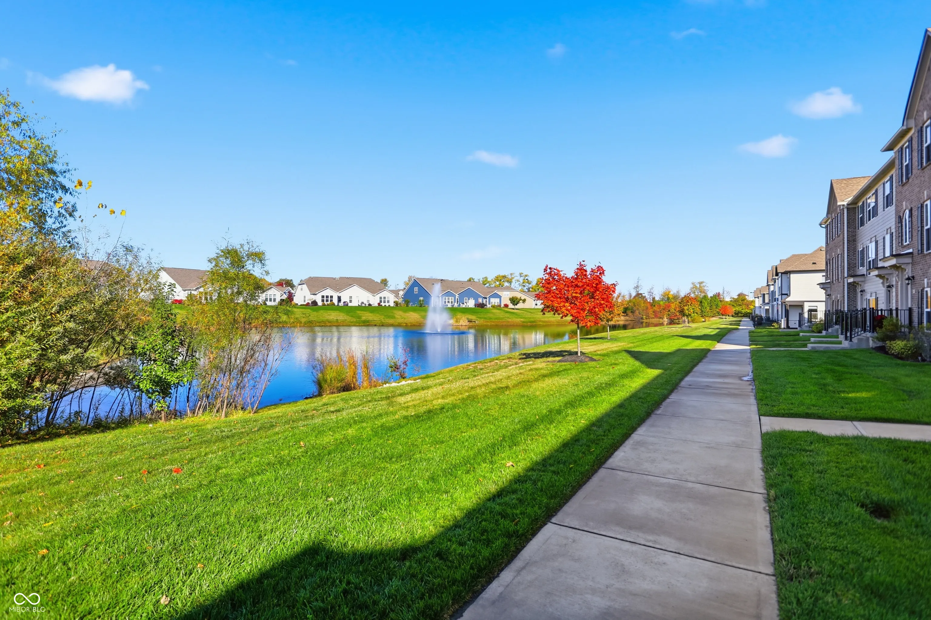 Experience low-maintenance living in this end-unit townhome overlooking a peaceful pond in the Suffolks at Oak Manor. With all-new paint and carpet, the home feels fresh, bright, and move-in ready from the moment you step inside. The entry level is designed for everyday enjoyment, featuring a built-in wet bar and TV mount-an ideal setting for a game-day retreat or a quiet morning coffee spot before heading out the door. Upstairs, the main level unfolds into an airy, open-concept living space. The kitchen takes center stage with a large island, sleek countertops, and generous cabinetry, seamlessly connecting to the dining area and expansive great room. Sunlight filters in through multiple windows, and sliding doors lead to your own deck. On the upper level, the primary suite features tray ceilings, a spa-inspired bath, and a walk-in closet. Two additional bedrooms and a conveniently located laundry room complete this thoughtful layout. Ideally situated just minutes from Downtown Westfield, the Midland Trace Trail, award-winning schools, dining, shopping, and US-31, this home offers the perfect blend of tranquility and accessibility. End-unit living, pond-side views, and a fresh interior-this one has it all.