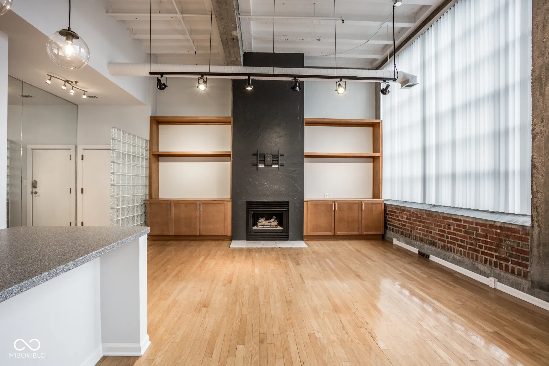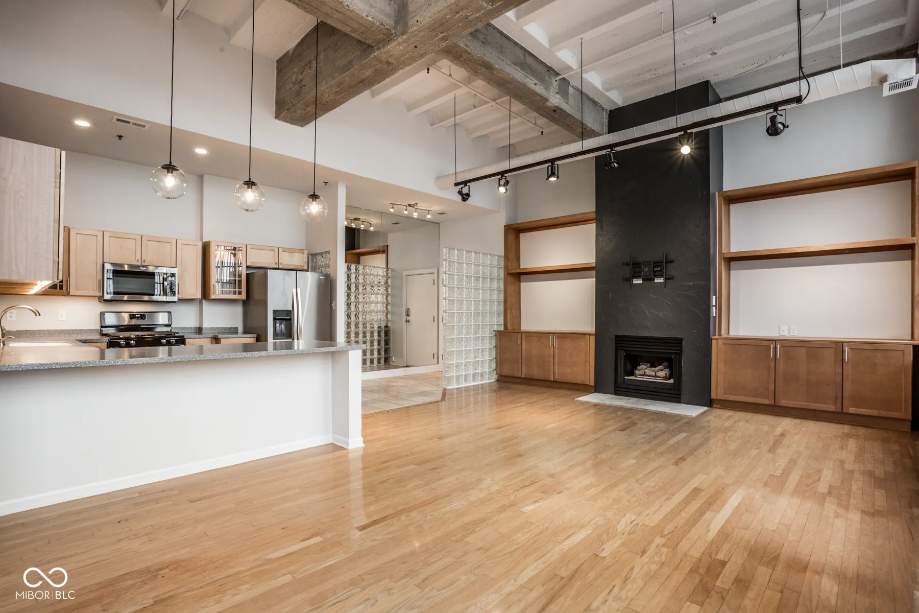 Urban loft living at one of the best historic buildings downtown! Enjoy the soaring 14 ft ceilings, massive windows with both south & east exposures and exposed brick walls and concrete structure. The combined living room, dining room, and kitchen are perfect for entertaining while enjoying a warm fire in the gas fireplace this winter. Step out of your door and take the elevator directly down to your indoor garage parking space. Take advantage of the onsite gym, sauna, hot tub, and lap pool as well as the community room available on the first floor. All just steps away from downtown Indy’s premier Mass Ave dining, nightlife & entertainment district, the Cultural Trail & Bottleworks District. Welcome home to Real Silk – Unit 401!