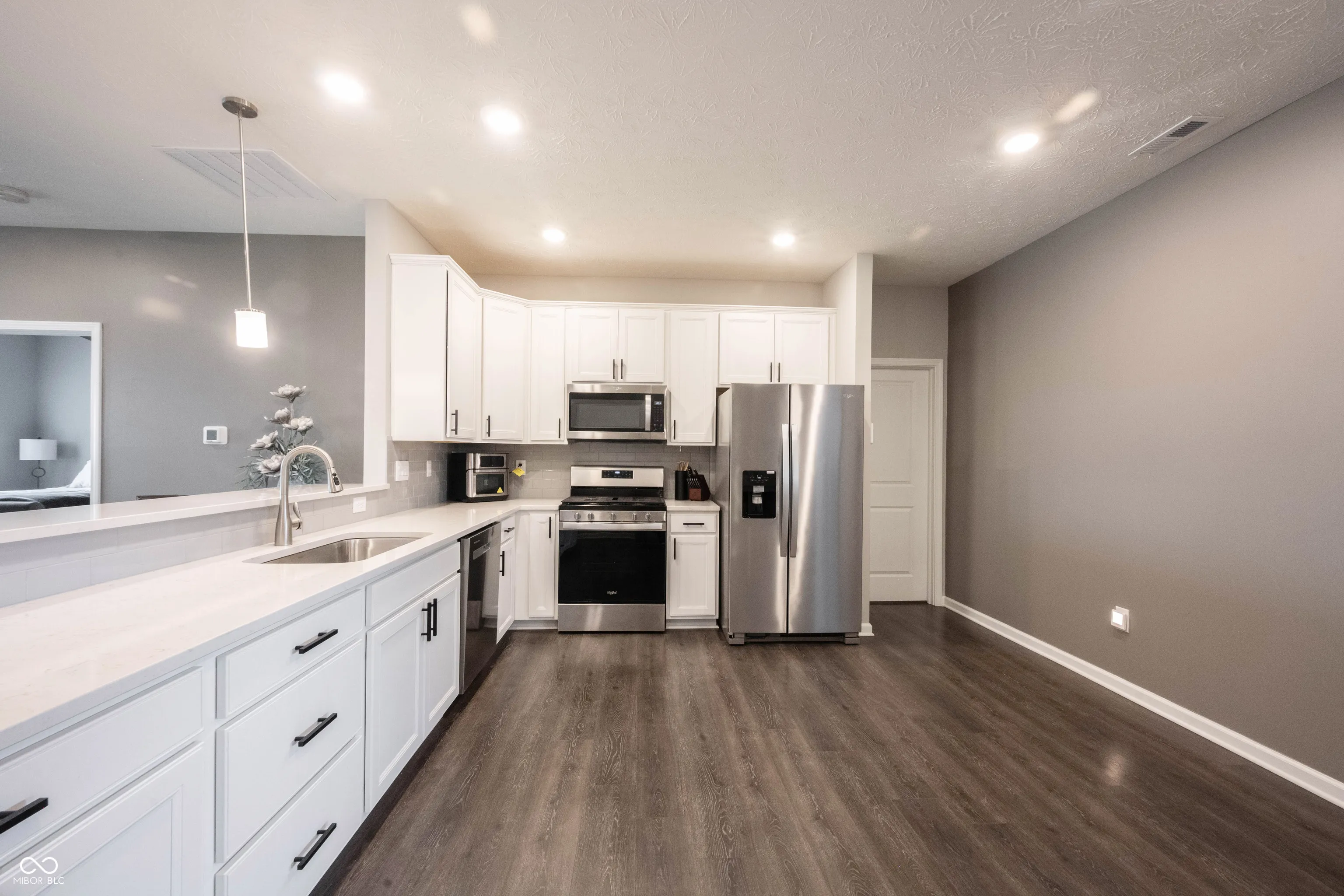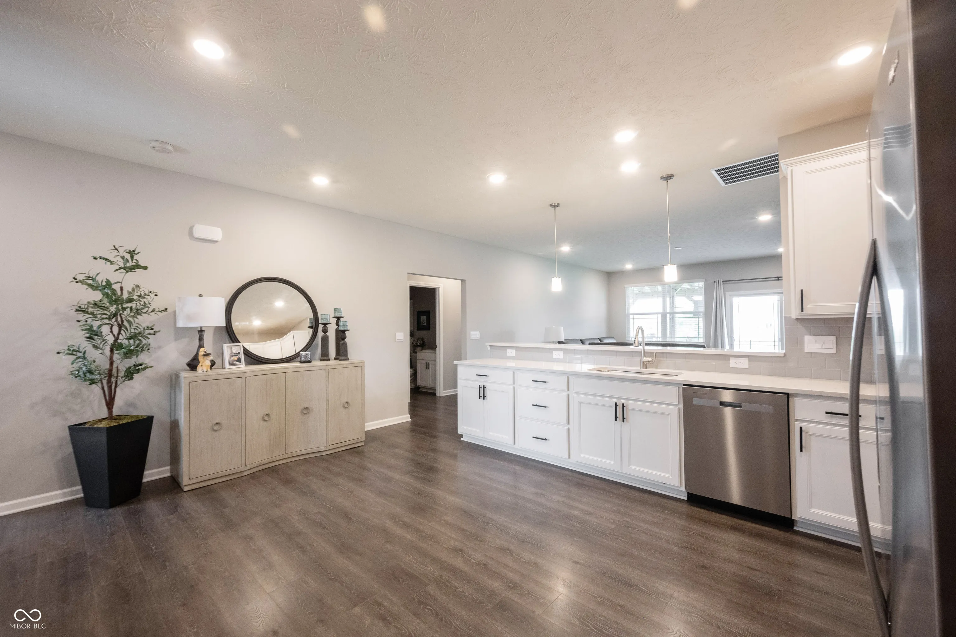Welcome home to Carrick Glen! This better than new, 2 year old home has ALL the afterthoughts that come after building! This includes the most spectacular outdoor living; A covered lanai ready for you to entertain in your fully fenced backyard with the backdrop of the serene pond! Fantastic location in the neighborhood across from the neighborhood park and playground! This newly built ranch features all the options the builder offered! Open the door to a functional open floorplan. Just off the foyer is a home office or flex-room, giving you another living space. Kitchen features crisp white 42″cabinets, SS appliances/Gas Range, all included! Stunning Quartz counters, including a breakfast bar with room for 5 barstools! Trending LVP flooring spanning through the main living areas. Kitchen opens to greatroom that features great natural light and views of your premium homesite on the pond and outdoor living space that’s a true expansion of your home. A split floorplan ranch, featuring the Owner’s suite on one side of the home, with ensuite bath, dual sink vanity/quartz counters, floor-to-ceiling tile shower! Expansive WIC. Upgraded lighting with LED lighting in addition to fan/light. Two additional bedrooms on the other side of the home, with a spacious second bath. Utility room and Laundry room just off the garage, plenty of room for additional storage! Custom built-in boot bench just off the laundry room in the expansive insulated 3 car garage! This home is not lacking storage with Walk-In closets, room for storage in the garage or attic! Complete with window treatments, fully fenced maintenance free black aluminum fence, extended covered patio, additional landscaping, things you would need to add after building, but not with this MOVE-IN ready home! Walk to Falls Park across the road, or downtown Pendleton where you will find Catello’s Italian, The Stable, Shopping and more! Complete with a transferable builder warranty!