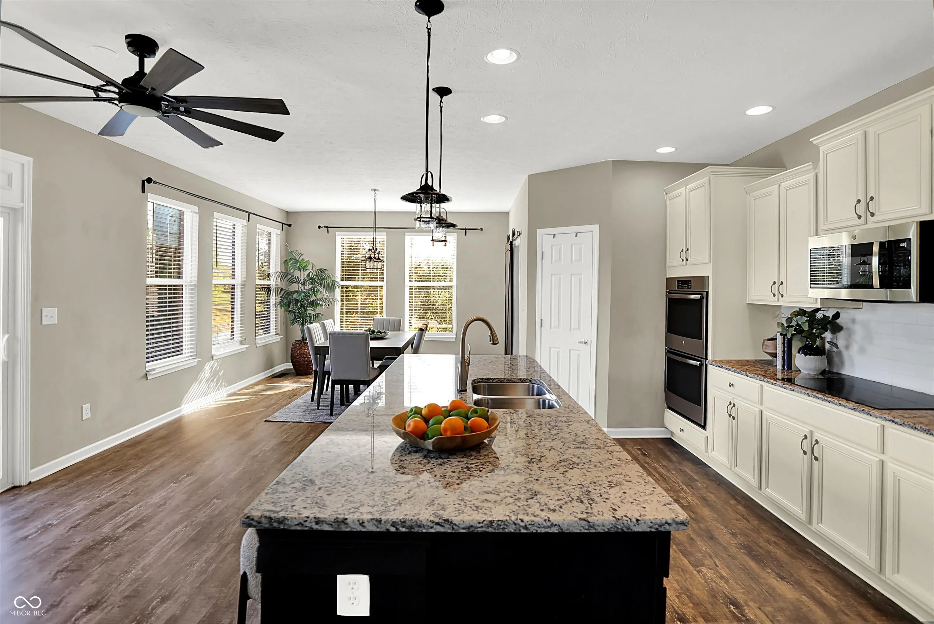 Nestled in Center Grove, this residence offers a blend of comfort and space with tranquil pool and pond views. The bright and light kitchen has a granite topped island with seating, wine fridge and walk in pantry. Great room and kitchen overlook the privately located pool with fountains. Additionally this home offers 5 bedrooms, a loft and designated office space. Basement was finished out in 2023 with full bath added 2025. It has egress windows including a bedroom and living/recreation space. Luxury vinyl plank flooring covers all living spaces adding functionality and easy care on all levels. Added value includes: new in 2024 Pool liner and cover. New in 2025 HVAC system. Newer kitchen appliances too! Possession at closing makes this a winner!