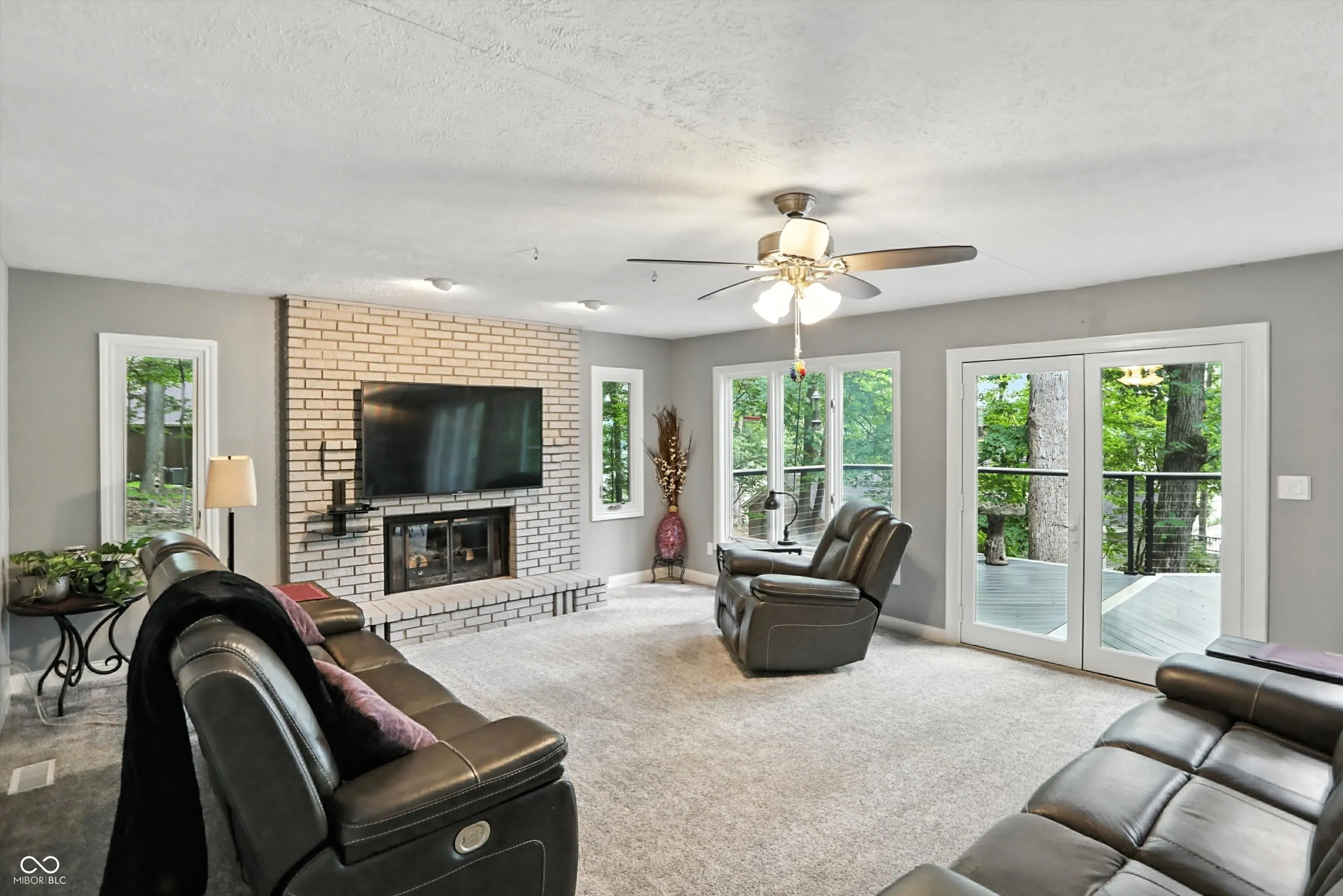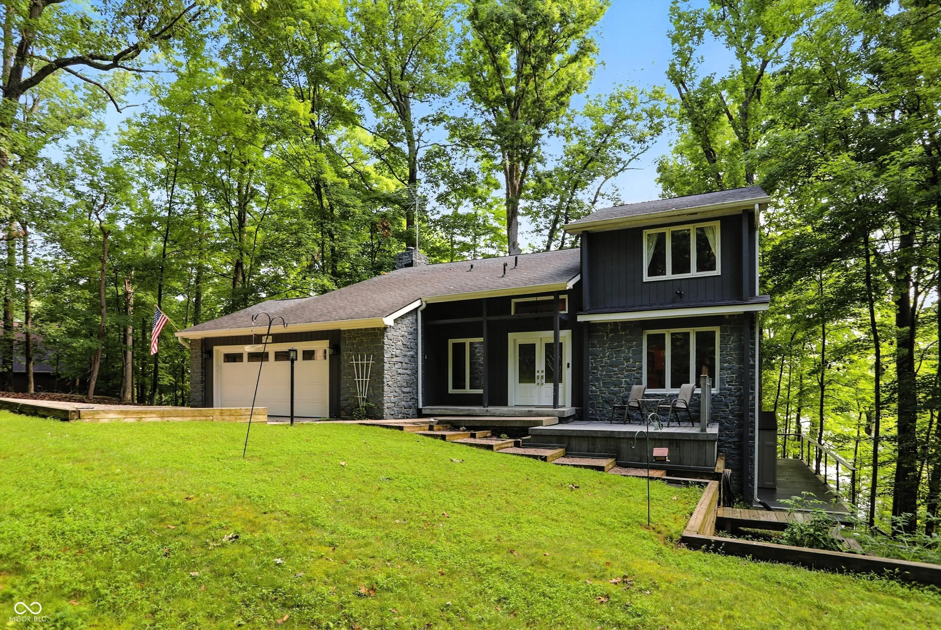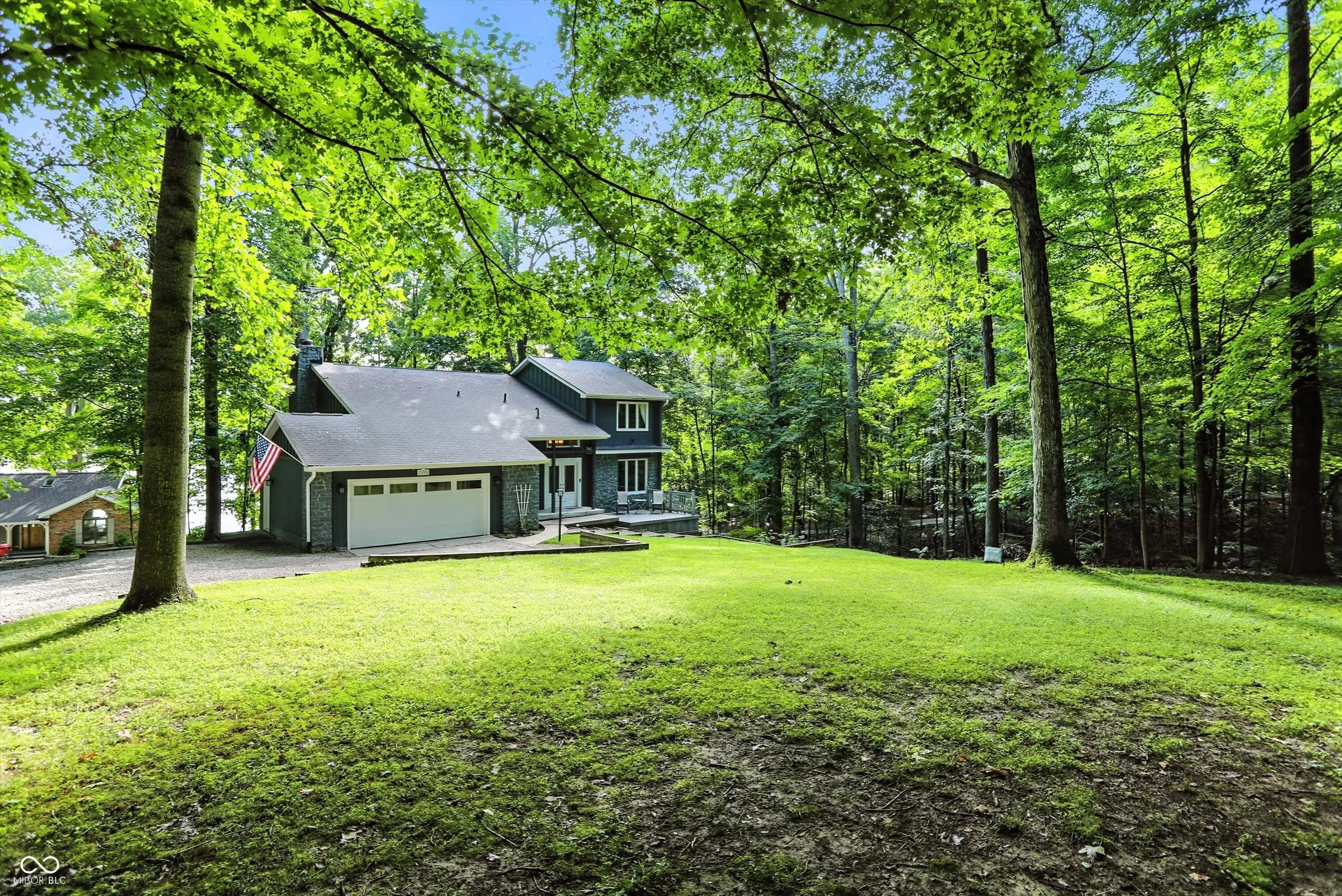 Beautiful view of Lamb Lake on 1.58 wooded acres. Nicely updated 2 story w/walk out basement. Primary suite w/huge walk-in closet and full bath and lakeview from bedroom window. Darling reading nook or playroom on upper level. Roomy kitchen w/loads of counters, cabinets, center island & breakfast room opening to upper deck with lakeview. Spacious great room w/cozy gas fireplace and doors opening to upper deck. Formal Dining, office & half bath also on main level. Low maintenance upper deck installed in 2021 is approx 1,550 sq ft of outdoor entertainment space! Lower walkout level has laundry room, workshop, full bath, and 29×24 flex space for rec room, family room or whatever your needs may be! Opens to lower deck on lakeside to access hot tub & firepit sitting area for even more outdoor enjoyment! Stairway leads to boat parking in back of quiet cove. Hop in your boat and head out to enjoy boating, fishing, skiing, tubing, private beach, & wildlife on the finest private lake Indiana has to offer! Be sure to read attached list of Special Features & Updates