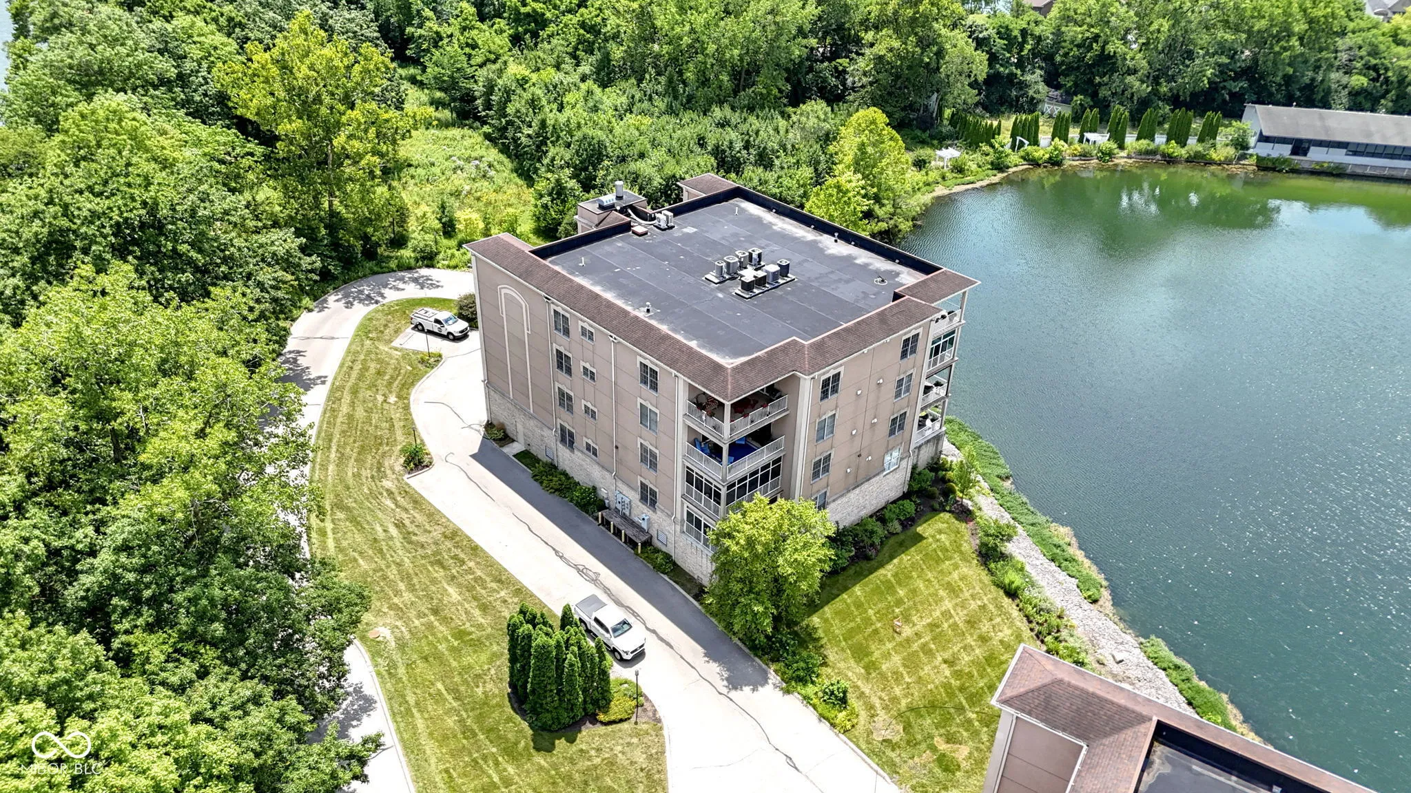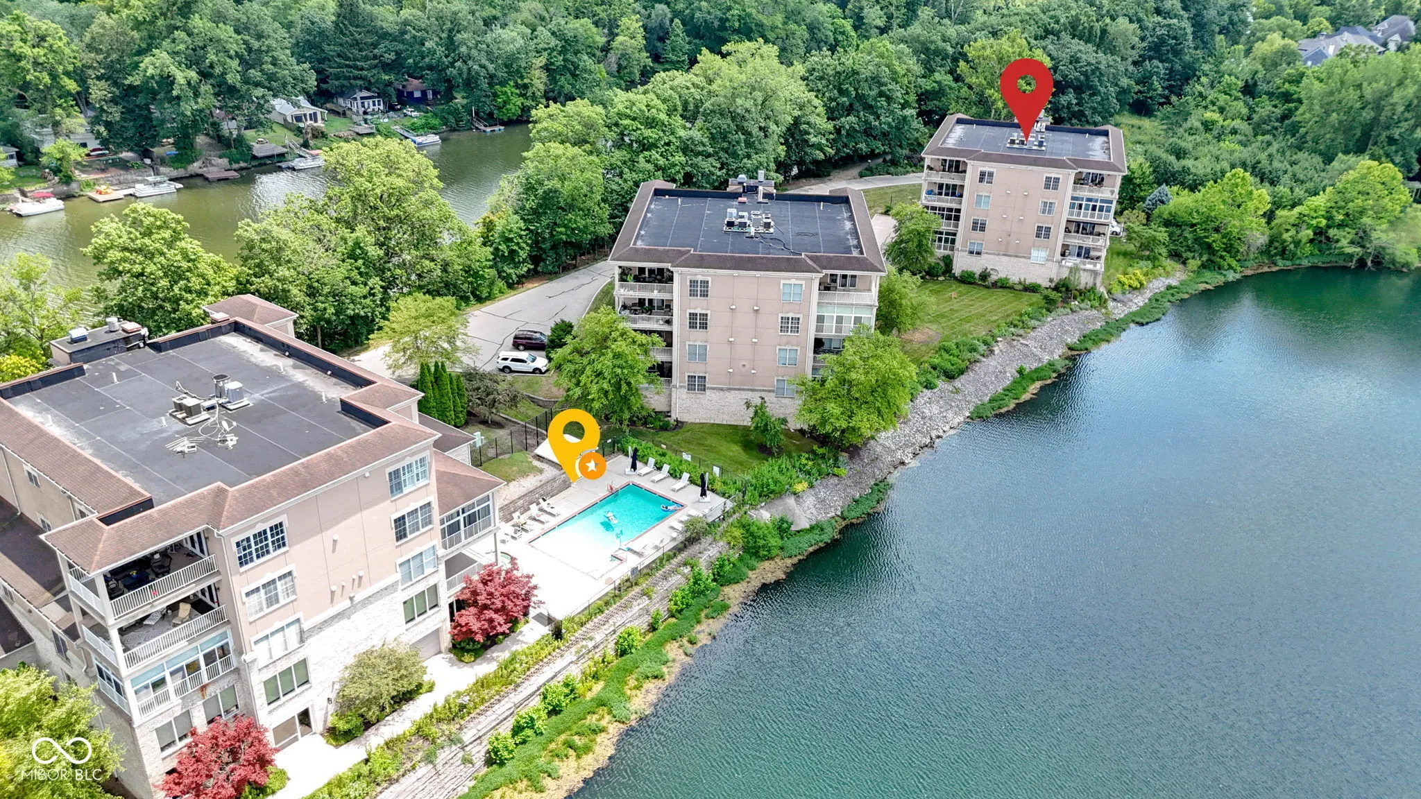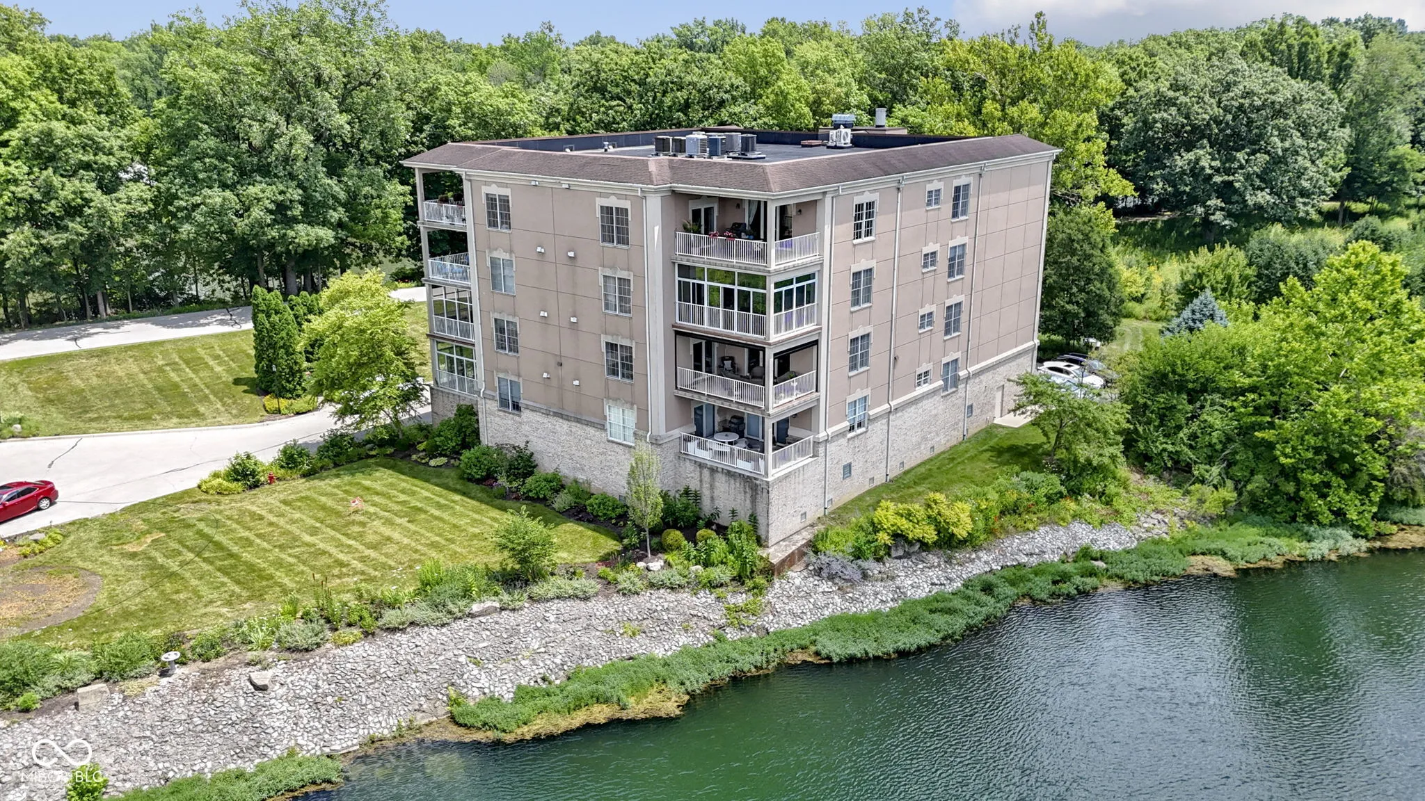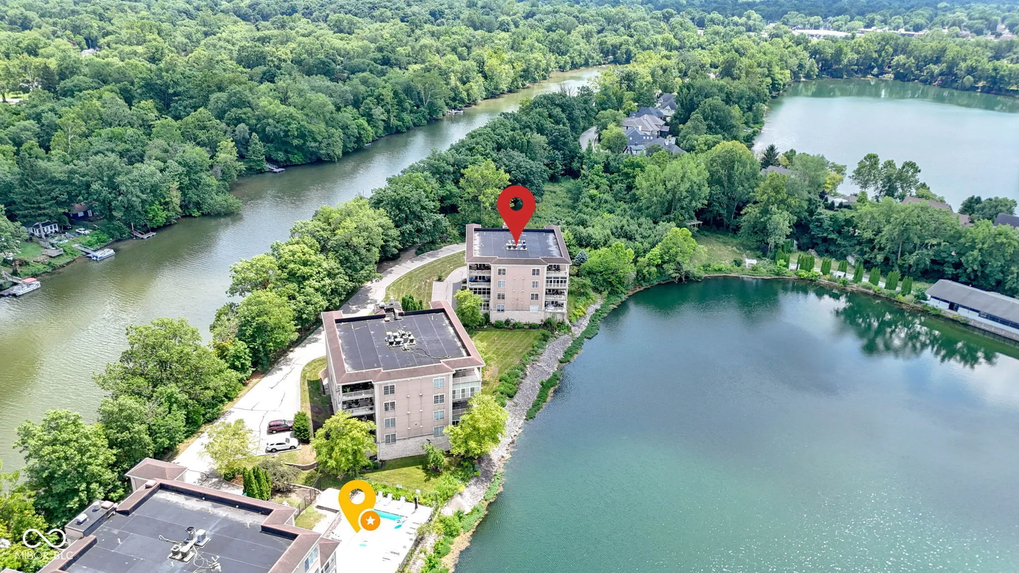Spacious 2700+ sq foot condo in sought after Spirit Lake! Fabulous views of the lake AND the river! Take the elevator up to your little piece of heaven! Open floor plan with large living area and sliding doors to relaxing screen porch! From the porch see the sun rise and set over the river and lake. See bald eagles soar, red foxes, fish jumping and herons! Gourmet kitchen white cabinets, center island with breakfast bar, ample counter space, tile backsplash, and recessed lighting! Separate dining area for entertaining! 20×18 master with step in shower, soaking tub, huge California closet and access to the screen porch! Guest suite and 3rd bedroom/office! Secured building, heated 2 car garage and extra storage closet! Amenities include pool, hot tub, club house, work out room and walking paths! Launch your canoe or kayak onto the tranquil White River! Looking for walkability? 1/2 mile walk to the shopping, dining and nightlife of Broad Ripple Village! Easy access to The Monon Trail! Mins to many grocery stores, library, parks and more! The residents here love it and units rarely come available! With the superior views, this is a must see!