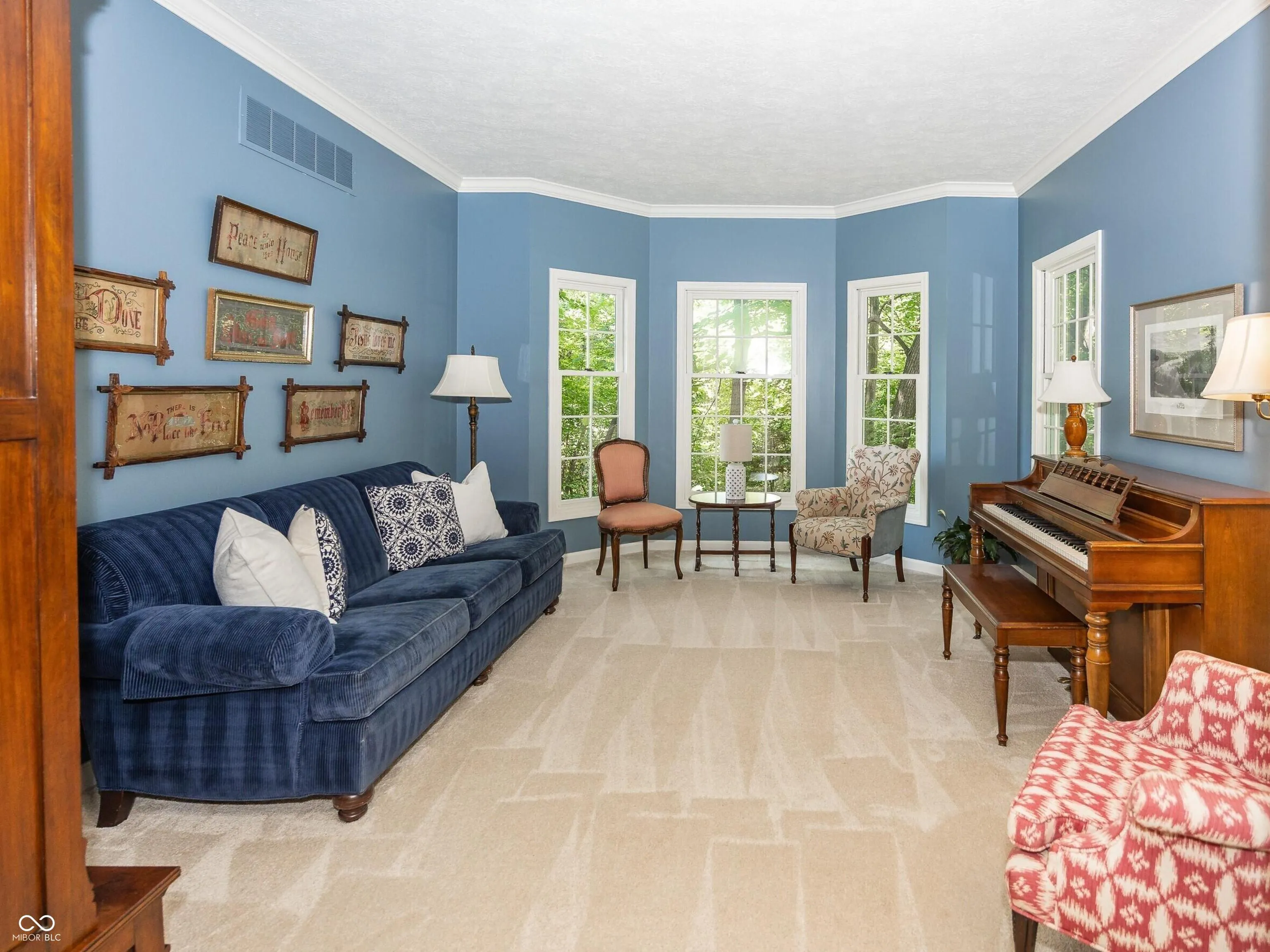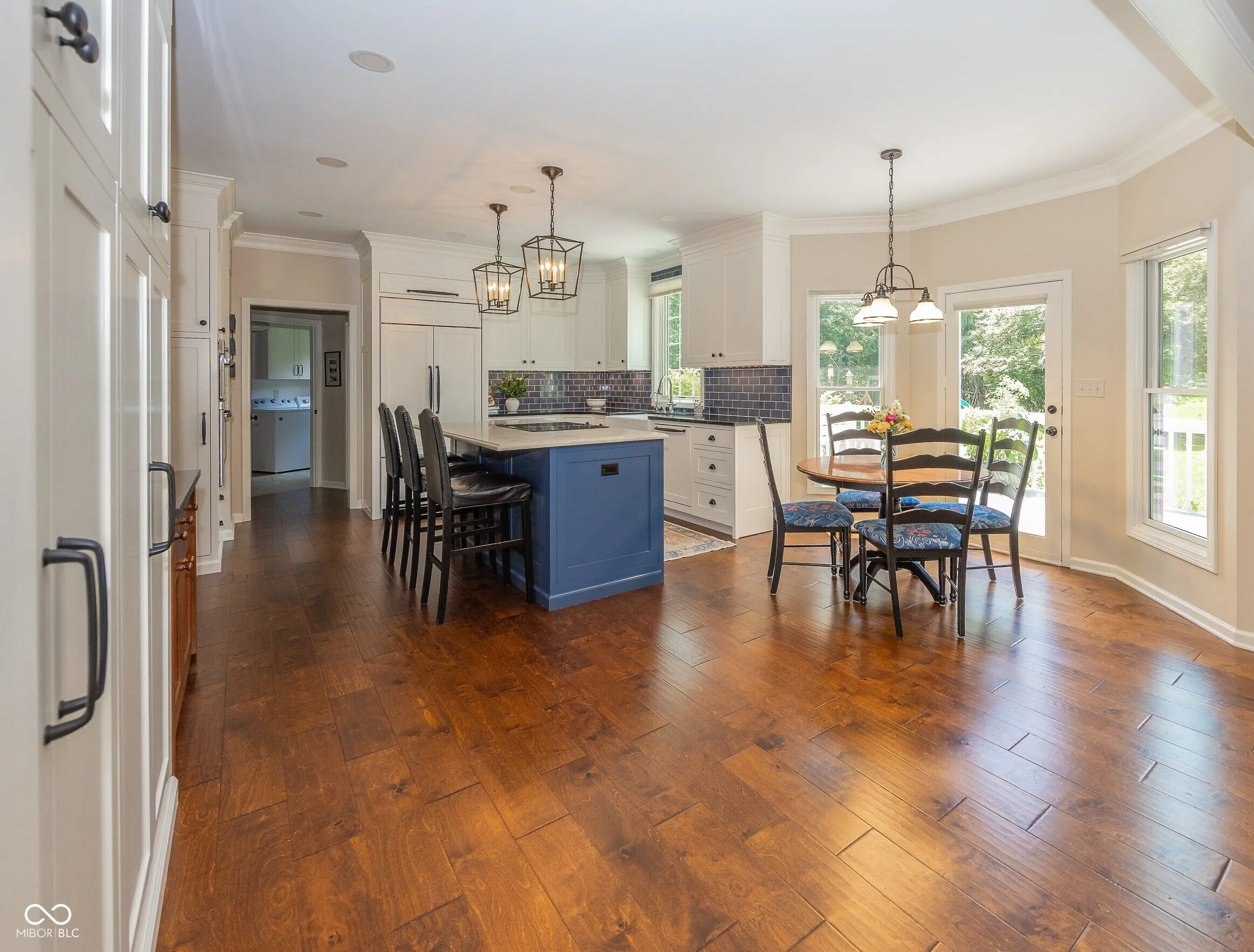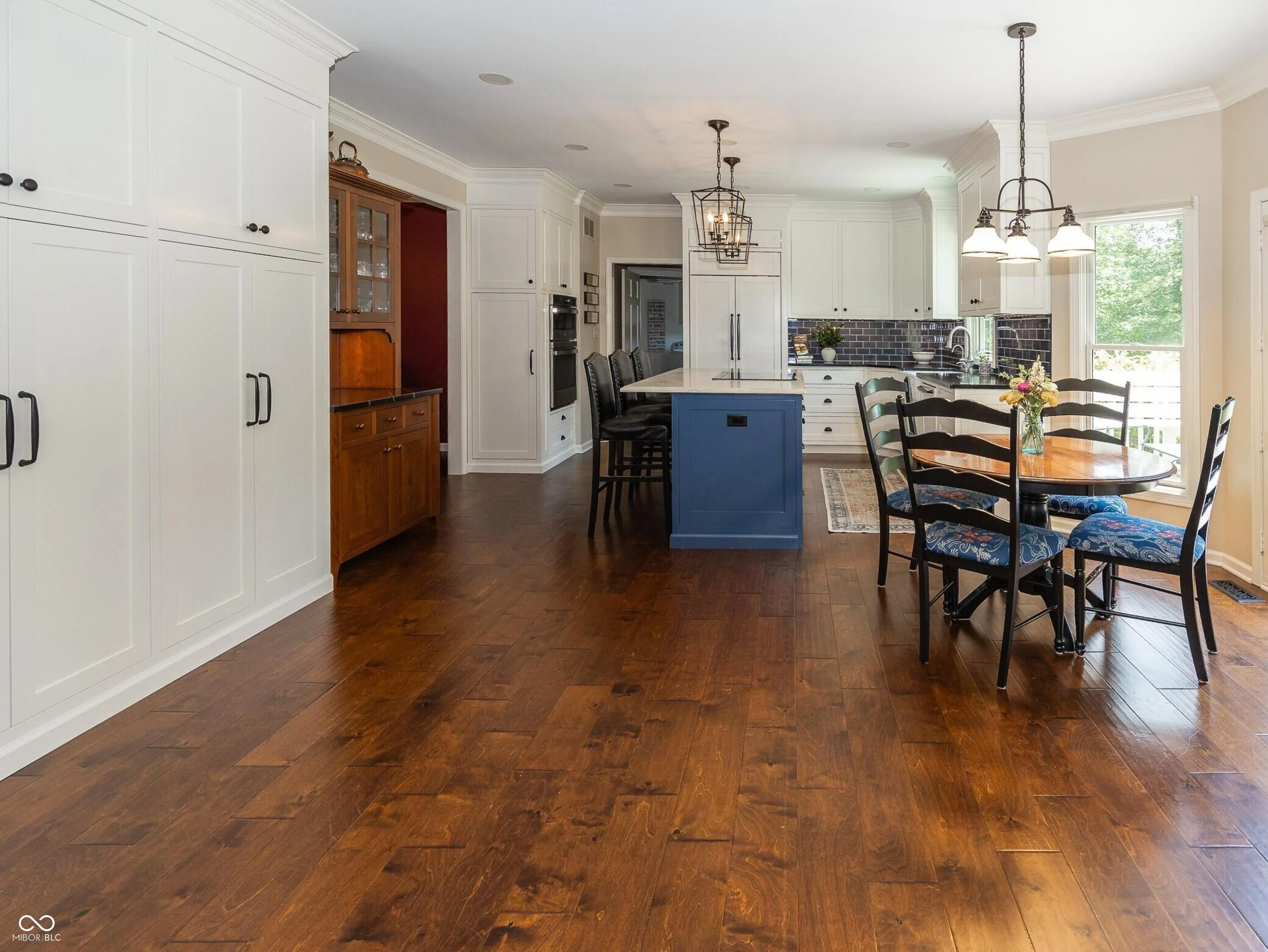 Discover timeless elegance in this custom-built classic home nestled on a tranquil .85-acre wooded lot in beautiful Cedar Ridge of Traders Point in the top-ranked Brownsburg school system! This spacious home boasts 4 bedrooms and 4 full baths, with attention to detail throughout the home including 9 ft. ceilings, crown molding, and gorgeous hardwood floors on most of the main floor. The generously-sized great room includes a cozy wood-burning fireplace, and along with the living room and dining room, provides plenty of space for family gatherings. The newly remodeled kitchen has been transformed into a chef’s dream complete with custom cabinetry, a Sub-Zero refrigerator, induction cook top, large spice cabinet, instant hot water dispenser, and island with quartzite countertop. A mudroom and a full bath with quartzite countertops complete the main level. The mudroom features a laundry area, custom lockers, two closets, and a dedicated office space featuring built-in filing cabinets, custom cabinetry, a honed granite desktop, and built-in shelving. Step outside the family room to the spacious screened porch overlooking a creek, woods, deck, and expansive backyard that is an ideal space for family activities. Upstairs, the primary suite offers a serene retreat with a comfortable sitting area and walk-in closet. The bathroom features double vanities, a separate shower, soaking tub, and ample storage. Another large bedroom adjoins a full bath, while two additional bedrooms share a Jack and Jill bathroom. The finished walk-out lower level has a family room with a second fireplace and plenty of storage space. It is perfect for game nights and gathering around the adjacent fire pit. Many updates include new roof, exterior paint, and HVAC. This exceptional property offers the best of both worlds-a private retreat with charm, character, and serenity and an incredibly convenient location close to shopping, dining, airport, and Eagle Creek Park.