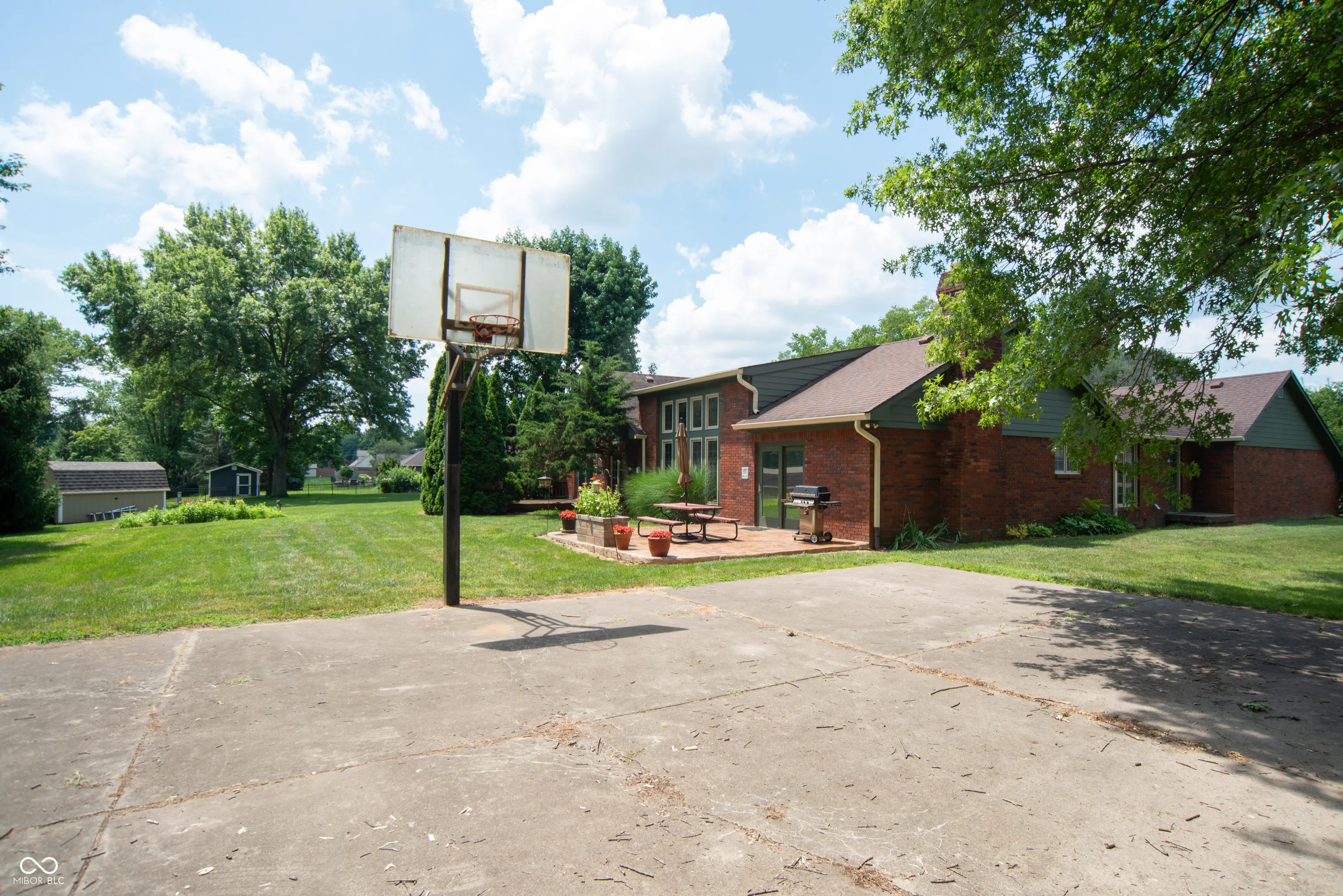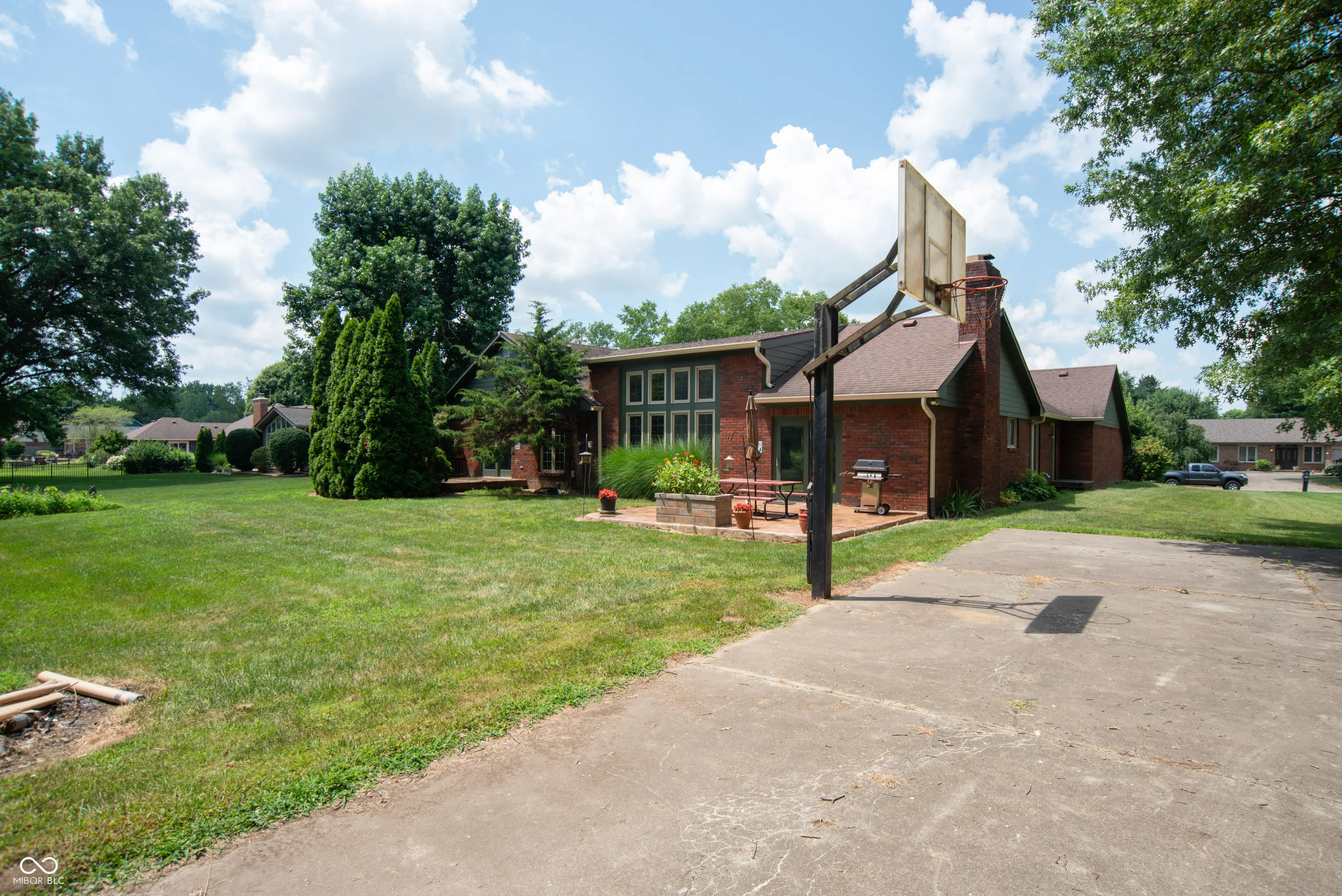 This well-built 4-bedroom, 2.5-bath brick home is full of character and potential, located in a quiet, mature neighborhood known for its charm and long-standing community feel. With a thoughtful layout, solid construction, and generous living spaces, this home offers comfort, functionality, and room to grow. Inside, you’ll find two inviting living areas-one with soaring vaulted ceilings and stunning floor-to-ceiling windows, the other with a cozy wood-burning fireplace that connects seamlessly to the kitchen. The layout is ideal for both everyday living and entertaining. The partially finished basement adds even more versatile space, perfect for a recreation room, play area, home gym, or media room. Whether you’re looking to relax or host guests, there’s room for everyone. While the home has some original finishes, it’s been priced with that in mind-offering a great opportunity to update over time and build equity. Outside, enjoy the large backyard with a new stamped concrete patio and your own single-goal basketball court-a rare find! This is a home with solid bones, great space, and endless potential in a well-loved neighborhood. Move in and make it your own.