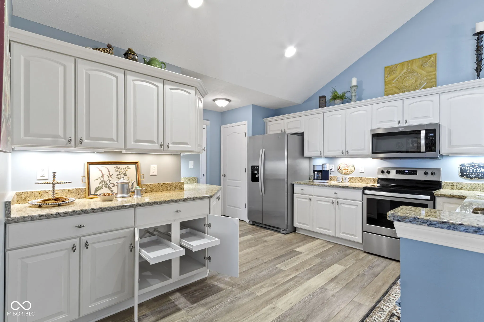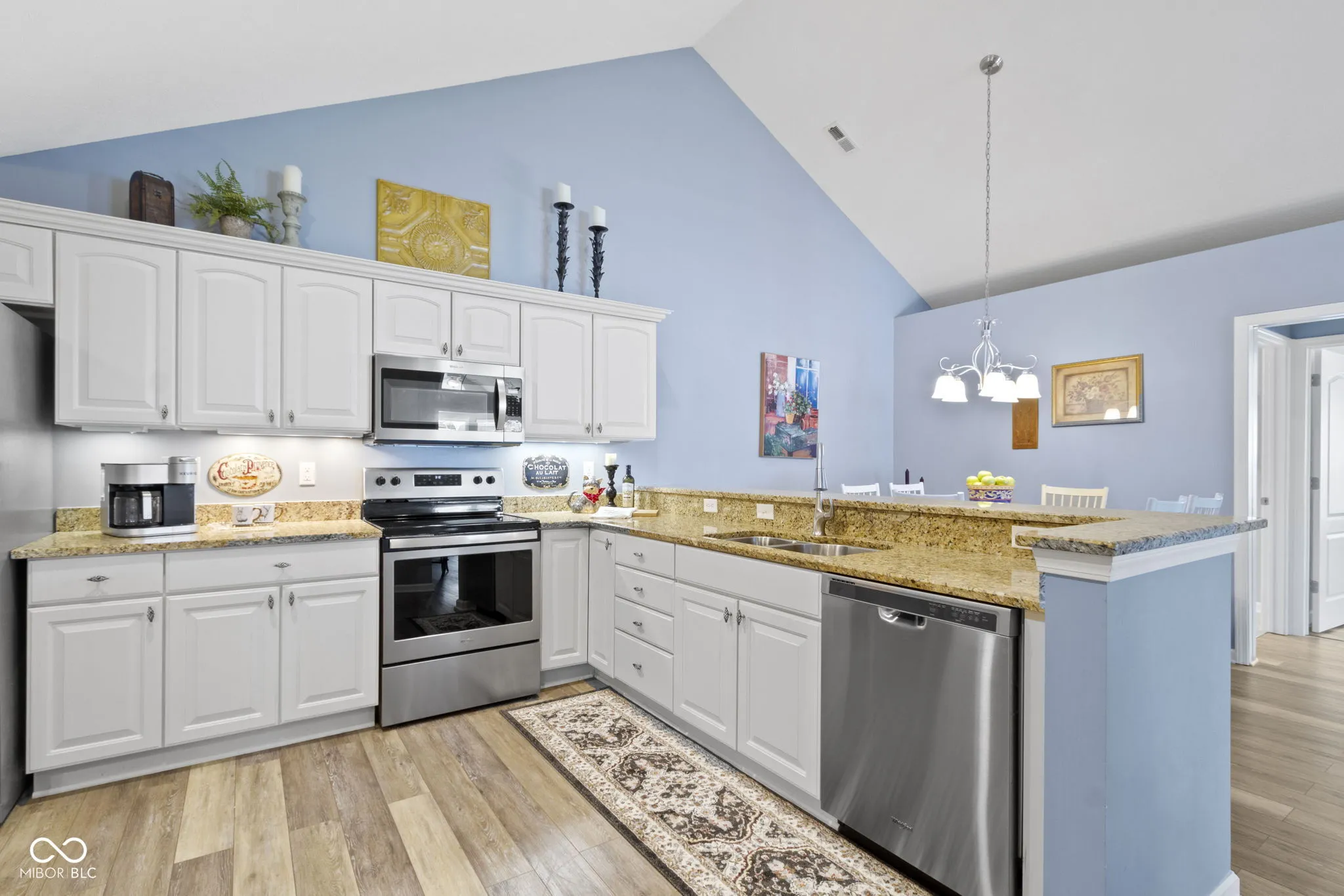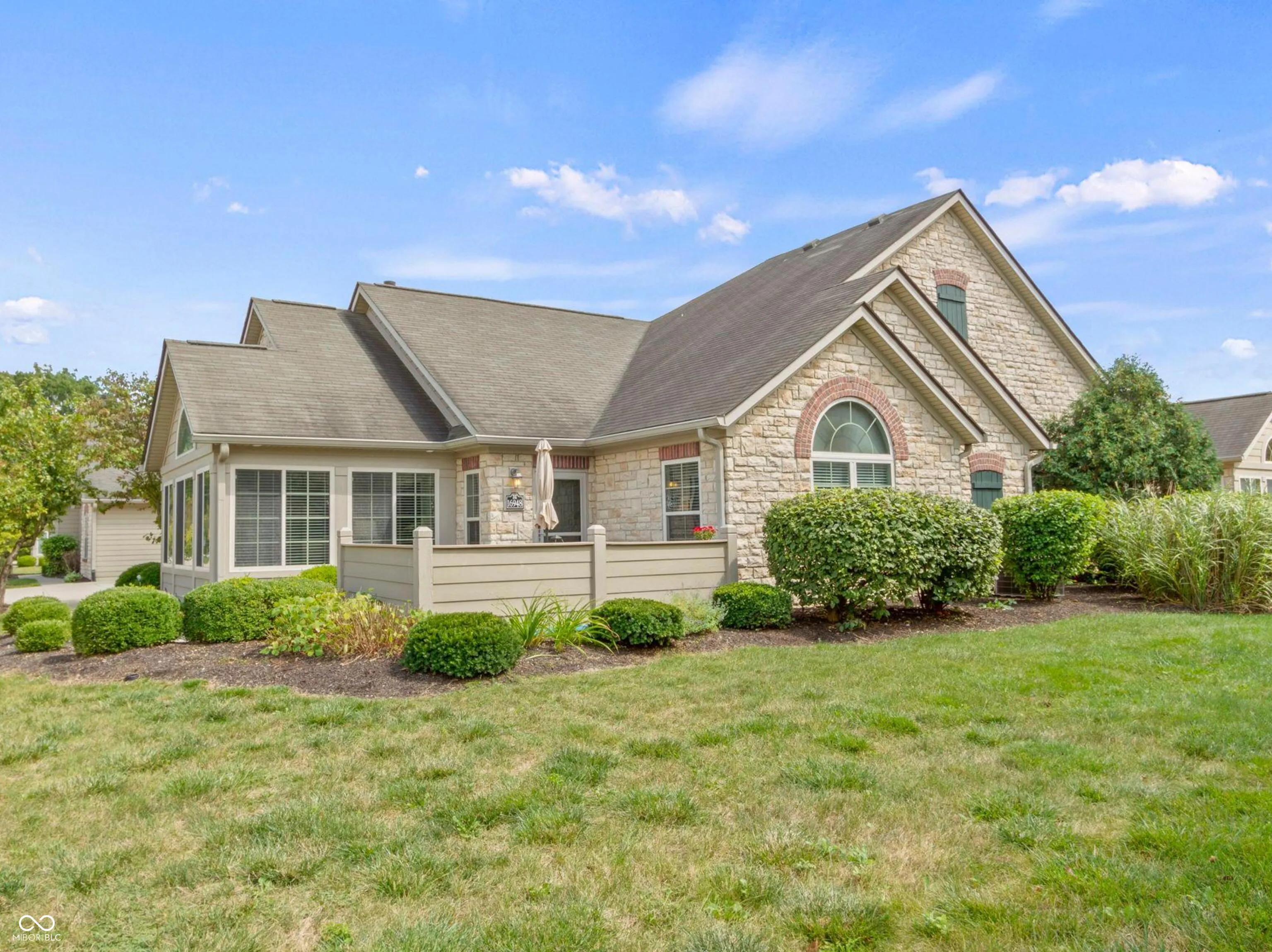 Professionally decorated, this wonderful Maples at Springmill condo makes you feel at home the minute you walk in the door! Vaulted ceilings offers an open & airy fell to the living room/dining room/kitchen area! And the 2 yr old luxury engineered wood floors are gorgeous & easy to maintain. The LR has a gas fireplace for cozy evenings, while the adjoining sun room offers more living space with lots of light! The kitchen has so many features/updates: beautiful white cabinetry (soft close), granite countertops, new SS appliances, pull out shelving & pantry. Both bedrooms are master suites with large baths (quartz counters) and custom walk-in closets. The laundry room is spacious with cabinets, and the adjoining “craft” room can be used for multiple purposes. The garage has 2 stalls with pull down stairs for attic storage. The condo is tucked back, with a private back yard and lovely patio for enjoying the outdoors. Other items to note: new water heater/2023, new Carrier high capacity AC/2022, new blinds/2023, and new landscaping/2023. The neighborhood has a great location, and boasts of a pool and clubhouse. This would be an awesome place to call “home”!