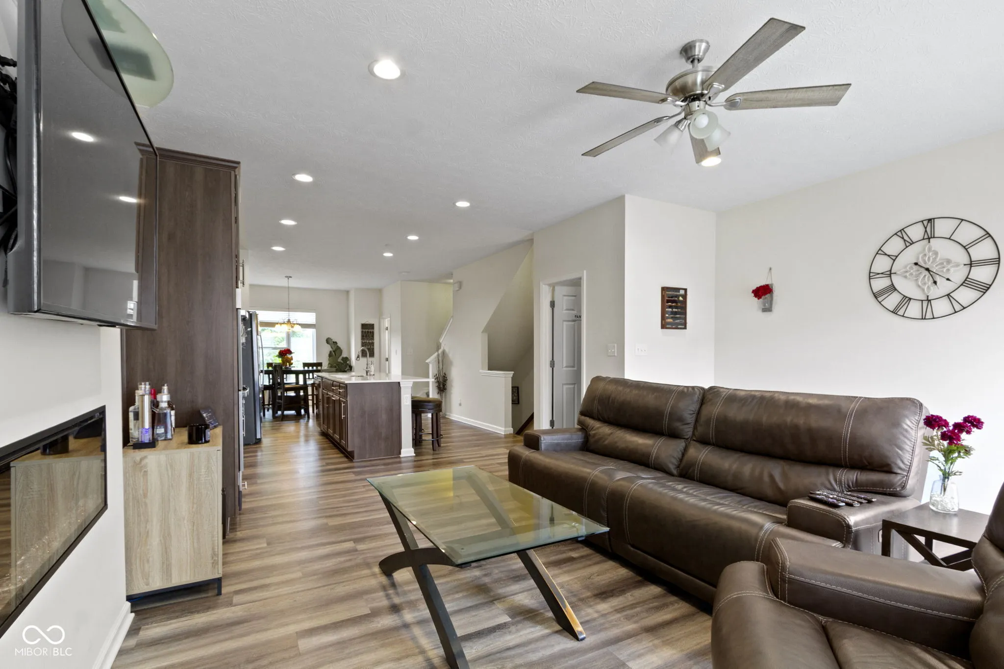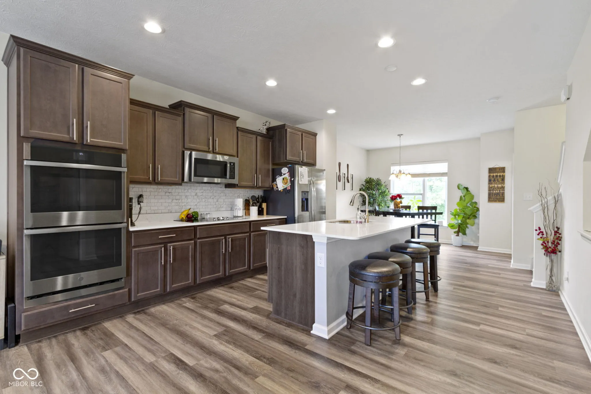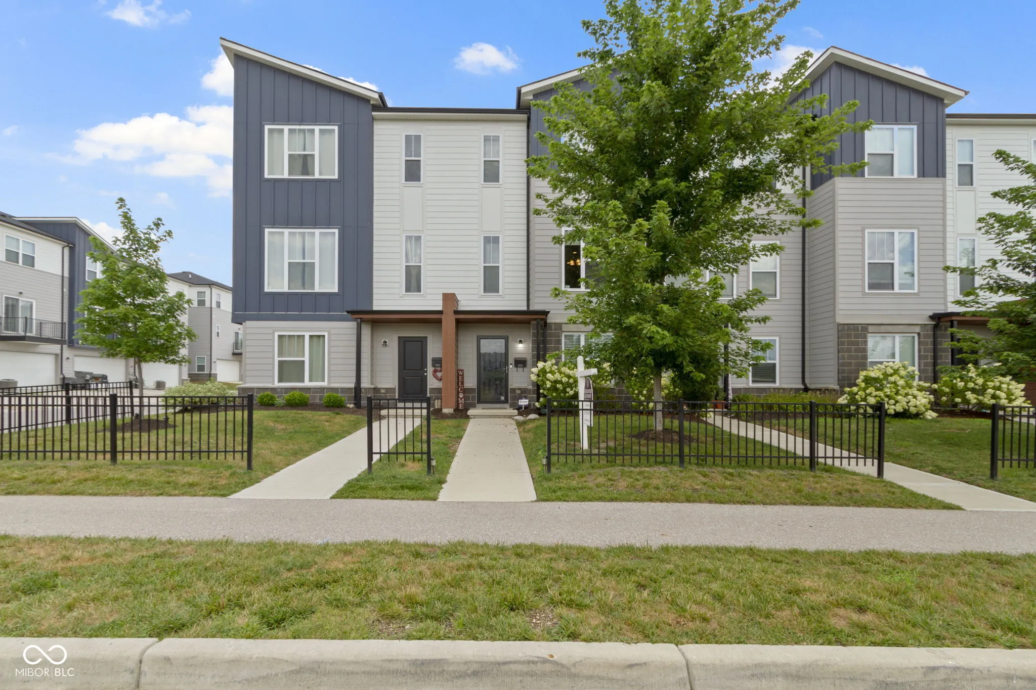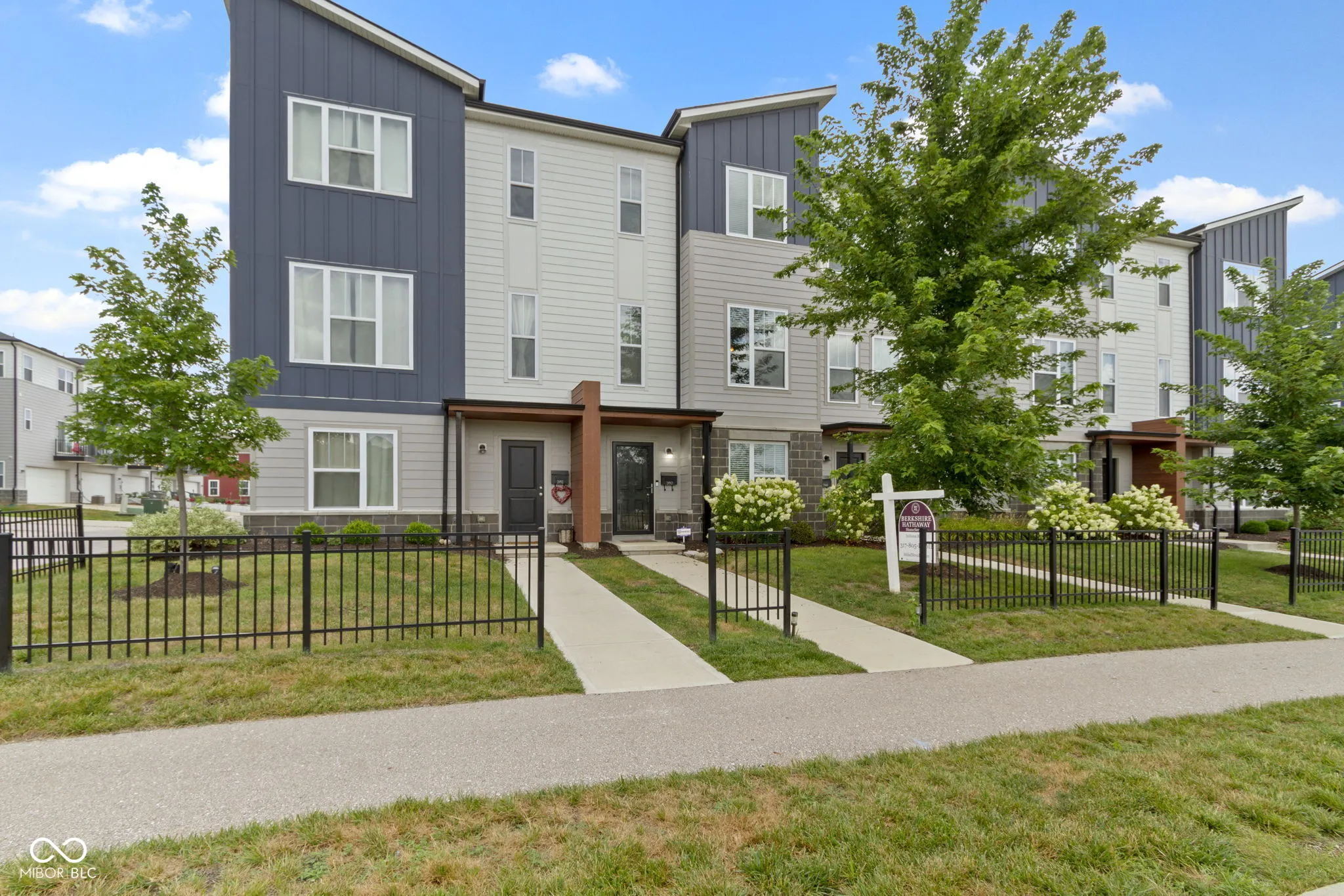 Discover contemporary comfort in this stunning 3-bedroom, 3.5-bathroom townhome, built in 2020 and nestled in the vibrant near west side of Indianapolis. Designed with modern lifestyles in mind, this multi-level home offers open-concept living, sleek finishes, and flexible spaces perfect for work, entertaining, or relaxing. Step inside to find a spacious main living area with abundant natural light, high ceilings, and durable luxury vinyl plank flooring. The gourmet kitchen features quartz countertops, stainless steel appliances–including double ovens, a large island with bar seating, and ample cabinetry-ideal for both casual meals and hosting guests. Each of the three generously sized bedrooms includes its own private en-suite bath, providing comfort and privacy for family members or guests. The primary suite boasts a vaulted ceiling, walk-in closet and a spa-inspired bathroom with dual vanities and a tiled shower. Additional highlights include a convenient half bath adjacent to the living and dining spaces, an attached two-car garage, upper-level laundry, and a private balcony-perfect for morning coffee or unwinding at sunset. Located just minutes from downtown Indy, this low-maintenance townhome offers the perfect blend of urban access and modern convenience. Whether you’re a first-time buyer, investor, or looking for a low-maintenance lifestyle close to the action, this home checks all the boxes.