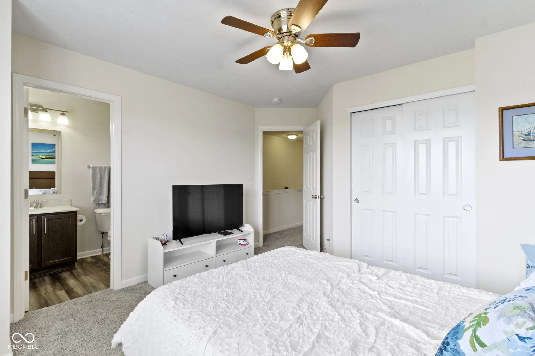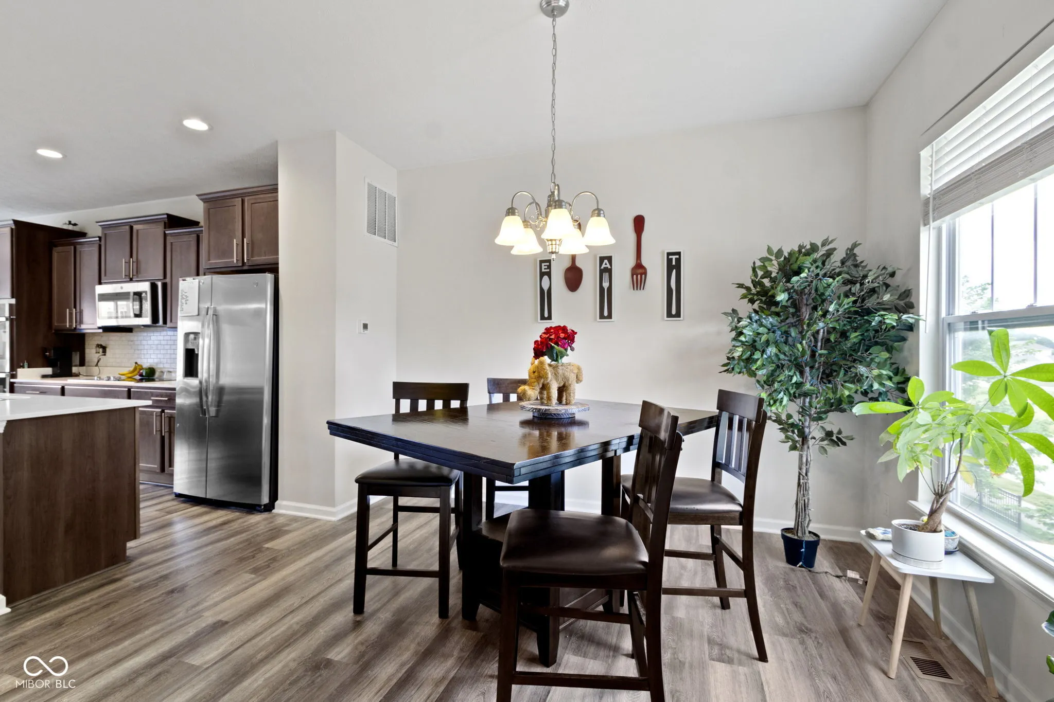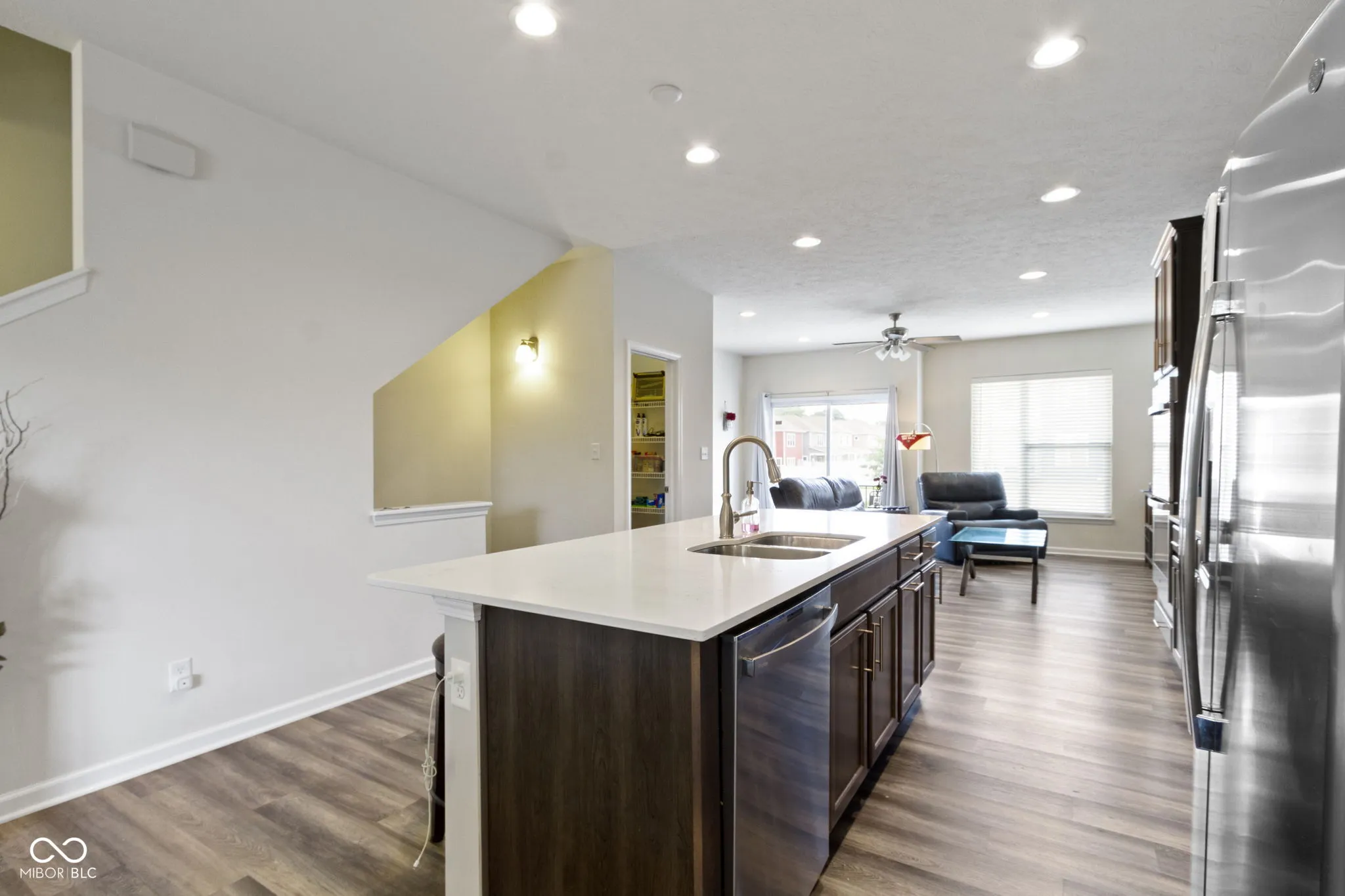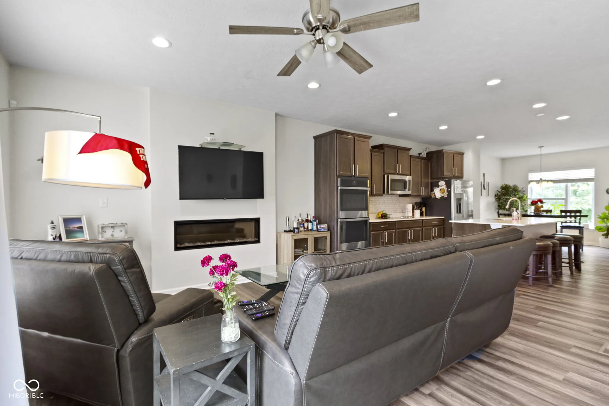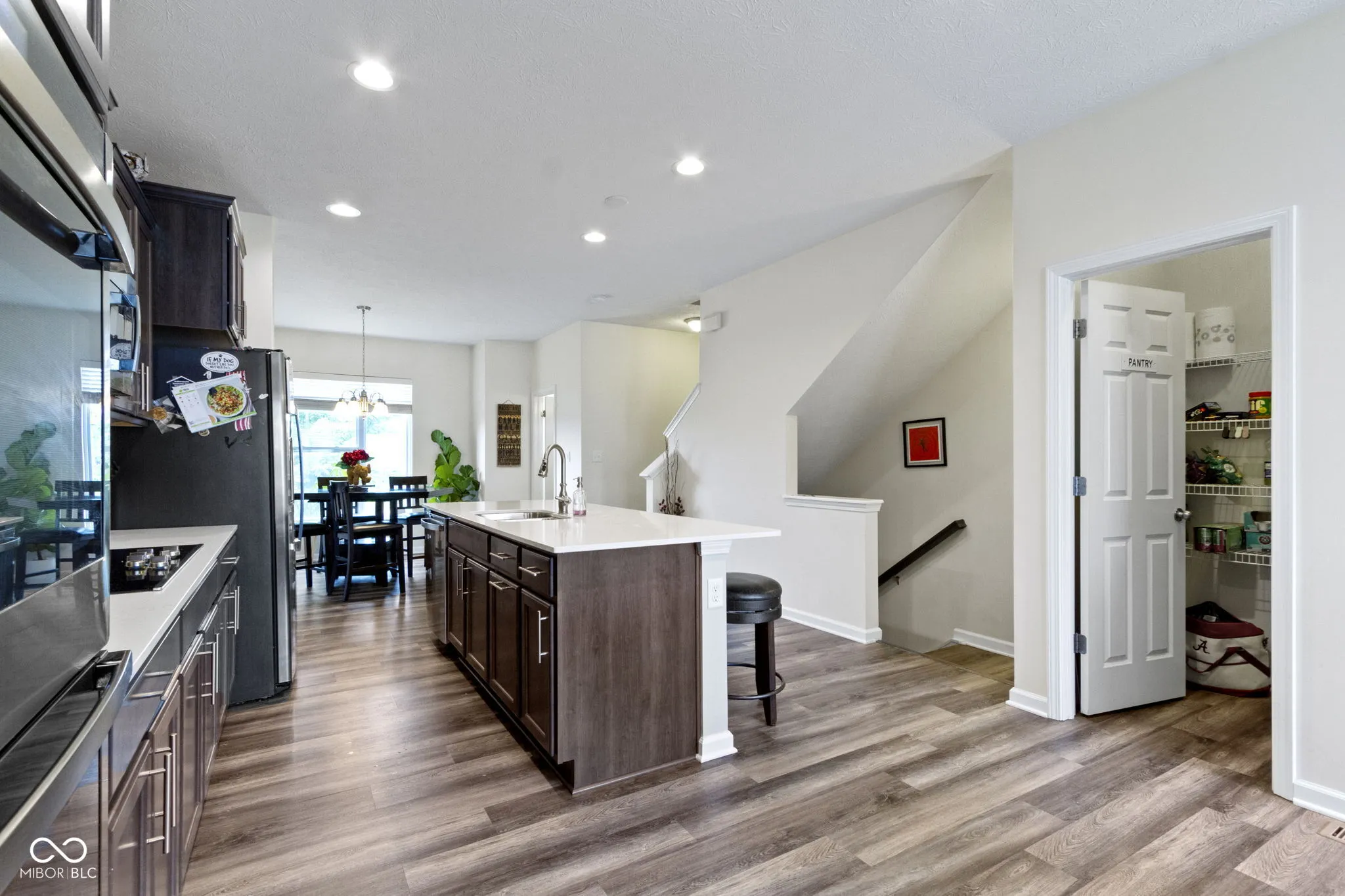 Discover contemporary comfort in this stunning 3-bedroom, 3.5-bathroom townhome, built in 2020 and nestled in the vibrant near west side of Indianapolis. Designed with modern lifestyles in mind, this multi-level home offers open-concept living, sleek finishes, and flexible spaces perfect for work, entertaining, or relaxing. Step inside to find a spacious main living area with abundant natural light, high ceilings, and durable luxury vinyl plank flooring. The gourmet kitchen features quartz countertops, stainless steel appliances–including double ovens, a large island with bar seating, and ample cabinetry-ideal for both casual meals and hosting guests. Each of the three generously sized bedrooms includes its own private en-suite bath, providing comfort and privacy for family members or guests. The primary suite boasts a vaulted ceiling, walk-in closet and a spa-inspired bathroom with dual vanities and a tiled shower. Additional highlights include a convenient half bath adjacent to the living and dining spaces, an attached two-car garage, upper-level laundry, and a private balcony-perfect for morning coffee or unwinding at sunset. Located just minutes from downtown Indy, this low-maintenance townhome offers the perfect blend of urban access and modern convenience. Whether you’re a first-time buyer, investor, or looking for a low-maintenance lifestyle close to the action, this home checks all the boxes.