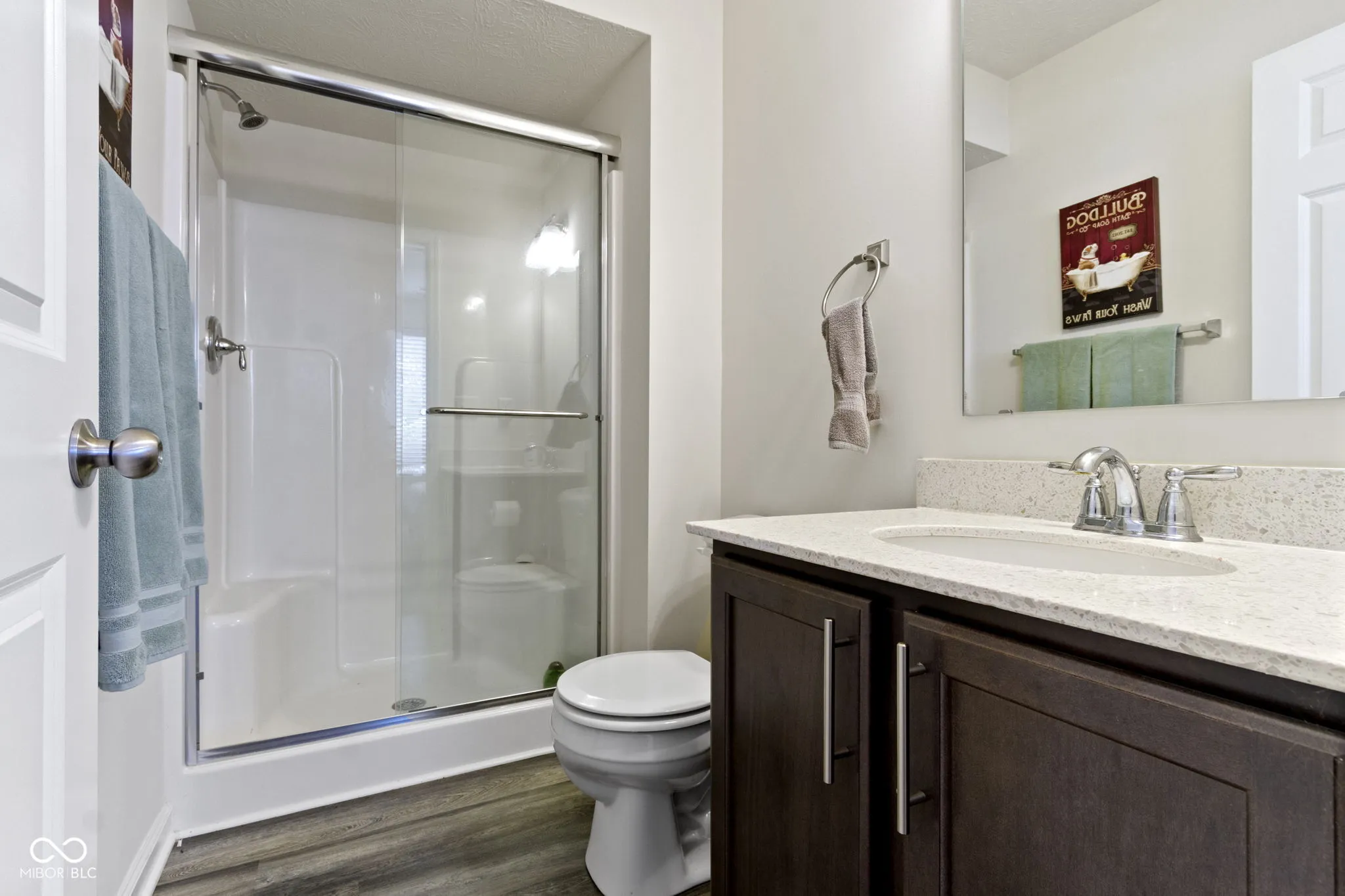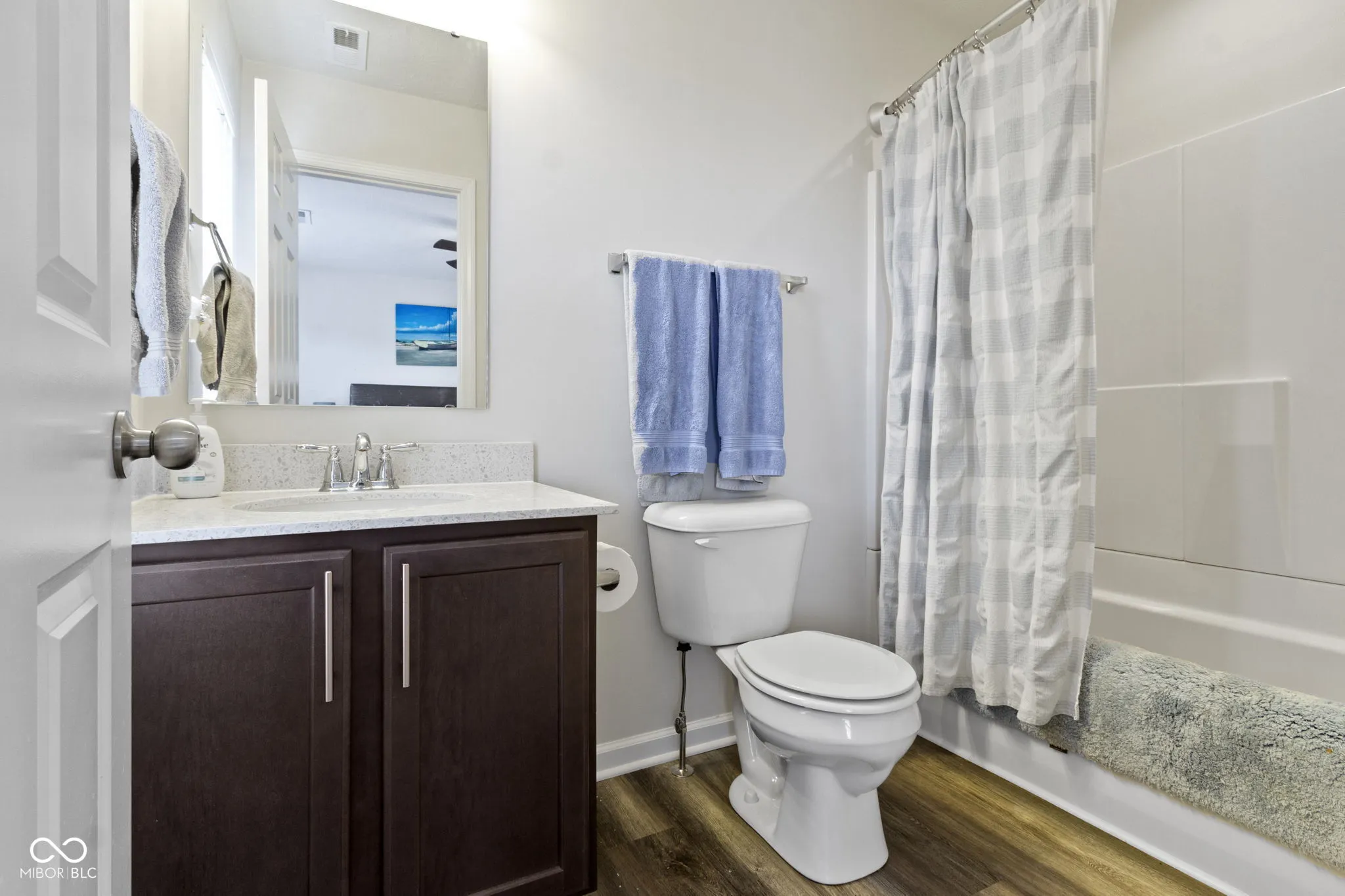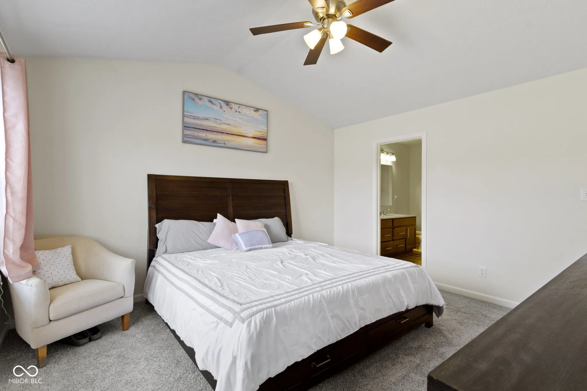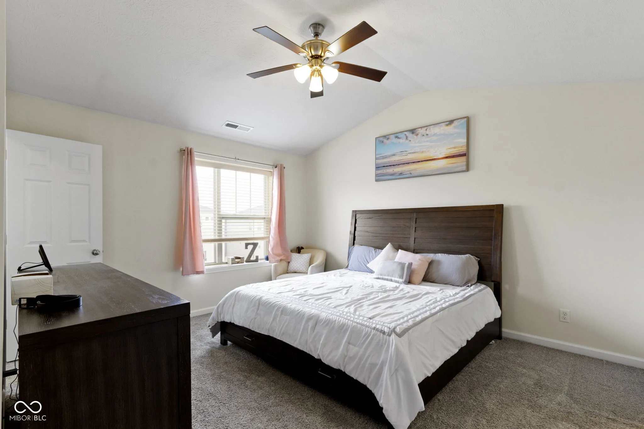 Discover contemporary comfort in this stunning 3-bedroom, 3.5-bathroom townhome, built in 2020 and nestled in the vibrant near west side of Indianapolis. Designed with modern lifestyles in mind, this multi-level home offers open-concept living, sleek finishes, and flexible spaces perfect for work, entertaining, or relaxing. Step inside to find a spacious main living area with abundant natural light, high ceilings, and durable luxury vinyl plank flooring. The gourmet kitchen features quartz countertops, stainless steel appliances–including double ovens, a large island with bar seating, and ample cabinetry-ideal for both casual meals and hosting guests. Each of the three generously sized bedrooms includes its own private en-suite bath, providing comfort and privacy for family members or guests. The primary suite boasts a vaulted ceiling, walk-in closet and a spa-inspired bathroom with dual vanities and a tiled shower. Additional highlights include a convenient half bath adjacent to the living and dining spaces, an attached two-car garage, upper-level laundry, and a private balcony-perfect for morning coffee or unwinding at sunset. Located just minutes from downtown Indy, this low-maintenance townhome offers the perfect blend of urban access and modern convenience. Whether you’re a first-time buyer, investor, or looking for a low-maintenance lifestyle close to the action, this home checks all the boxes.