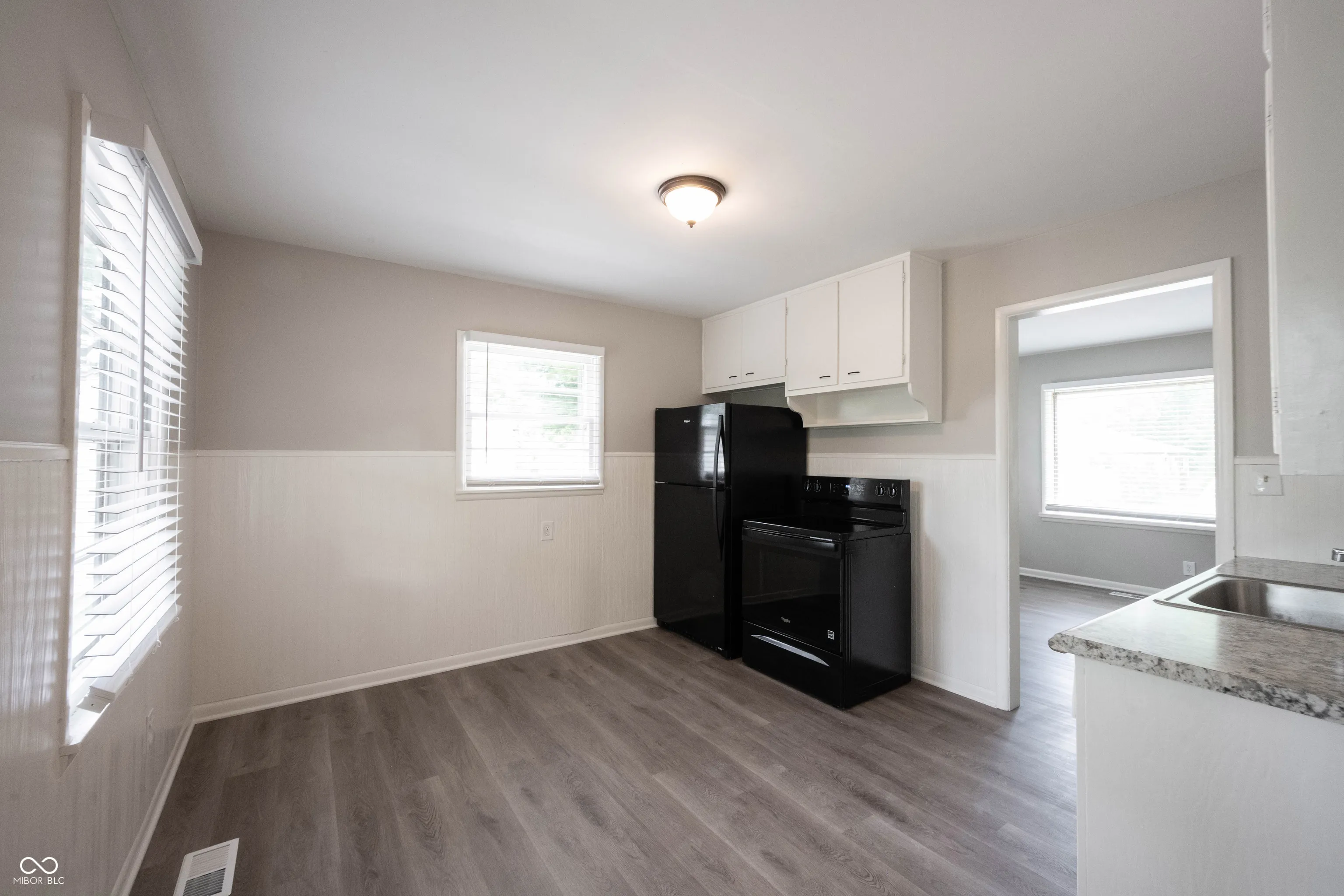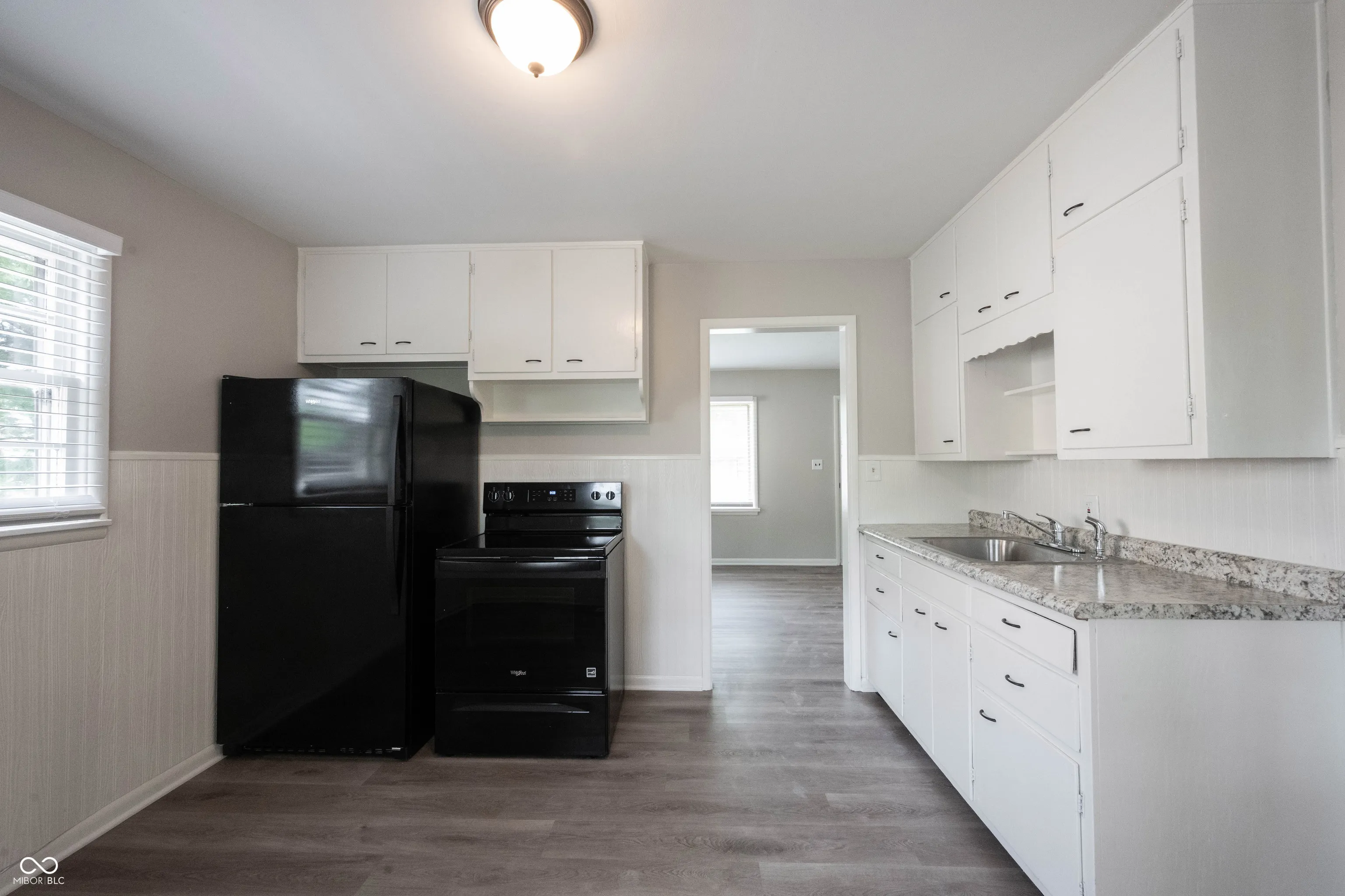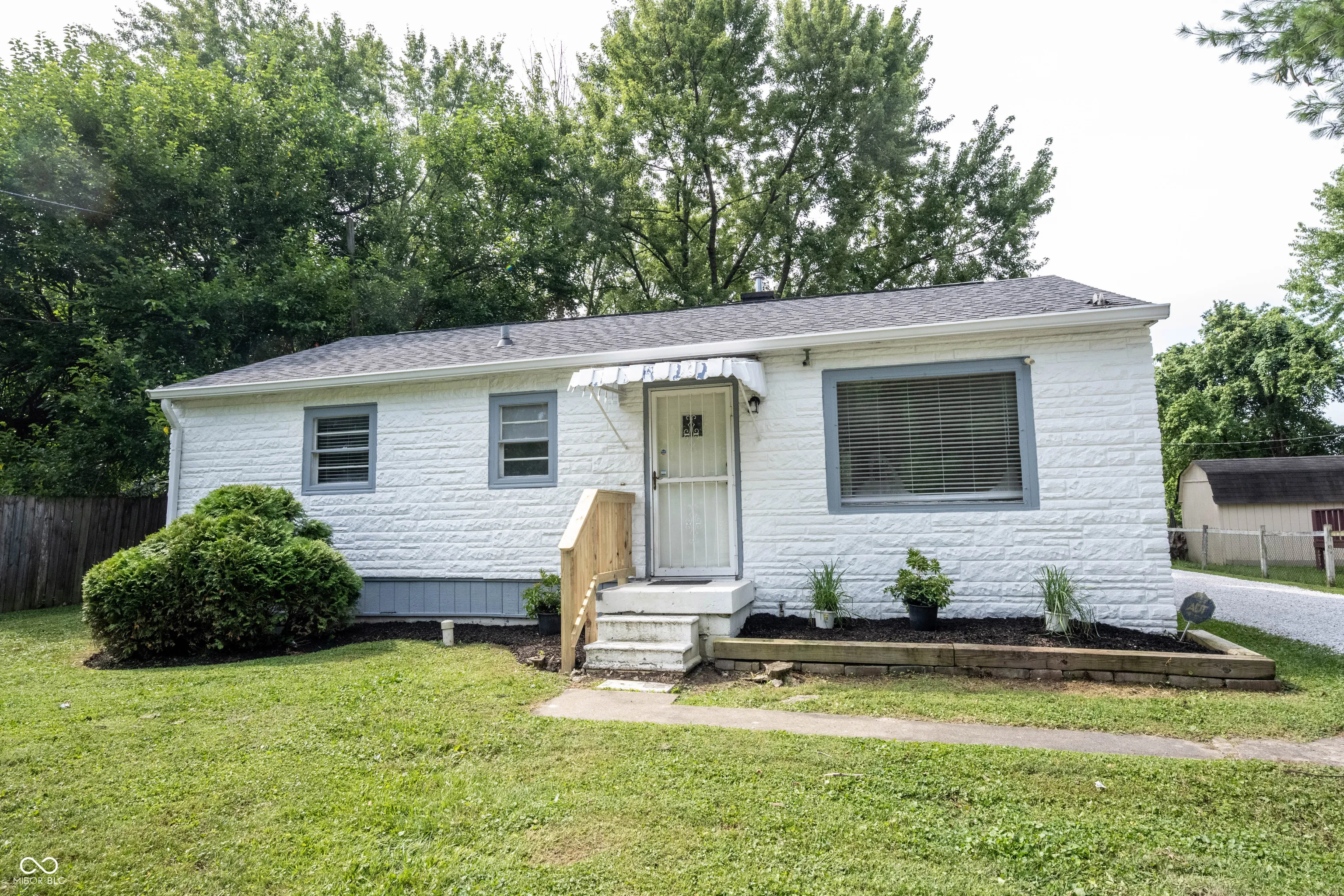 Capture the American Dream of homeownership! Perfect first home, that’s updated and MOVE IN READY! Greeted by the freshly painted stone, this cute 2 bedroom, 1 bath bungalow sits on a larger than normal homesite with a backyard that’s huge! Open the door to new luxury vinyl plank flooring, and a greatroom that’s 18×12 with great natural lighting from 2 walls of windows! Freshly painted throughout! Step into the kitchen just off the greatroom and find crisp white cabinets, new counters, complete with all NEW appliances! Dining area tucked off the kitchen encompassed by beadboard for an updated look! Located off the kitchen is the laundry/utility room for convenience with a passthrough to the bedrooms. Full bath with new vanity and fixtures in close proximity to the bedrooms. Two bedrooms complete with new carpet. Owners’ suite with 2 closets. Home is complete with window treatments, truly move in ready! Step outside into your fenced backyard, new gravel driveway leading back to the detached 2 car garage. Firepit area perfect for a gathering on a hot summer night! Enjoy this private backyard encompassed by mature trees and landscape.