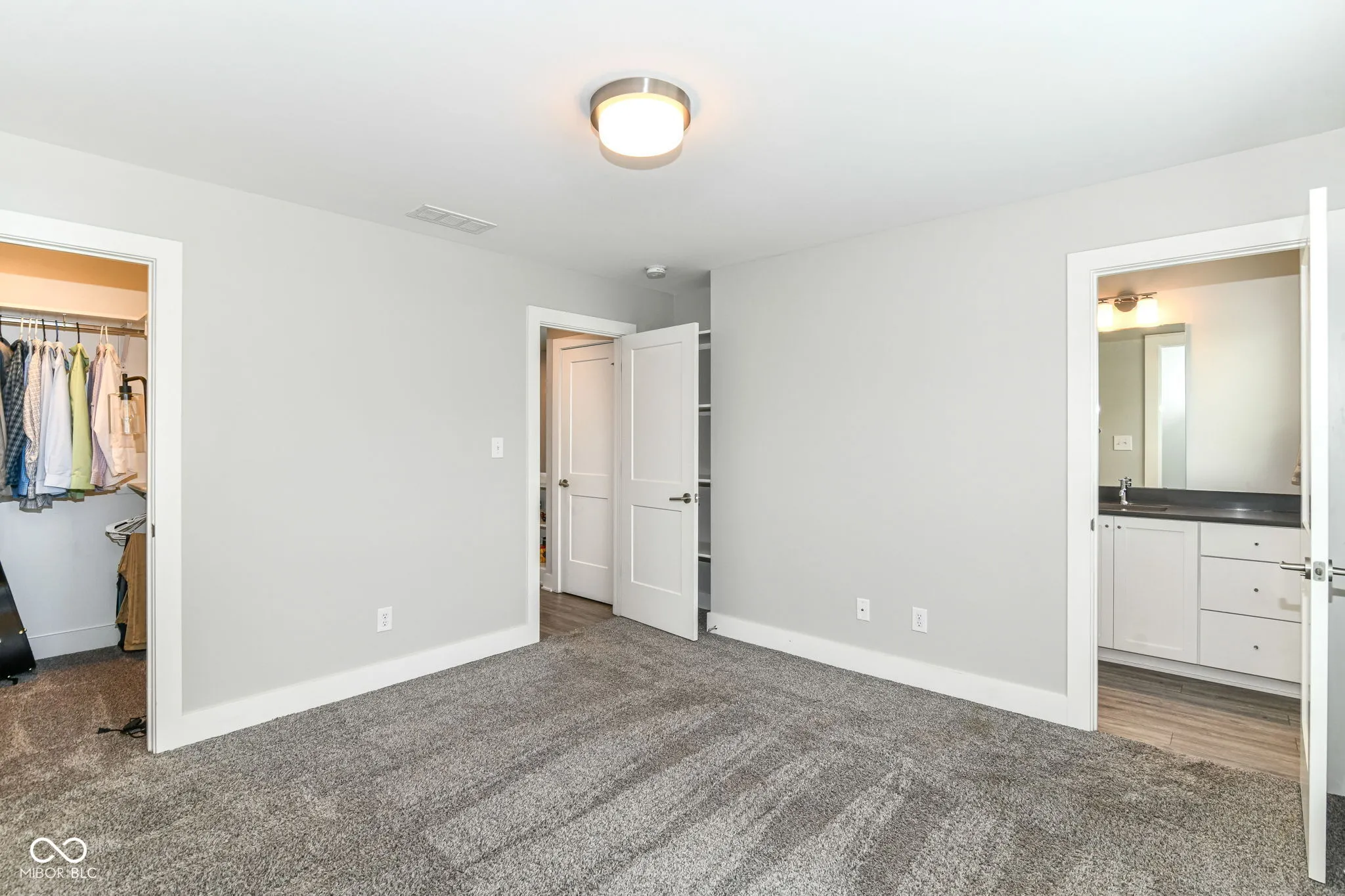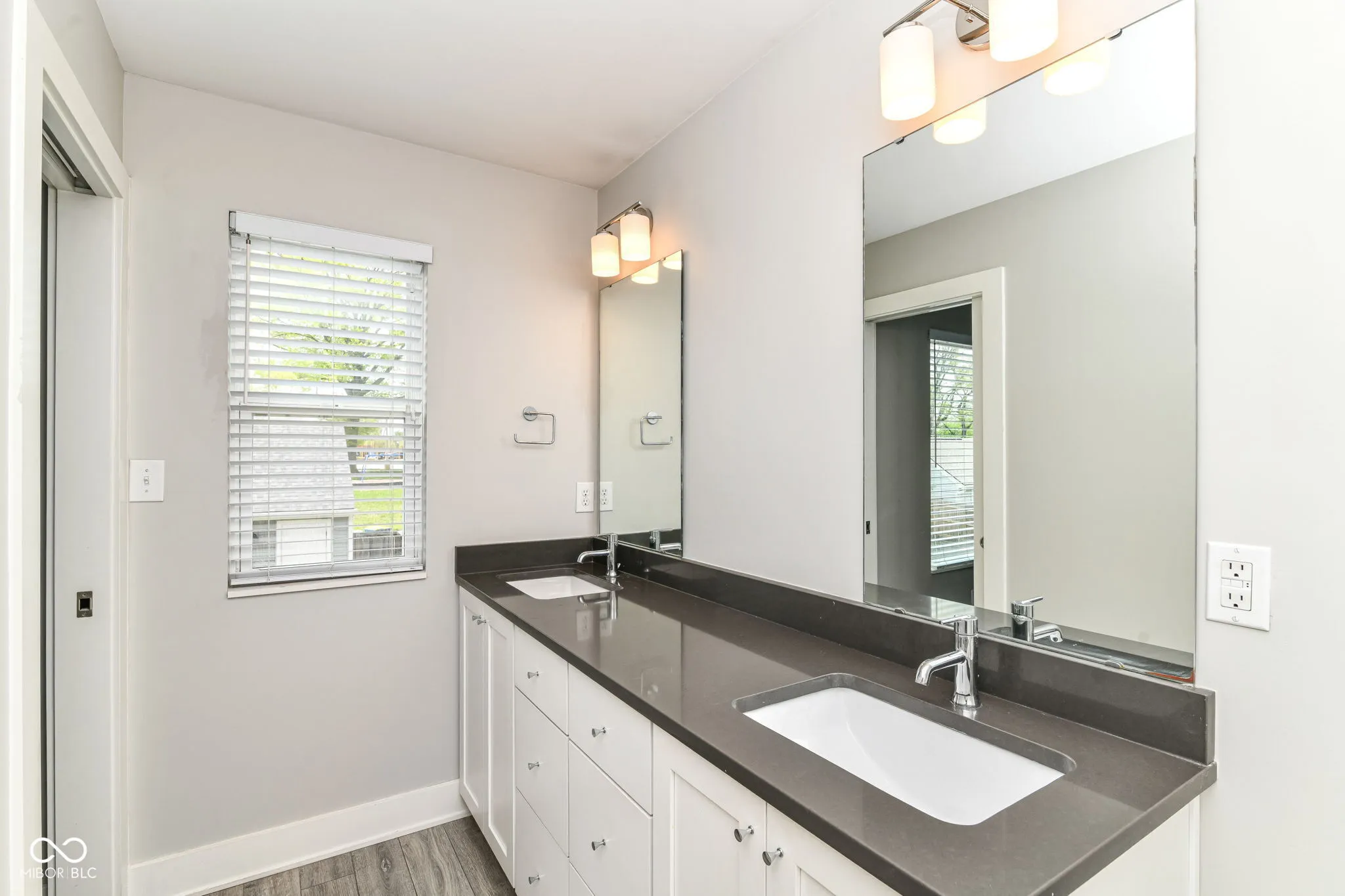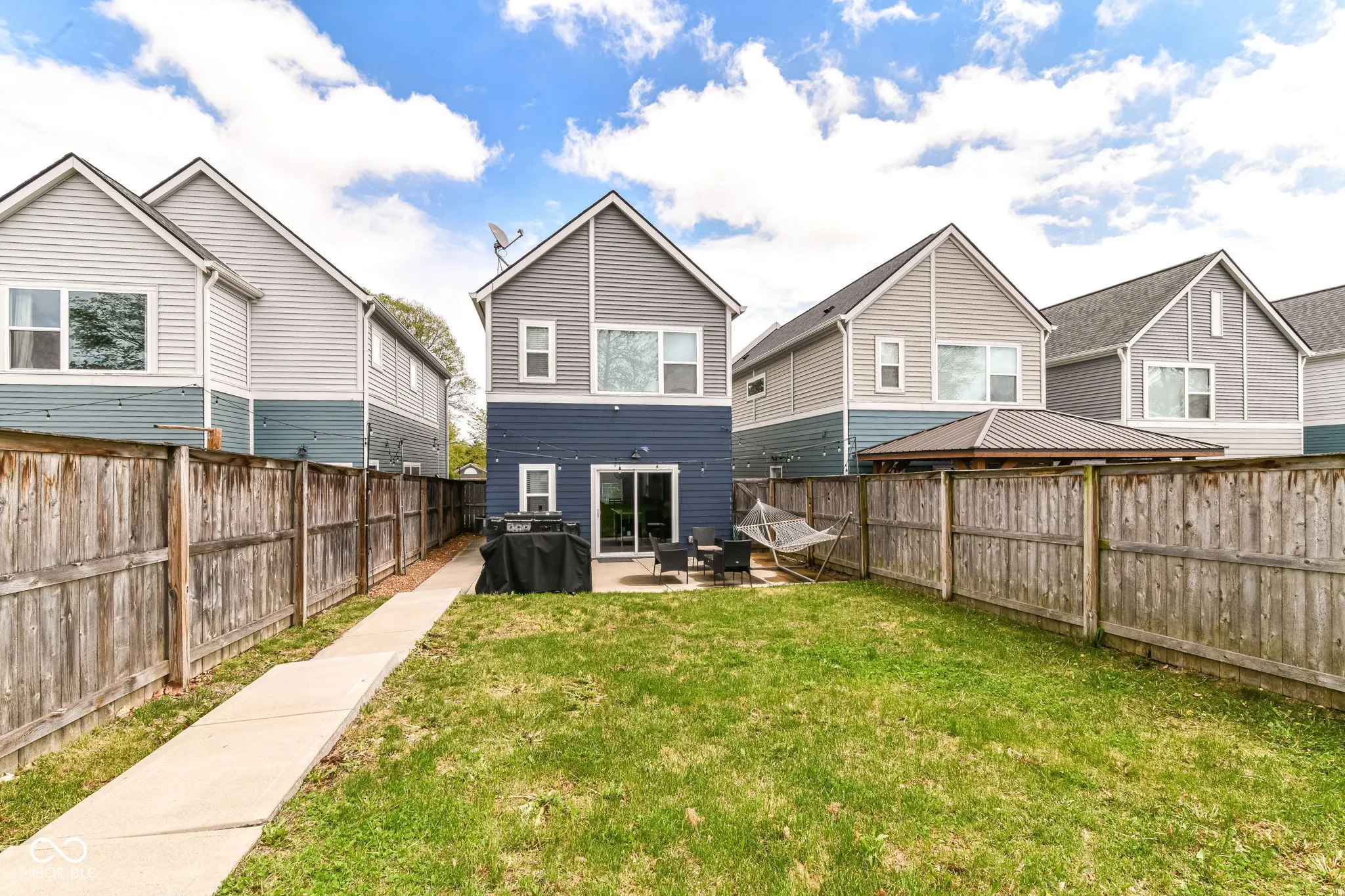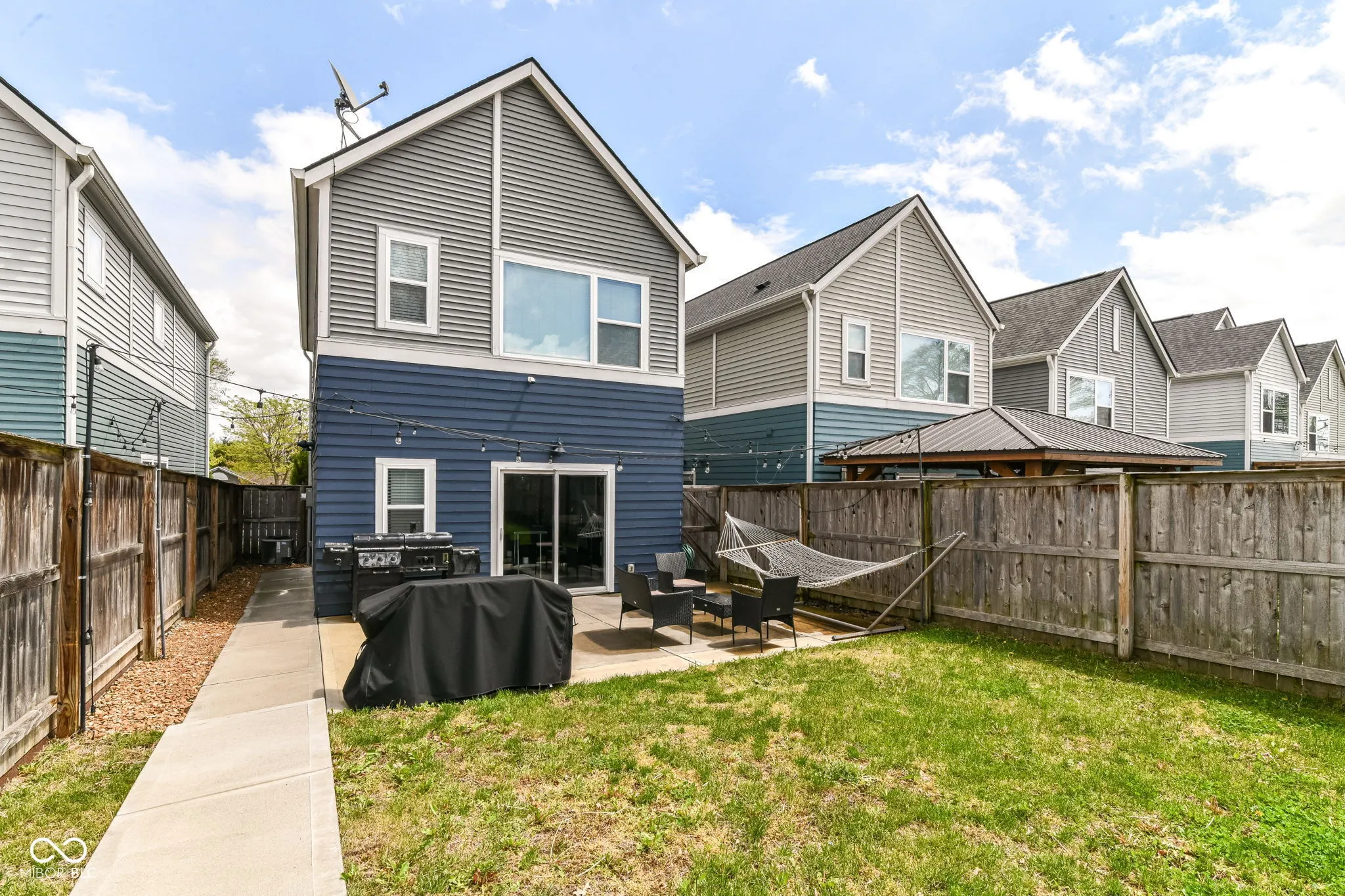 Discover a meticulously maintained home in the coveted Central State neighborhood, constructed in 2017 by Compendium. This residence boasts modern amenities and thoughtful design, starting with durable and stylish engineered vinyl plank flooring throughout the main level and a striking hardwood staircase. The updated kitchen is a culinary haven, featuring Carrara quartz countertops and stainless steel appliances that convey with the home. A generously sized walk-in pantry provides exceptional storage. The master suite is a true sanctuary, complete with an ensuite bathroom featuring a double vanity, quartz countertops, a walk-in shower, and a spacious walk-in closet. The second bedroom also enjoys an ensuite bathroom with quartz countertops and a tiled shower, along with a walk-in closet. Upstairs laundry adds to the home’s convenience. Enjoy seamless indoor-outdoor living with an extended concrete patio and a fully fenced backyard, ideal for gatherings and relaxation. The proximity to downtown Indianapolis ensures easy access to the city’s vibrant attractions.