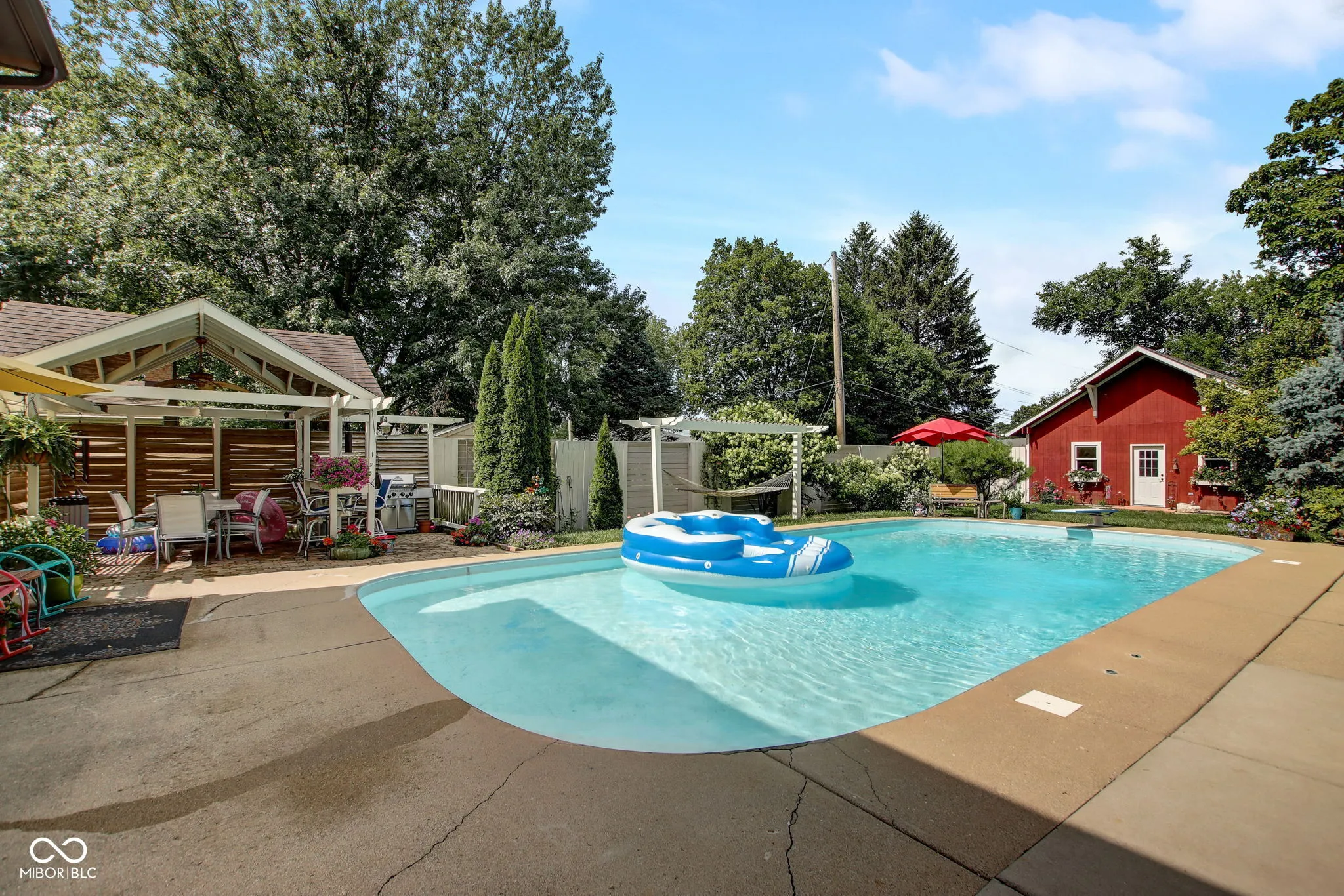Welcome to your private retreat in a desirable golf course community, located adjacent to the prestigious Ulen Country Club. This charming 4-bedroom, 2.5-bath home sits on a beautifully landscaped, park-like lot and offers an exceptional blend of comfort and outdoor living. Enjoy all four seasons in the spacious sunroom, take a dip in the inground concrete pool, or host gatherings under the covered pavilion. The great room features Brazilian hardwood floors and a stunning masonry fireplace, perfect for cozy evenings. A standout feature is the custom 26×48 heated pole barn-ideal for a hobbyist, woodworker, or extra storage space. Whether you’re enjoying peaceful mornings or entertaining friends and family, this home is designed to impress.
