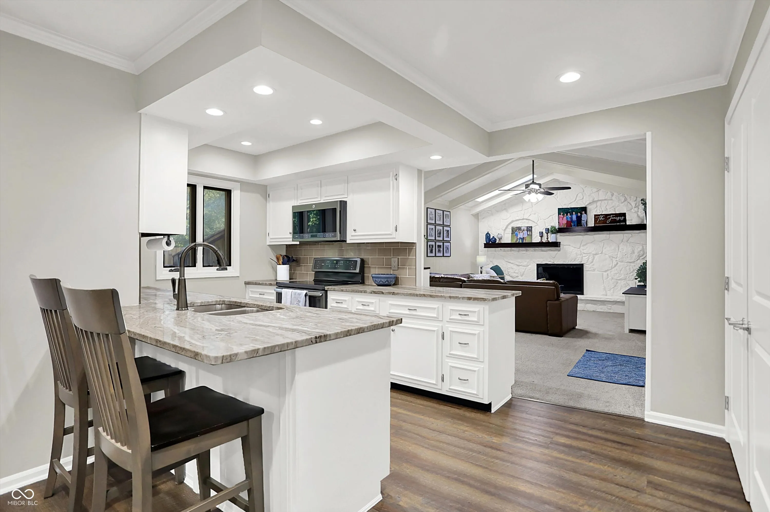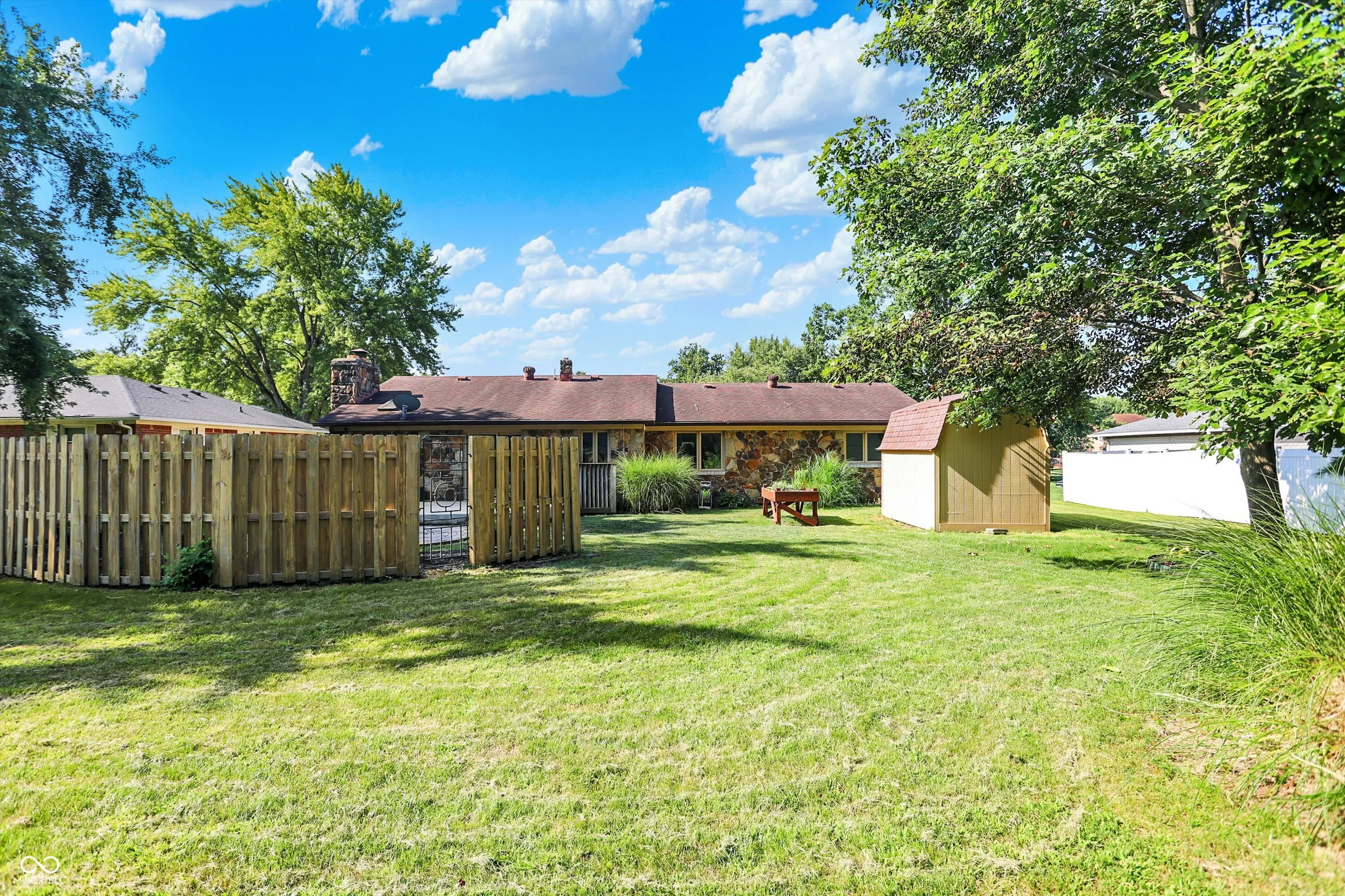 Back on the market due to buyer financing falling through. Just steps from the neighborhood pool, this 4-bedroom, 2-bath ranch in Meridian Woods offers the perfect blend of charm, updates, and everyday functionality. Inside, you’ll find fully remodeled bathrooms (down to the studs!), a bright kitchen with a breakfast bar and pull-out pantry drawers, and a spacious family room featuring vaulted ceilings, white beams, and a cozy gas fireplace. A dedicated laundry room was smartly added, relocating the washer and dryer from the kitchen area for improved flow. Enjoy outdoor living on the back deck with direct access to the walking trail. With crisp white trim and thoughtful upgrades throughout, this home is truly move-in ready. Major updates include a 2021 HVAC system with upgraded ductwork, new water heater, and new water softener. The 4th bedroom can easily convert back into a living room if desired. Full list of updates attached.