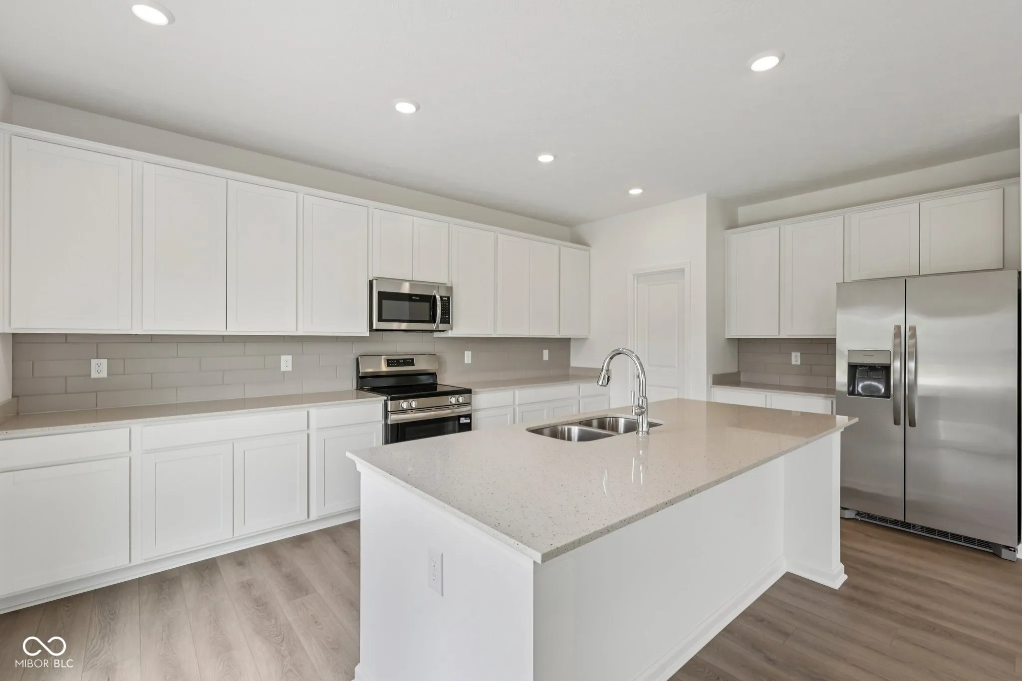 Welcome home! This Cooper floor plan brings together intentional design, upgraded details, and flexible spaces to meet your needs. With over 2,850 square feet, 4 bedrooms, and 3 full bathrooms, this home offers plenty of space for family and guests. The exterior features a brick accent and Elevation A, creating a timeless first impression. Step inside to find 9′ first floor walls and vinyl plank flooring throughout the common areas-combining durability with a clean, modern aesthetic. The kitchen serves as the heart of the home, complete with 42″ white cabinetry, quartz countertops, a stylish tile backsplash, and stainless steel appliances-including a refrigerator. A large island with pendant prewires provides space for prep, dining, and casual conversation. Upstairs, the primary suite offers a true retreat with a separate garden tub and 48″ shower, a double bowl vanity, and a tall, elongated toilet. Secondary bathrooms echo this style with quartz countertops, sheet vinyl flooring, and sleek white cabinetry. Additional highlights include a 12′ x 10′ rear patio for outdoor living, an enlarged closet under the stairs, upgraded stained stair railing, LED lighting throughout, and ceiling fan prewires in key rooms.