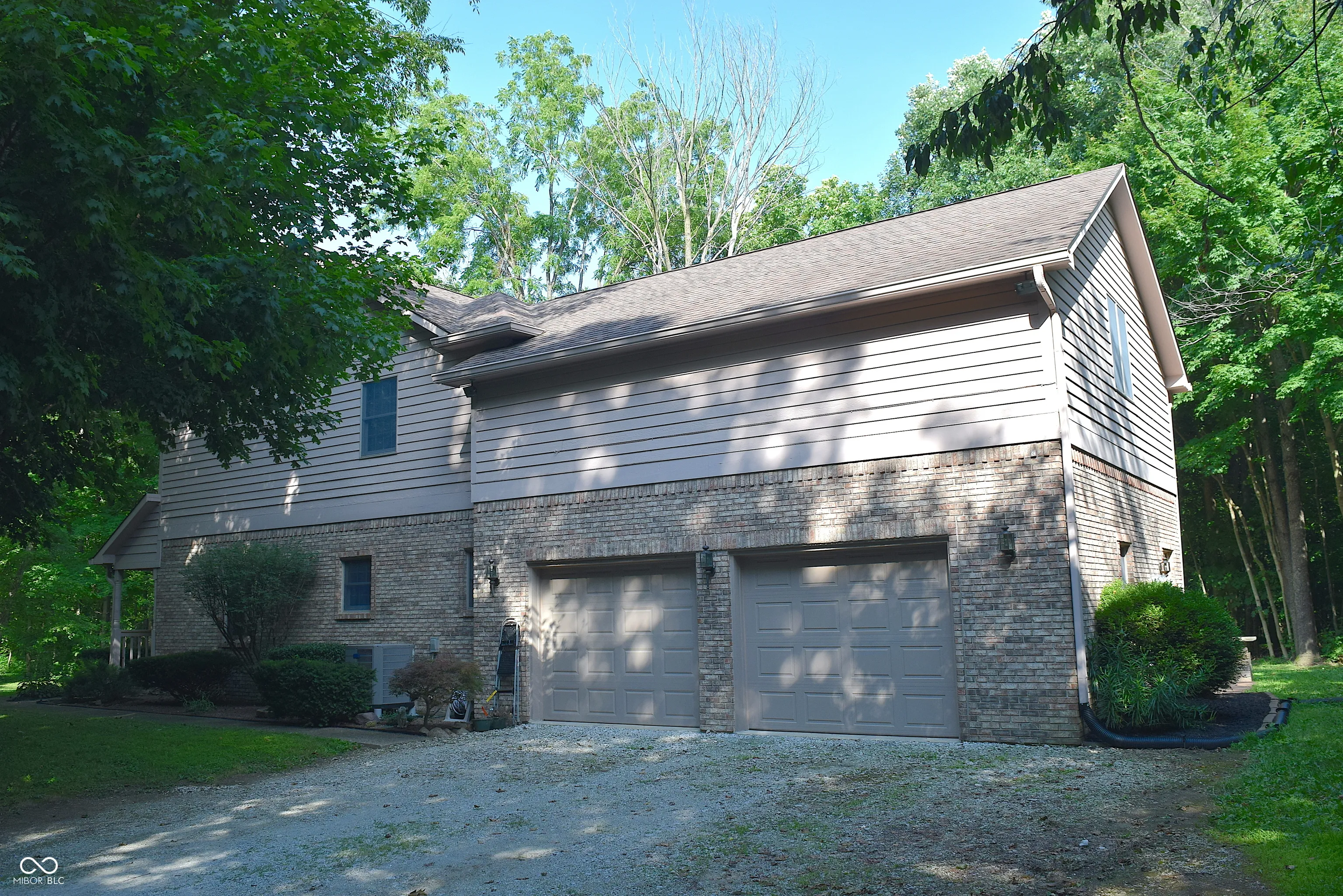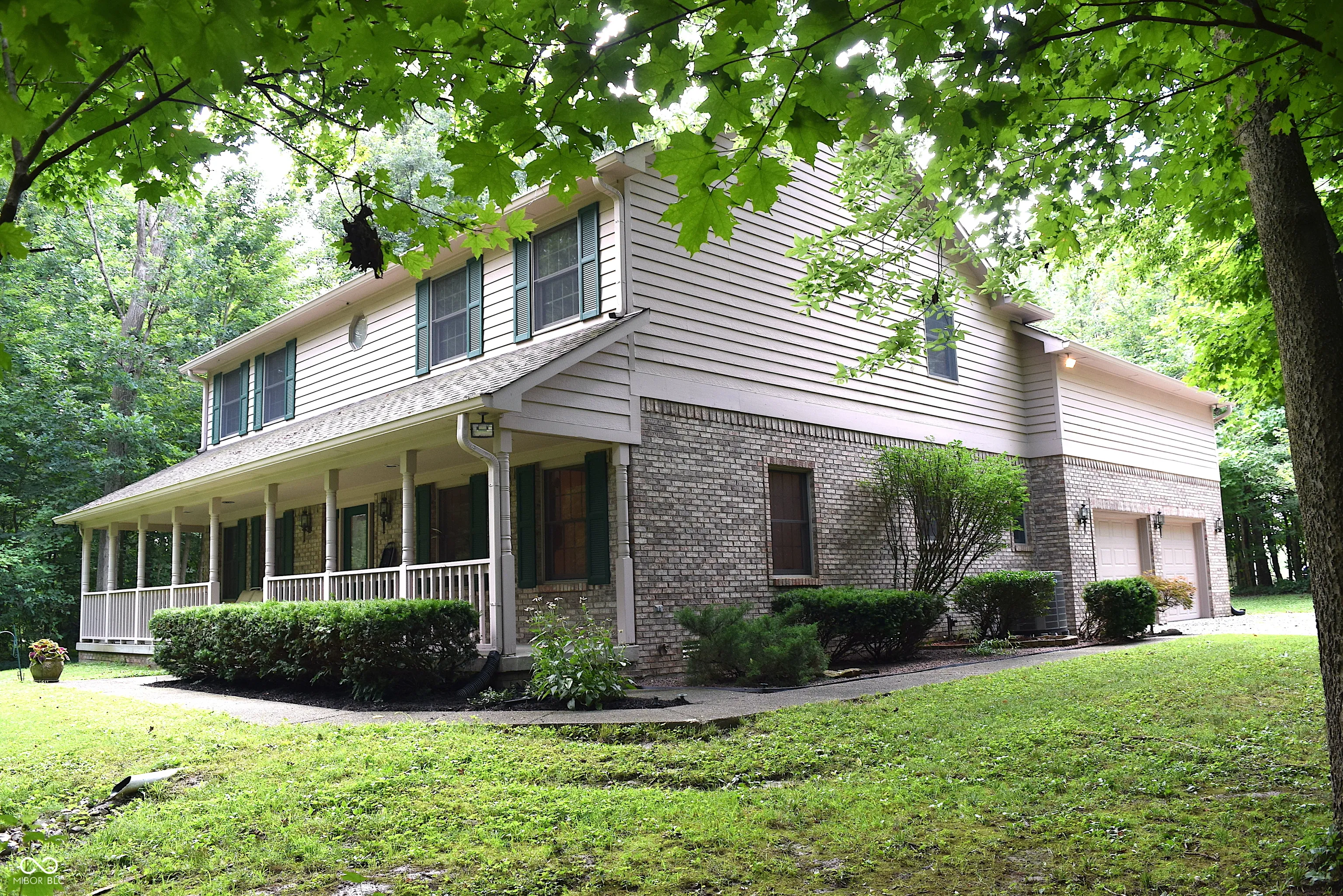 Enjoy the peace & solitude of the country yet so close to town & w/abundant wildlife in your own park like environment including deer, turkey, squirrels, & all kinds of birds. Enter property up the long driveway flanked by numerous trees & shrubs to the impressive brick & wood home w/a dreamy wrap around porch. Driveway extends farther back to a 24’x32′ pole barn w/water & electric for whatever you may need. Relax in the great outdoors overlooking your scenic & wooded back yard on the massive concrete 19k patio w/a landscaped border including stone bench seats w/lighting for evening ambiance. Flood lights surround home too. 2 huge open fields behind home & barn as well as a deep wooded area at the very back of the property encouraging the native Indiana fauna to come to the area. No unsightly overhead wires as electric & phone lines are under ground. Be welcomed into this custom built 3216 square foot 1 owner home by a two story entry. All new carpeting & all new neutral paint on all walls, inside all closets, & on all ceilings…even on the garage walls! Interior doors are all solid wood as you would expect to find in a custom home. Home has a front office & formal dining rm w/crown, tile floors & great views of the front yard & trees. Family rm overlooks the back yard & patio w/2 full walls of windows & is open to the spacious kitchen w/island breakfast bar, nook, & 2 pantries. Versatile rm off kitchen could be 2nd laundry or a mudroom since there is a huge laundry closet on the 2nd floor. Go up to the 2nd level where 4 bed rms, a sprawling flex rm, & laundry await you! The primary suite has a 17×13 bedroom, crown, ceil fan/light, 2 WIC’s, a bath w/tile floor, double vanity, & shower. All 4 beds have overhead lighting as well as ample & organized closets. The flex rm is an amazing space situated over the entire 698 sq ft garage of the home & has a closet, a laundry, & a dormer w/lift up bench. Super home & scenic slice of heaven ready & waiting for you!