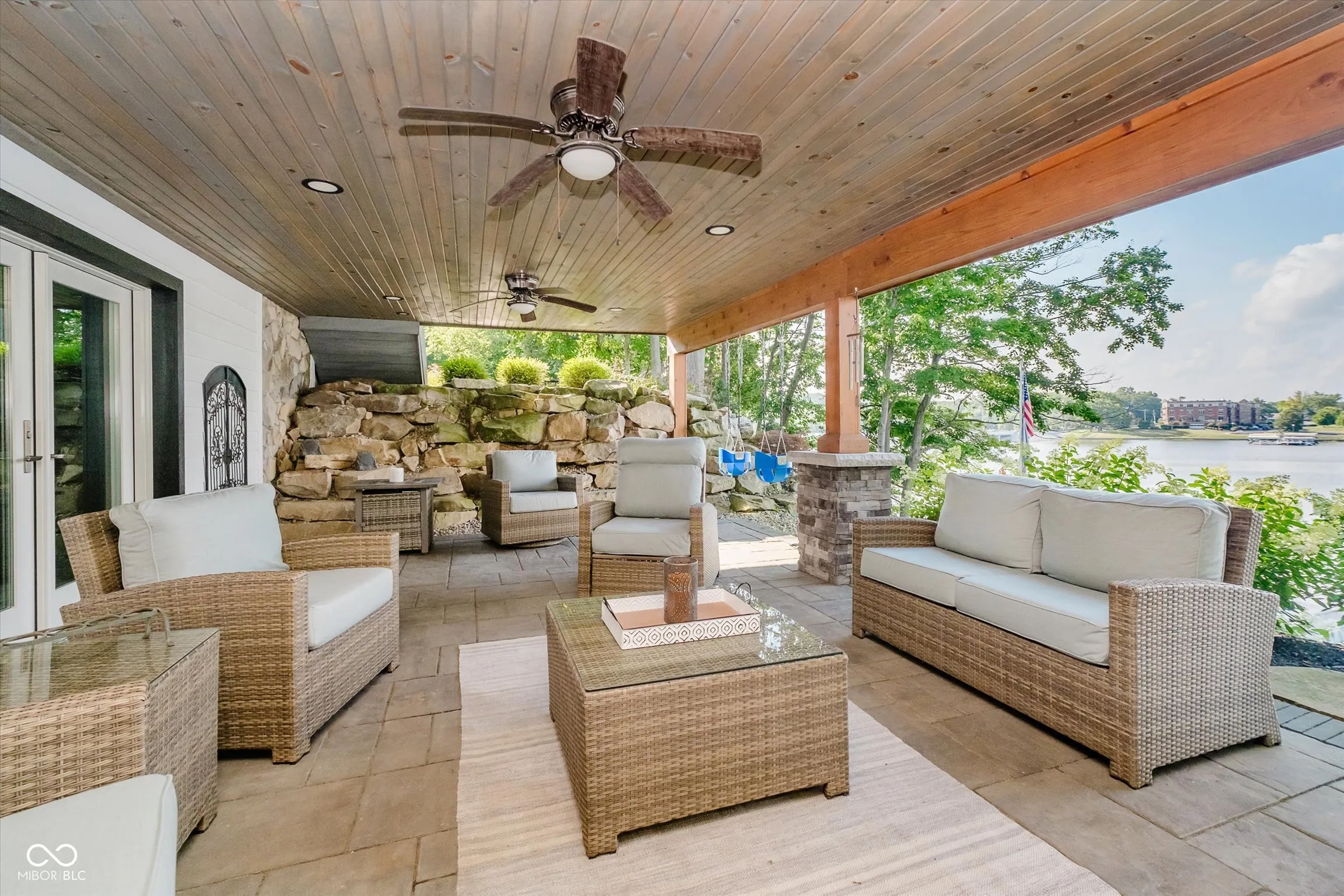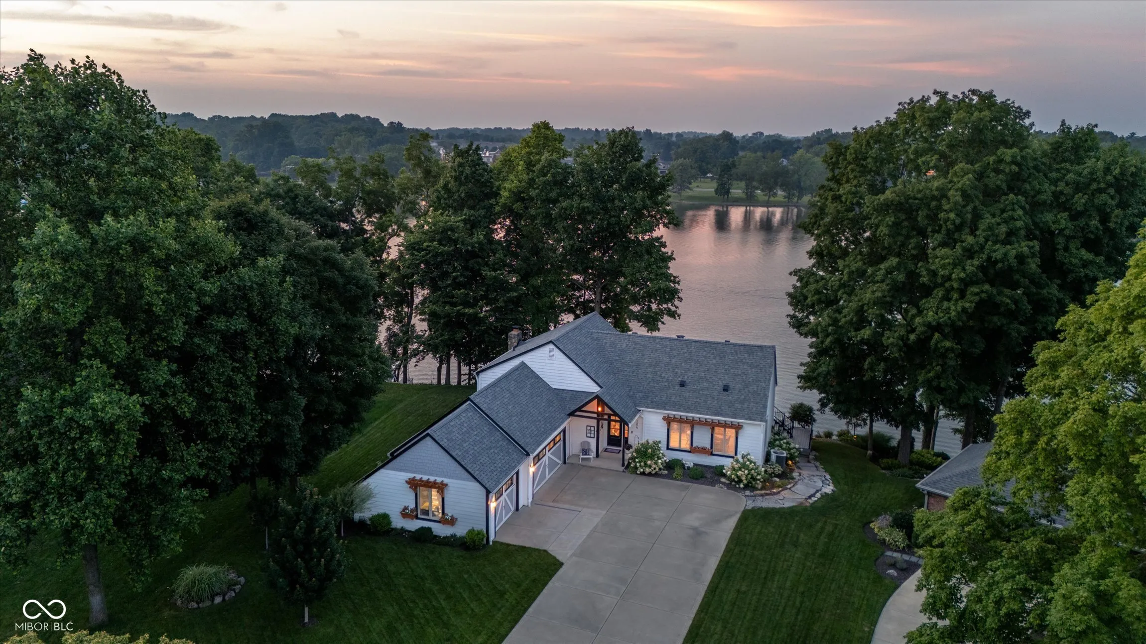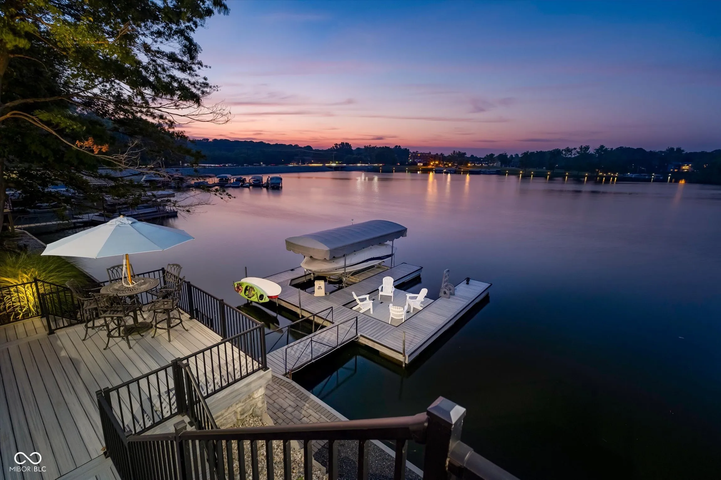 This lakefront home features 140 feet of shoreline and is located in the highly south after no-wake zone area of South Harbour. It is designed to entertain and welcome families and friends. Four unique outdoor entertainment areas to enjoy year-round views of the lake. Ideal for swimming, floating, kayaking, paddleboarding, fishing, and less dock wear from big waves and boat noise. The incredible outdoor living spaces feature professional landscaping, decorative boulders, and expansive multi-level Trex composite decking, creating a lakeside oasis perfect for every season. Gather around the cozy firepit or relax on one of the lakeside decks. The main floor consists of a large, combined Kitchen/Dining room and Living area. The updated kitchen shines with dual built-in ovens, warming drawer, quartz counters, a large, honed granite island, and unique backsplash windows that flood the space with natural light. The open dining and sitting area offer ample space that is perfect for large group gatherings. Two additional family rooms, both with walkouts to the lakeside deck, feature a wet bar, cozy fireplace and custom shiplap ceilings. The spacious primary suite offers a luxurious updated bath with heated floors and a gorgeous picture window above a stunning freestanding soaking tub. The entire home has new flooring – hardwoods on the main level and luxury vinyl plank on the lower level – plus generous closets and a large storage closet. New exterior doors on all levels, newer mechanicals, and a newer roof add peace of mind. Newly expanded 3 car garage is perfect for your lake toys! Enjoy your private lakeside dock with Trex decking and a 6,000-lb covered boat lift. South Harbour neighborhood amenities include a pool, lakeside clubhouse, tennis, pickleball, and award-winning Noblesville Schools, with Hinkle Creek Elementary right in the neighborhood!
