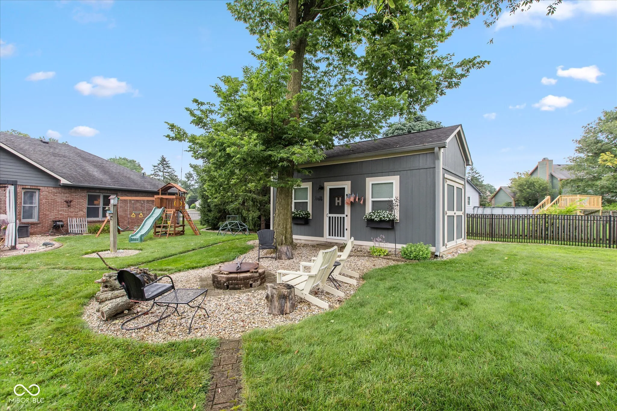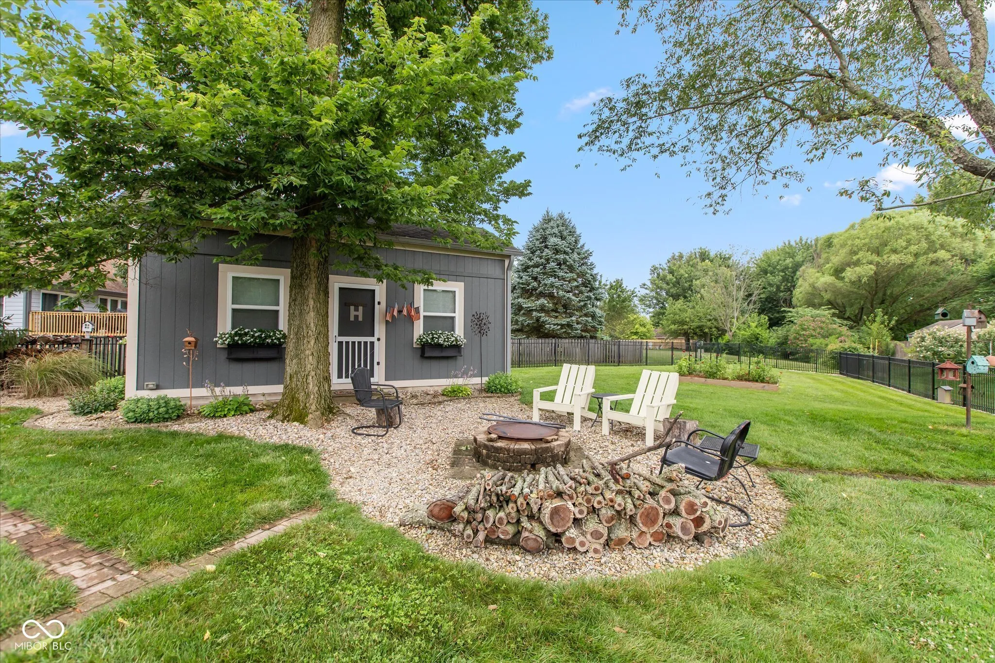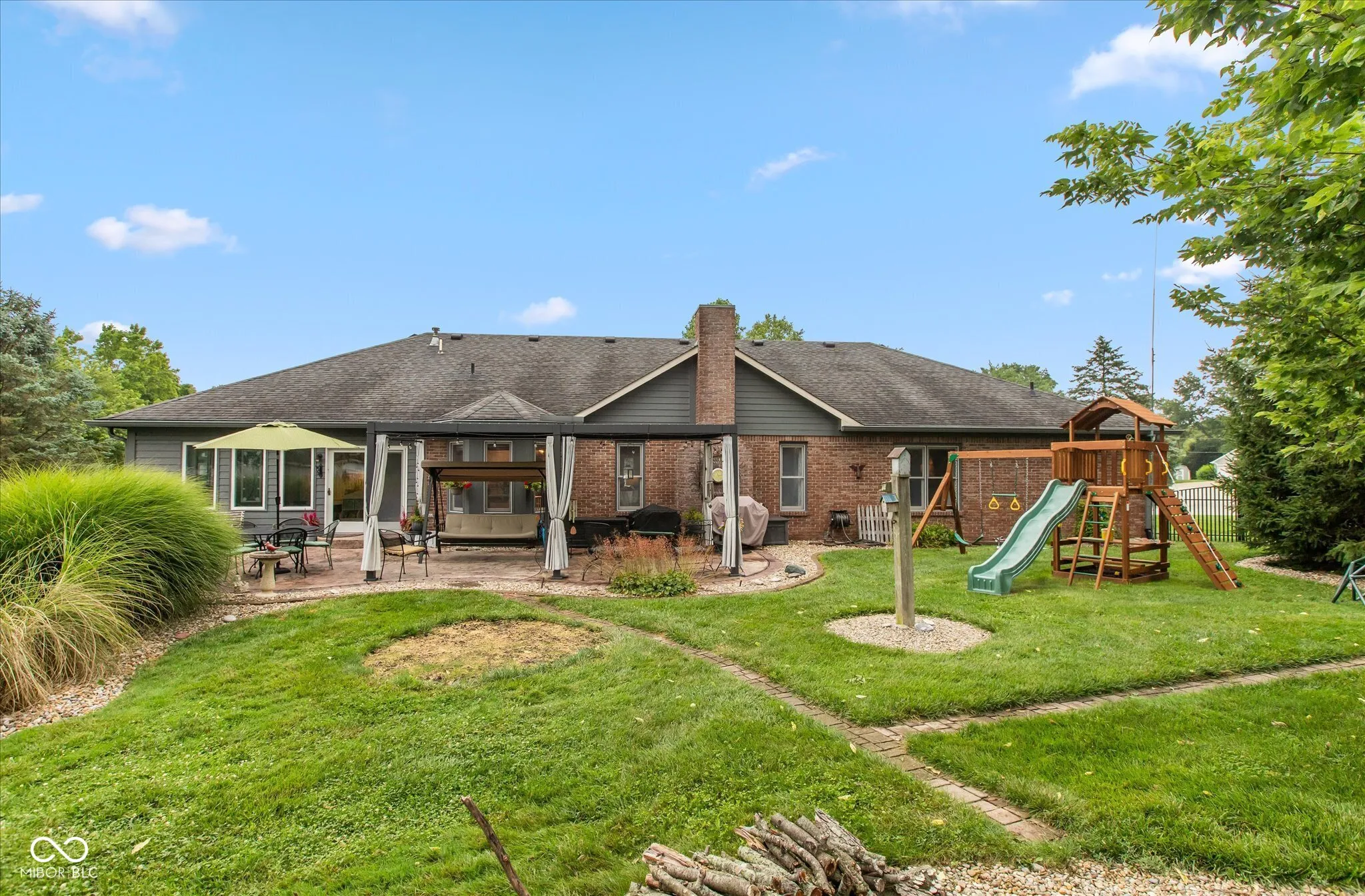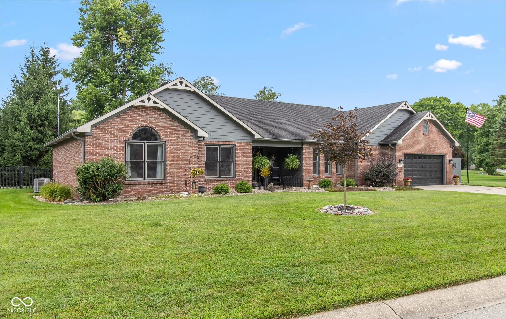 Welcome home to this custom -built ranch. Attached 2 car, extended length garage has a new insulated overhead door, brand-new pull-down attic stairs that take you to a large storage space. No need to keep trash cans in the garage as you will find custom fencing to hide those bins on the side of the garage. Step up to the covered porch which enters into the open concept floor plan. You will find a large Great Room with 14′ cathedral ceilings, renovated gas fireplace including new Hearth and brick surround. Adjoining the room is an updated kitchen, showcasing a 9×5 Quartz top island that has ample pull out storage for all your baking and cooking needs and can seat up to eight. The white subway tile accents the black stainless appliances. Walk into the newly updated Laundry Room with custom walk-in pantry as well as decorative table and shelving. Washer and dryer come with pedestals and overflow refrigerator stays with the room. You will enjoy a large four season room, banked in windows. This addition can be used as a playroom, office or additional family room. Walking through the sliders you will find a beautifully landscaped, fully fenced, backyard which includes firepit, Adirondack chairs and 2 storage buildings. The custom built 12×24 storage shed/work shop is nestled next to a smaller storage shed for overflow usage. Enjoy the shade under the 10×20 louvered pergola on the oversized stamped patio. The pergola comes with tie back sun shade drapes. When you are ready to retire you will find three carpeted bedrooms. Primary has a massive walk-in closet for all your personal storage. Children will attend Avon Community Schools, which are rated and known for academic excellence. NO HOA! Epoxy Floor in garage. Garage also has a utility sink.
