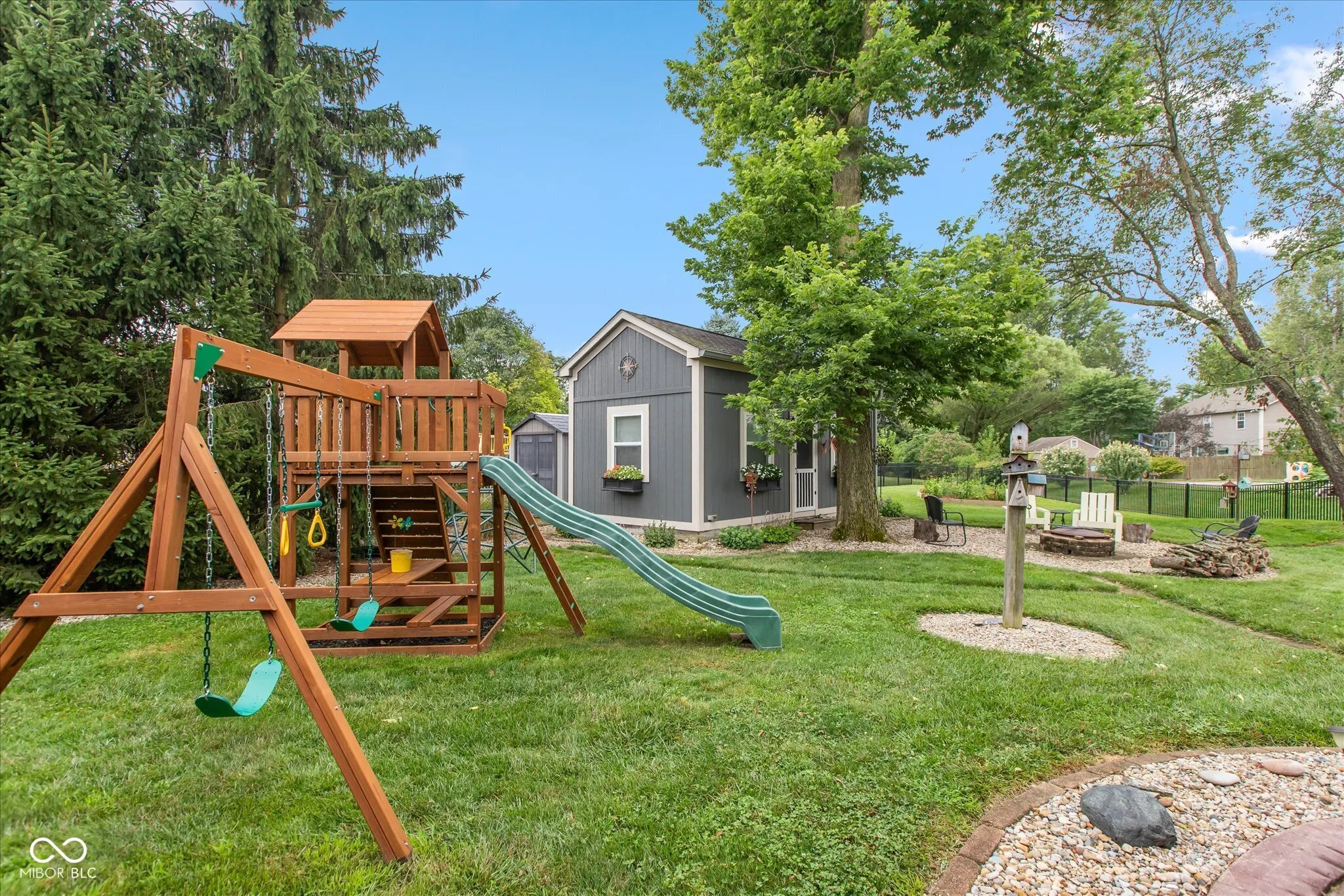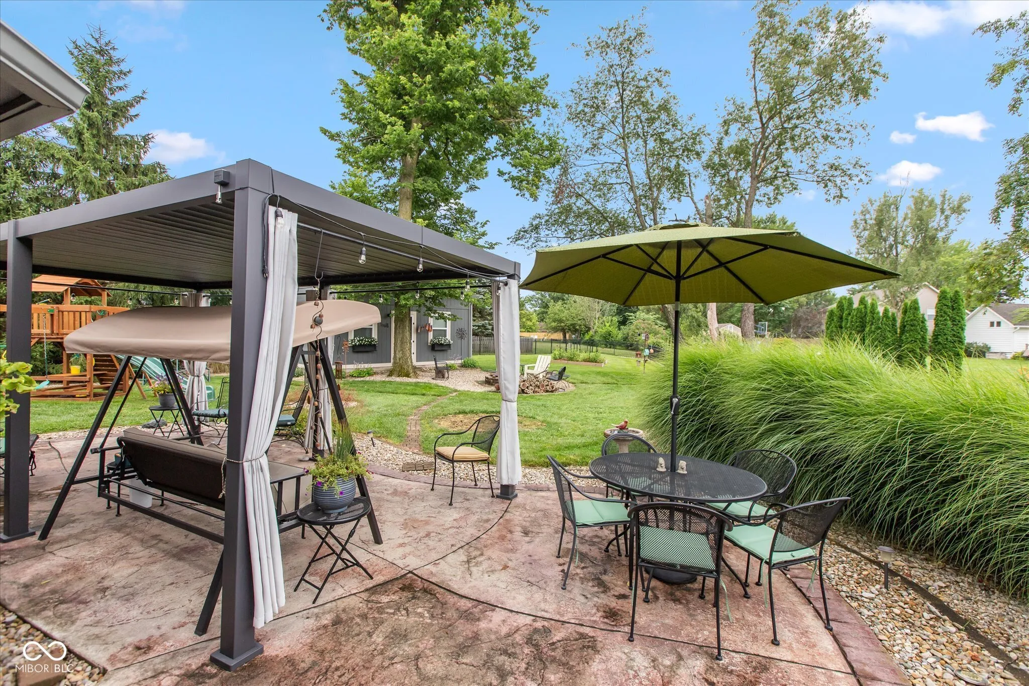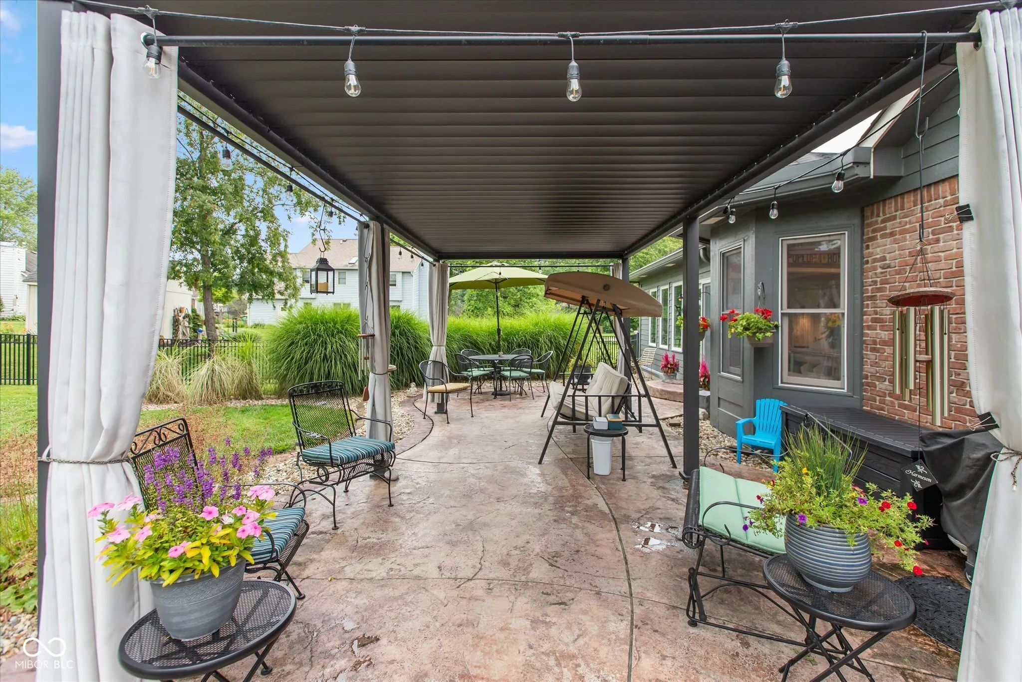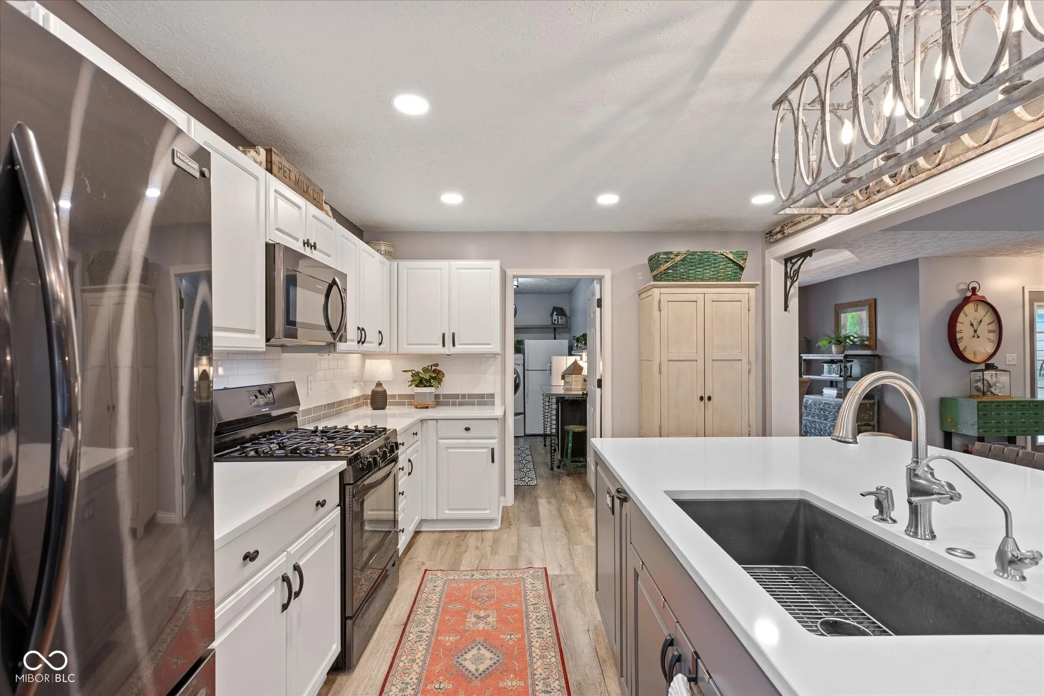 Welcome home to this custom -built ranch. Attached 2 car, extended length garage has a new insulated overhead door, brand-new pull-down attic stairs that take you to a large storage space. No need to keep trash cans in the garage as you will find custom fencing to hide those bins on the side of the garage. Step up to the covered porch which enters into the open concept floor plan. You will find a large Great Room with 14′ cathedral ceilings, renovated gas fireplace including new Hearth and brick surround. Adjoining the room is an updated kitchen, showcasing a 9×5 Quartz top island that has ample pull out storage for all your baking and cooking needs and can seat up to eight. The white subway tile accents the black stainless appliances. Walk into the newly updated Laundry Room with custom walk-in pantry as well as decorative table and shelving. Washer and dryer come with pedestals and overflow refrigerator stays with the room. You will enjoy a large four season room, banked in windows. This addition can be used as a playroom, office or additional family room. Walking through the sliders you will find a beautifully landscaped, fully fenced, backyard which includes firepit, Adirondack chairs and 2 storage buildings. The custom built 12×24 storage shed/work shop is nestled next to a smaller storage shed for overflow usage. Enjoy the shade under the 10×20 louvered pergola on the oversized stamped patio. The pergola comes with tie back sun shade drapes. When you are ready to retire you will find three carpeted bedrooms. Primary has a massive walk-in closet for all your personal storage. Children will attend Avon Community Schools, which are rated and known for academic excellence. NO HOA! Epoxy Floor in garage. Garage also has a utility sink.