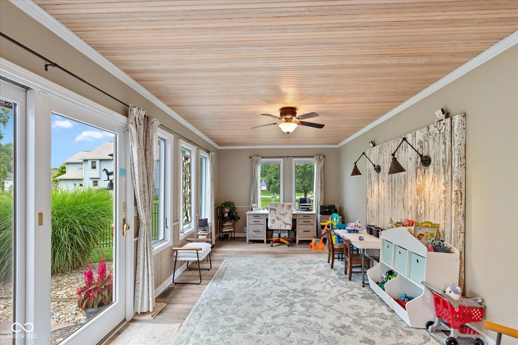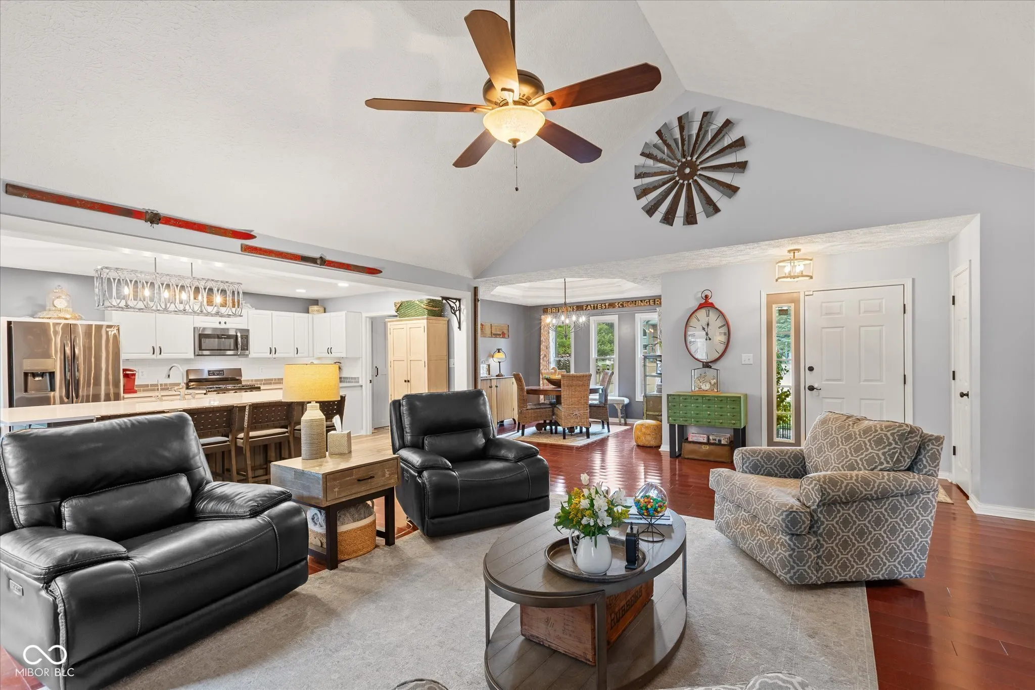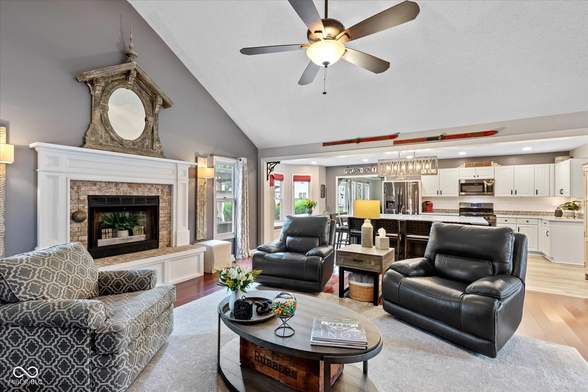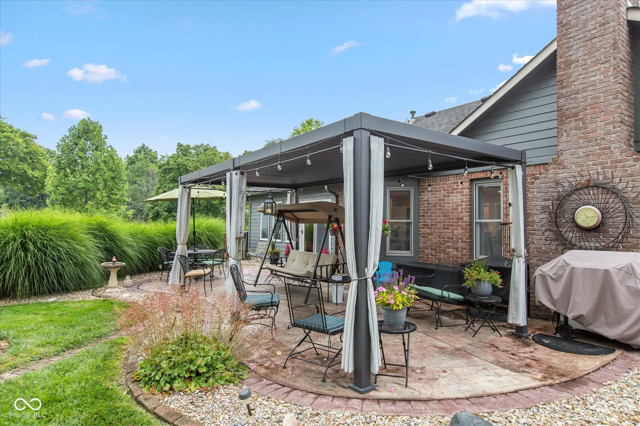 Welcome home to this custom -built ranch. Attached 2 car, extended length garage has a new insulated overhead door, brand-new pull-down attic stairs that take you to a large storage space. No need to keep trash cans in the garage as you will find custom fencing to hide those bins on the side of the garage. Step up to the covered porch which enters into the open concept floor plan. You will find a large Great Room with 14′ cathedral ceilings, renovated gas fireplace including new Hearth and brick surround. Adjoining the room is an updated kitchen, showcasing a 9×5 Quartz top island that has ample pull out storage for all your baking and cooking needs and can seat up to eight. The white subway tile accents the black stainless appliances. Walk into the newly updated Laundry Room with custom walk-in pantry as well as decorative table and shelving. Washer and dryer come with pedestals and overflow refrigerator stays with the room. You will enjoy a large four season room, banked in windows. This addition can be used as a playroom, office or additional family room. Walking through the sliders you will find a beautifully landscaped, fully fenced, backyard which includes firepit, Adirondack chairs and 2 storage buildings. The custom built 12×24 storage shed/work shop is nestled next to a smaller storage shed for overflow usage. Enjoy the shade under the 10×20 louvered pergola on the oversized stamped patio. The pergola comes with tie back sun shade drapes. When you are ready to retire you will find three carpeted bedrooms. Primary has a massive walk-in closet for all your personal storage. Children will attend Avon Community Schools, which are rated and known for academic excellence. NO HOA! Epoxy Floor in garage. Garage also has a utility sink.