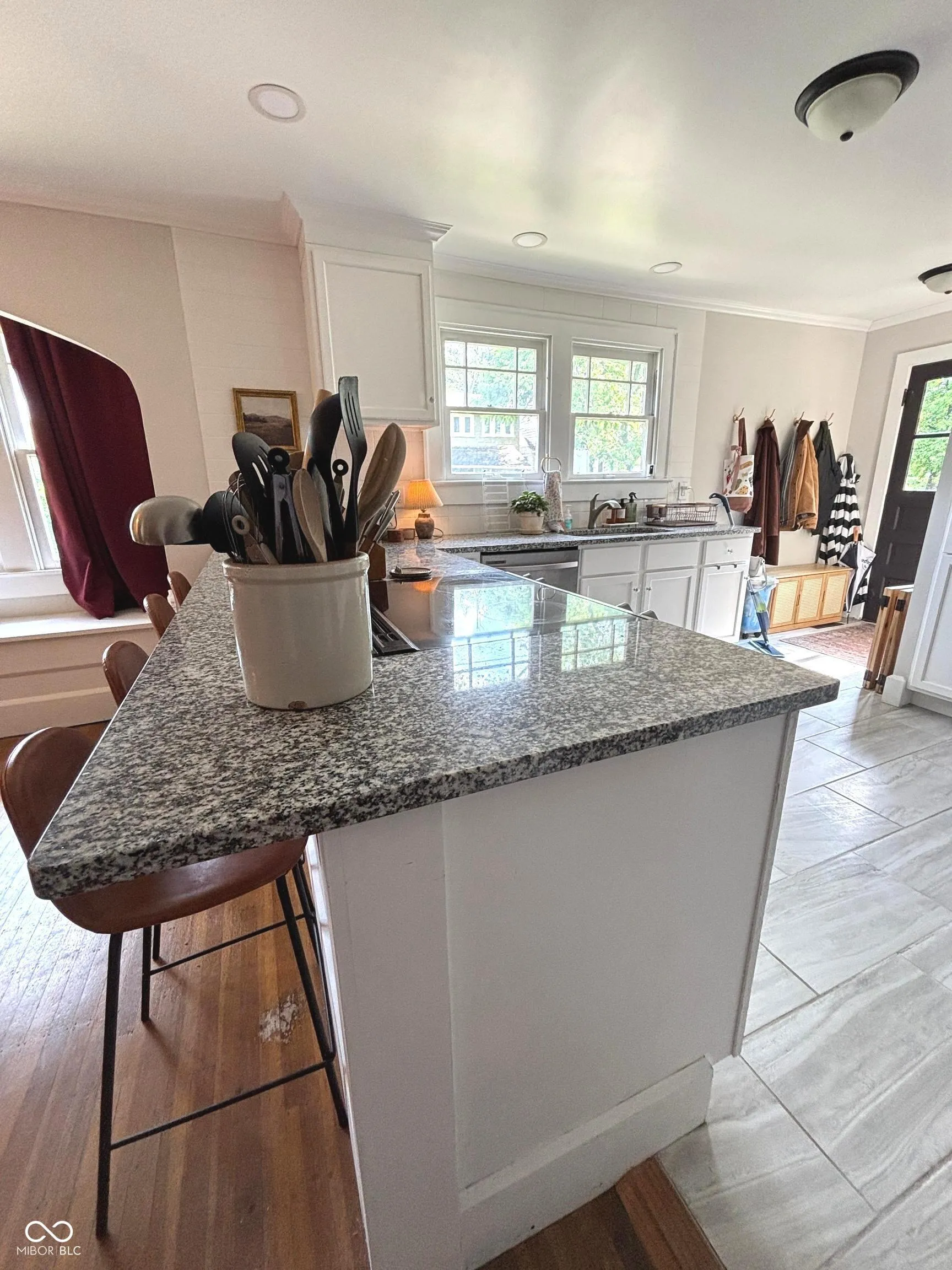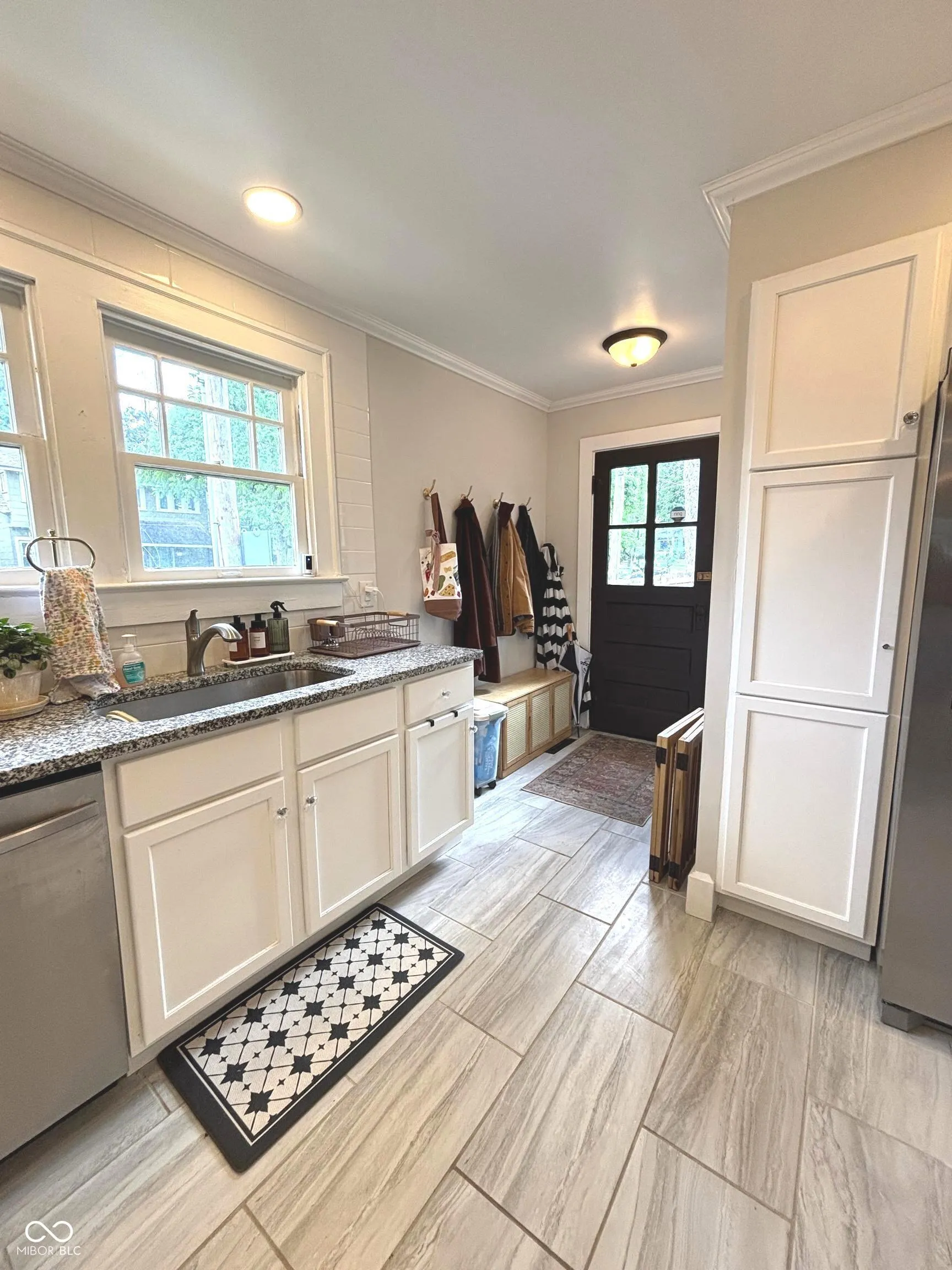 Cozy charm meets modern comfort in this historic Irvington bungalow! You are welcomed in through the enclosed front porch offering 3-season outdoor living. Beautiful original built-ins flank the decorative fireplace in the living room. The kitchen has been totally updated with new cabinets, granite countertops, subway tile backsplash, stainless steel appliances, tile floors, 3 pantries and some of the original cabinets with vintage glass fronts. Original hardwood floors throughout have been carefully refinished. Convenient bathroom between 2 of the bedrooms. The third bedroom is off the living room; it has glass French doors and can double as a home office. Attic pulldown stairs in hallway gives convenient access to a huge attic storage that could be finished. The rebuilt back stairway allows more headroom and a better rise for moving things up and down than the original. Washer and dryer are in the waterproofed basement. There are a couple of spaces downstairs that can be used for hang-outs, gaming, music, etc. Several daylight windows keep the basement feeling bright and open. Updated electrical and plumbing, geothermal heat and a/c. 100 sq ft deck and privacy fenced backyard are off the kitchen for more outdoor living. 1-car garage available for parking and storage. Walk, bike, or drive to your favorite Irvington hot spots. Convenient access to downtown and highways. We welcome you to come take a look. You will not be disappointed!