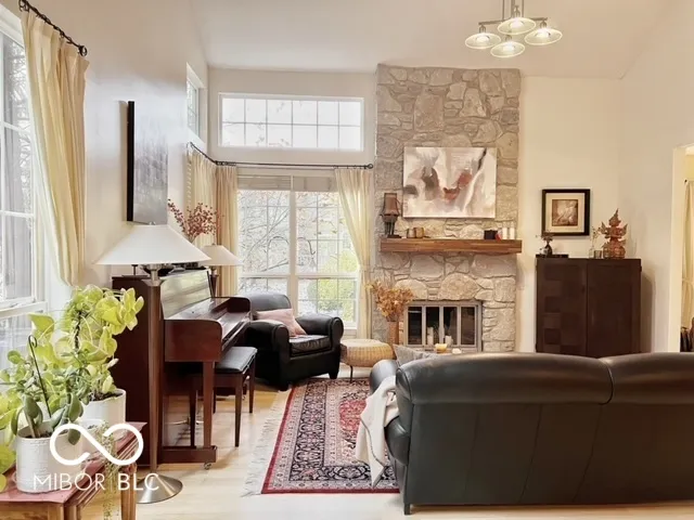 This condo will become your nature retreat! Gorgeous pond and garden views. Chic, stylish, and lovely home, well maintained. Cathedral ceiling, large windows letting in natural light, open floor plan. Spacious Primary bedroom suite with closets galore and window seat. Open concept main floor with kitchen, dining area, bonus room and beautifully decorated 1/2 bath. Multiple work/study options. Bonus room for exercise, office, reading room or could be converted to a third bedroom. Bonus room has a lovely view of the pond, as does the second bedroom upstairs. Two-car attached garage. Beautiful serene neighborhood in the immediate vicinity of Eagle Creek Reservoir and Nature Park. Friendly neighborhood. Newly updated community Pool. Close to 465 and the Indianapolis International Airport. Direct shot to downtown for shopping and entertainment. Care-free living in a cozy neighborhood with a beach vibe!