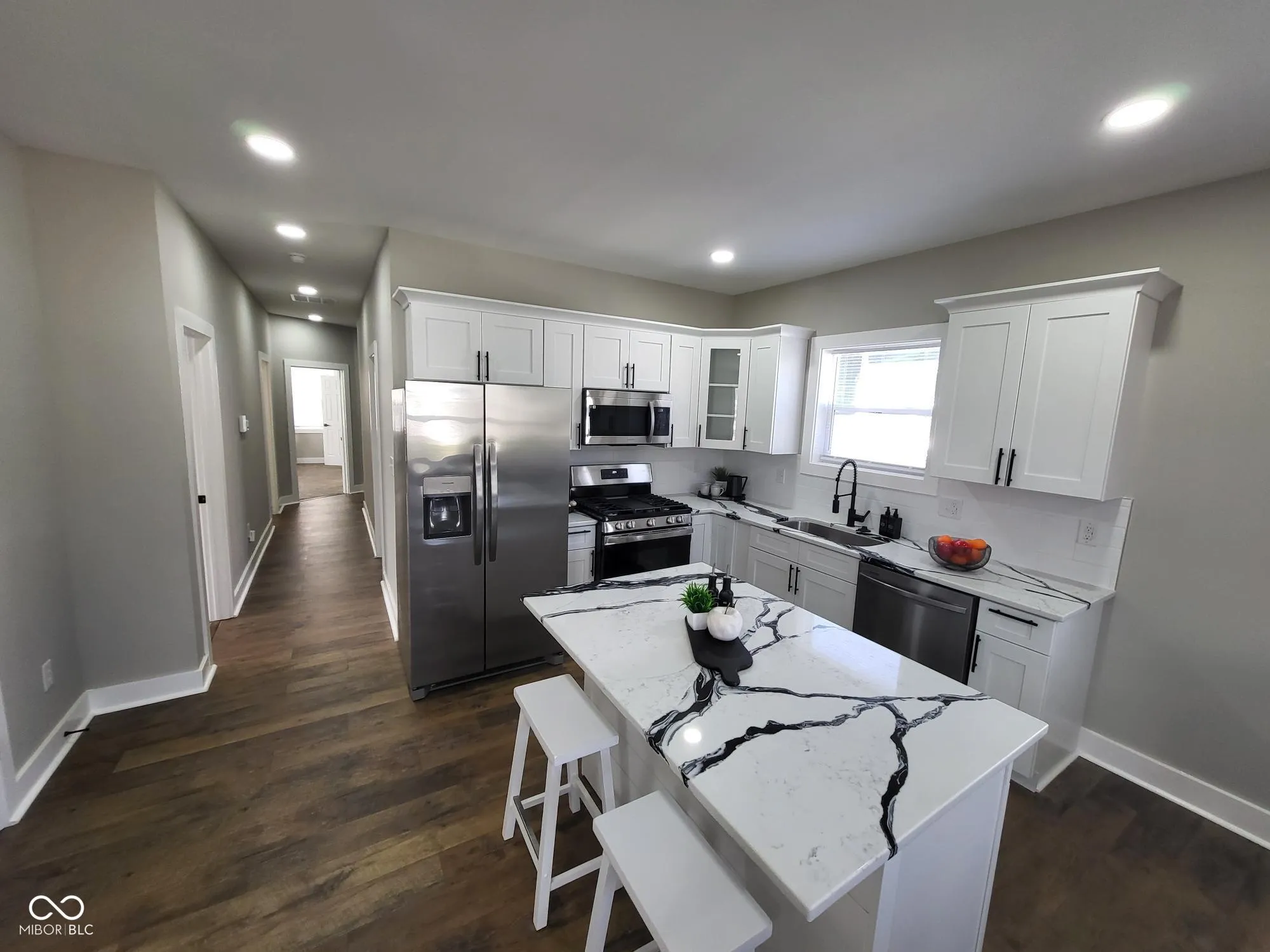 YOU MUST SEE THIS Stunning New Construction by Lucy Construction, nestled in the vibrant TD Layman neighborhood. This property features 3 spacious bedrooms and 2 full bathrooms, meticulously designed to offer both comfort and style. The home boasts a thoughtful layout with high-end finishes throughout, including rich hardwood floors, custom marble tile, quartz countertops and stylish fixtures. The main level features an inviting open-concept living area that seamlessly blends with a modern kitchen, perfect for both everyday living and entertaining. A Large Primary Bedroom Ensuite is located at the rear of the home for privacy. The Primary Bath offers granite countertops, double vanity sinks, a custom tile shower and a large walk-in closet. Each bedroom is perfectly sized, providing ample space, while the bathrooms are equipped with contemporary amenities for your convenience. The property includes a brand new two-car detached garage, and additional off-street parking, offering practicality and ease of access. The fenced-in backyard is a private oasis, ideal for relaxing or hosting gatherings with family and friends. Seller is providing a Buyer’s Extended Home Warranty for added security. Location is key, and this home is perfectly situated close to an array of local attractions. Enjoy the convenience of Downtown Indy’s restaurants, shopping and nightlife. Brookside Park is nearby w/Beautiful Paths, Trails and Water Park, perfect for the active lifestyle! This home seamlessly combines modern luxury with a prime location ALL FOR UNDER 300K, making it the perfect choice for your next move. Don’t miss the opportunity to experience all that this exceptional property has to offer!