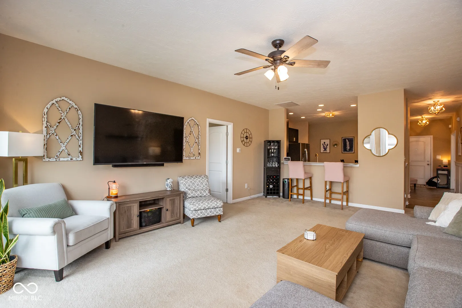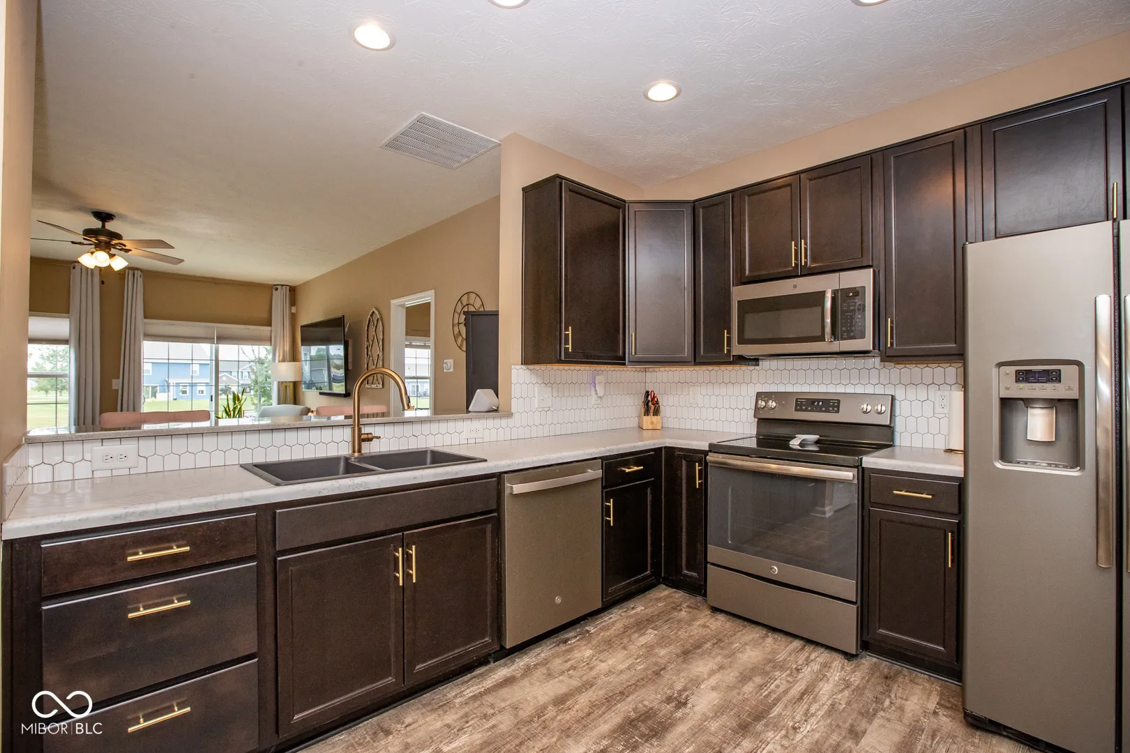 Welcome to 204 Sawdust Trail in Greenfield-a beautifully maintained, one-owner ranch home built in 2018. This 3-bedroom, 2-bath residence offers comfortable single-level living with thoughtful upgrades throughout. In addition to the main living spaces, you’ll find a dedicated den-perfect for remote work, hobbies, or a quiet retreat. The spacious kitchen is a standout, featuring a granite breakfast bar, stylish backsplash, modern slate-finish appliances, gold faucet, upgraded sink, and under-cabinet lighting. Recessed can lighting adds a warm glow, while LVP flooring in the kitchen and entryway offers both durability and modern appeal. The primary suite includes a private en suite bathroom with a stone-top vanity, and the hall bath has been enhanced with its own backsplash for added style. Enjoy ceiling fans throughout the home, honeycomb blinds in the living room, and serene pond views from both the living room and the custom-designed concrete back patio with built-in seating wall-perfect for relaxing or entertaining. Additional features include a 2-car garage with finished walls and ample storage shelves. This home is move-in ready and filled with both charm and function!