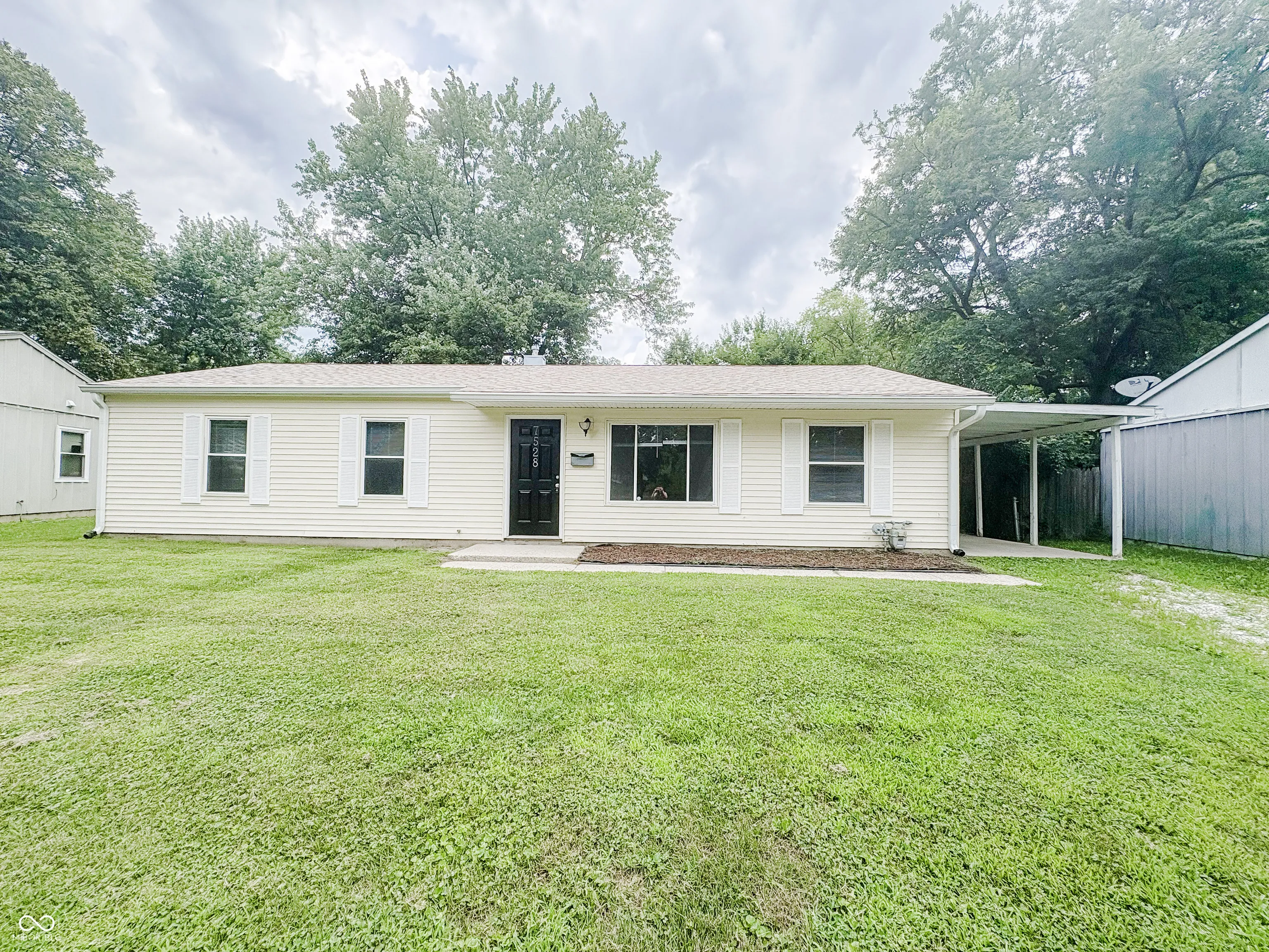 Welcome to this 3 bed 1.5 bath ranch in Indianapolis. Starting on the exterior you have a spacious lot, car port, mature landscaping, and gravel driveway. Heading inside you are welcomed by the the living room with large open windows. To the right that takes you into the kitchen and dining room area. The kitchen features plenty of cabinets and a gas stove. Off the kitchen is the laundry room. Heading down the hall from the living room are the three bedrooms and full bathroom. Full bathroom features tiled shower. Primary bedroom has attached jack and jill 1/2 bath. Close to local shopping and eating! No HOA!