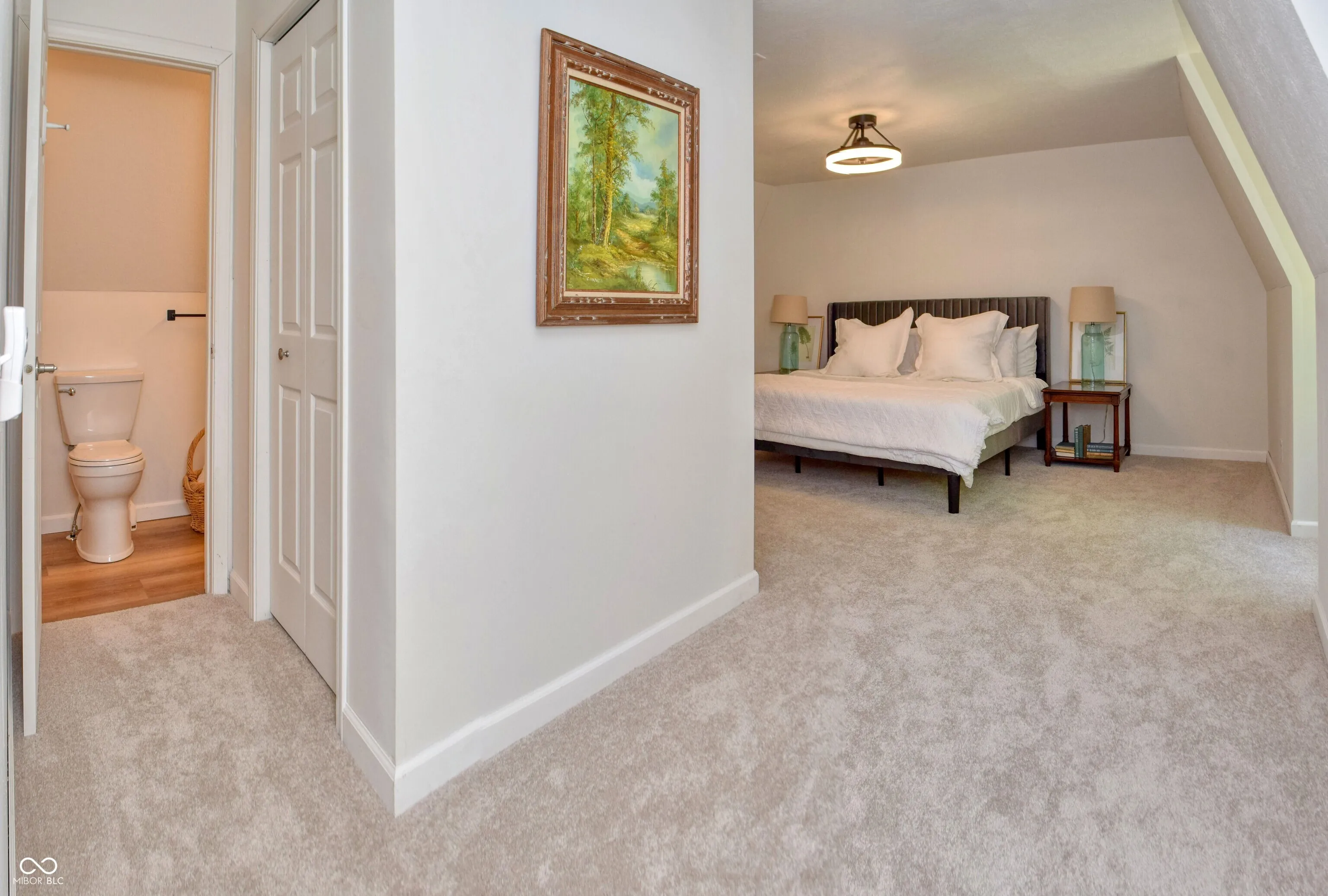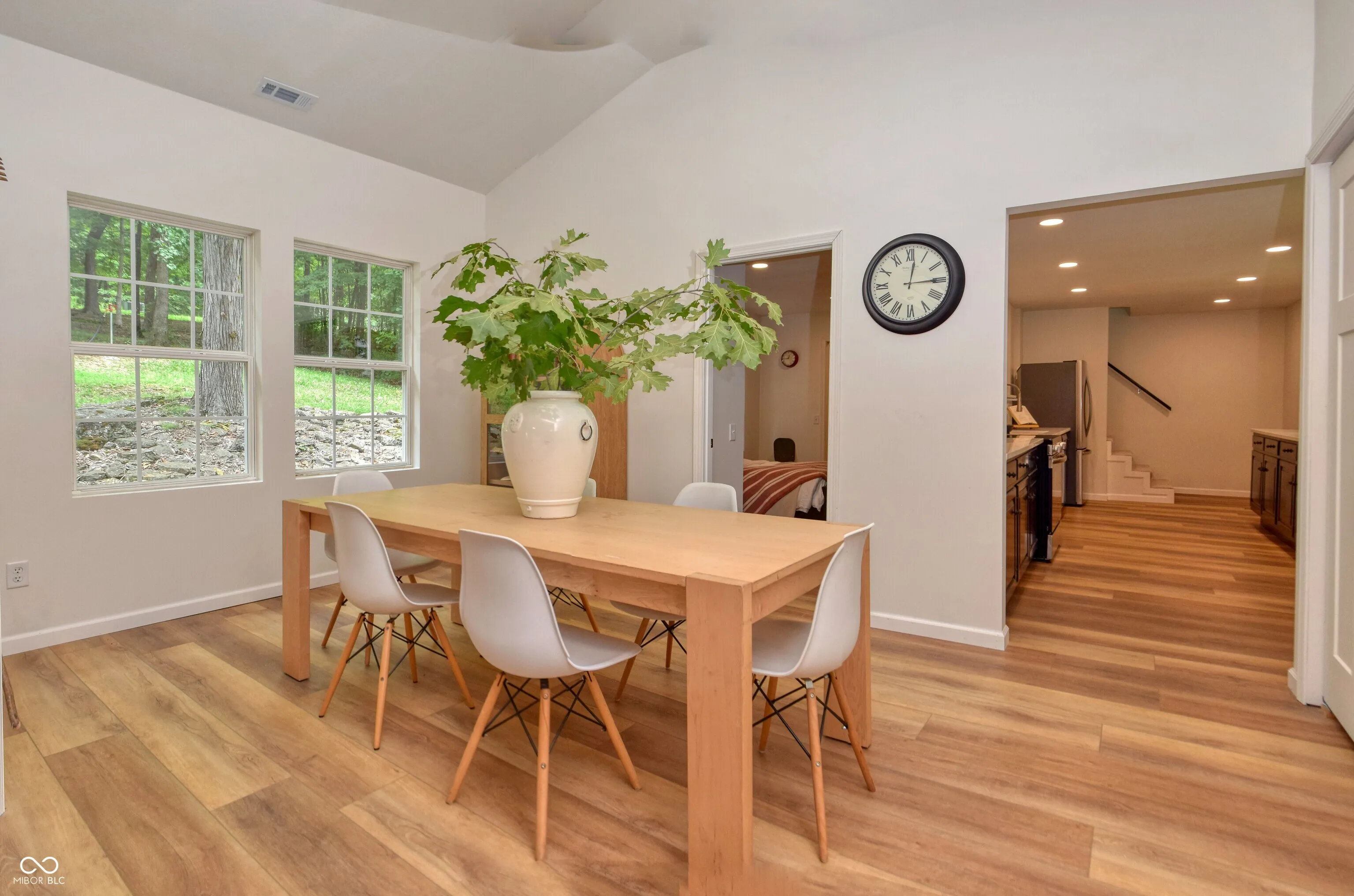 APPRAISED at $330,000! Who doesn’t dream of owning a lake cabin in the woods? Nestled at the end of a long gravel driveway sits this rural, yet modern escape from it all! Enter the living room and you’re greeted by log walls that create a character-filled space that is both inviting and unique. The heart of the home: the vaulted dining space, flooded with natural light and views of your wooded property; plus an in ceiling speaker system to play your favorite music while you cook dinner or entertain. The updated kitchen boasts Amish made cabinets, all new SS appliances, and quartz countertops/backsplash providing both beauty and functionality. The main level bedroom has its own bathroom w a marble tiled shower. Upstairs you’ll find your own private master ensuite with updated bathroom plus double closets. Step outside onto your patio/outdoor dining area, providing the perfect space to dine alfresco and enjoy the woods view. The lofted 4 car garage supplies ample practical storage and heated work space for all your projects. Secluded, updated, lakefront property, on 3.5 acres, just 20 minutes from Bloomington…this residence is truly a unique find!