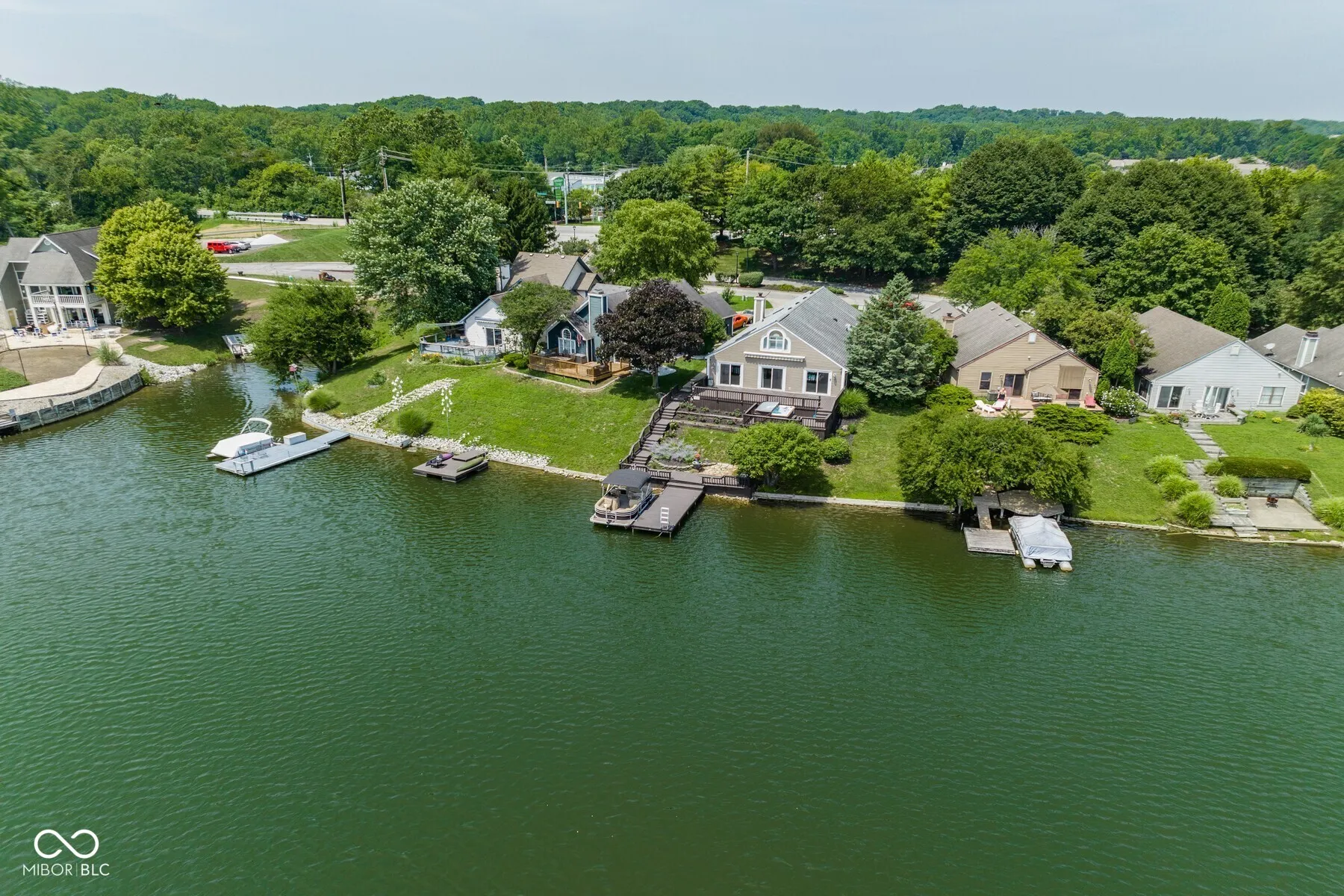 Vacation at home! Stunning lake front on Indy’s west side with easy access to major highways, airport, shopping & downtown Indy. Worry free living on a freshwater lake that provides outstanding sunrises and sunsets from your private multilevel dock which features a hot tub and spacious entertainment area. Fish, swim & pontoon, canoe, kayak from your dock. Also note the lake entertainment island actually useable by residents with docking area. Home is freshly updated and features granite kitchen counters, stainless appliances, high ceilings, automated skylights, loft office or bonus room, sunroom & 2 car attached garage. Current large third bedroom can easily be used as a rec room. Full lake views plus deck access from Kit/Sun Rm, & 2nd & 3rd bedrooms.