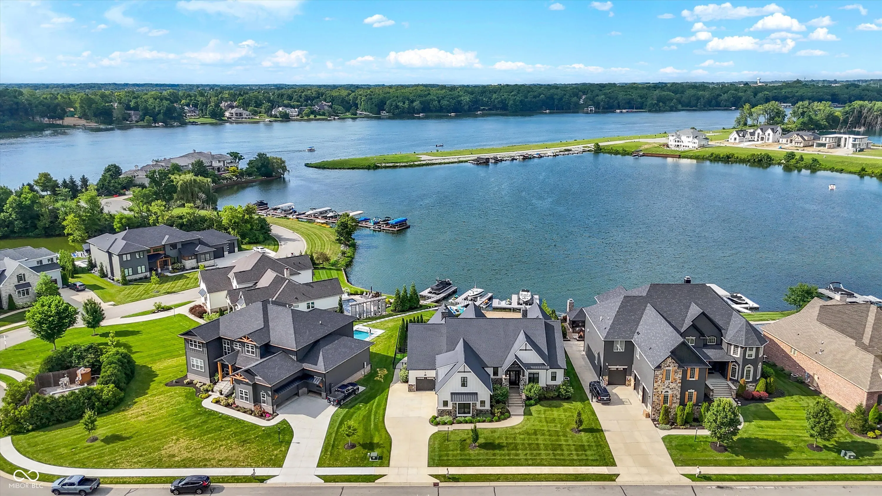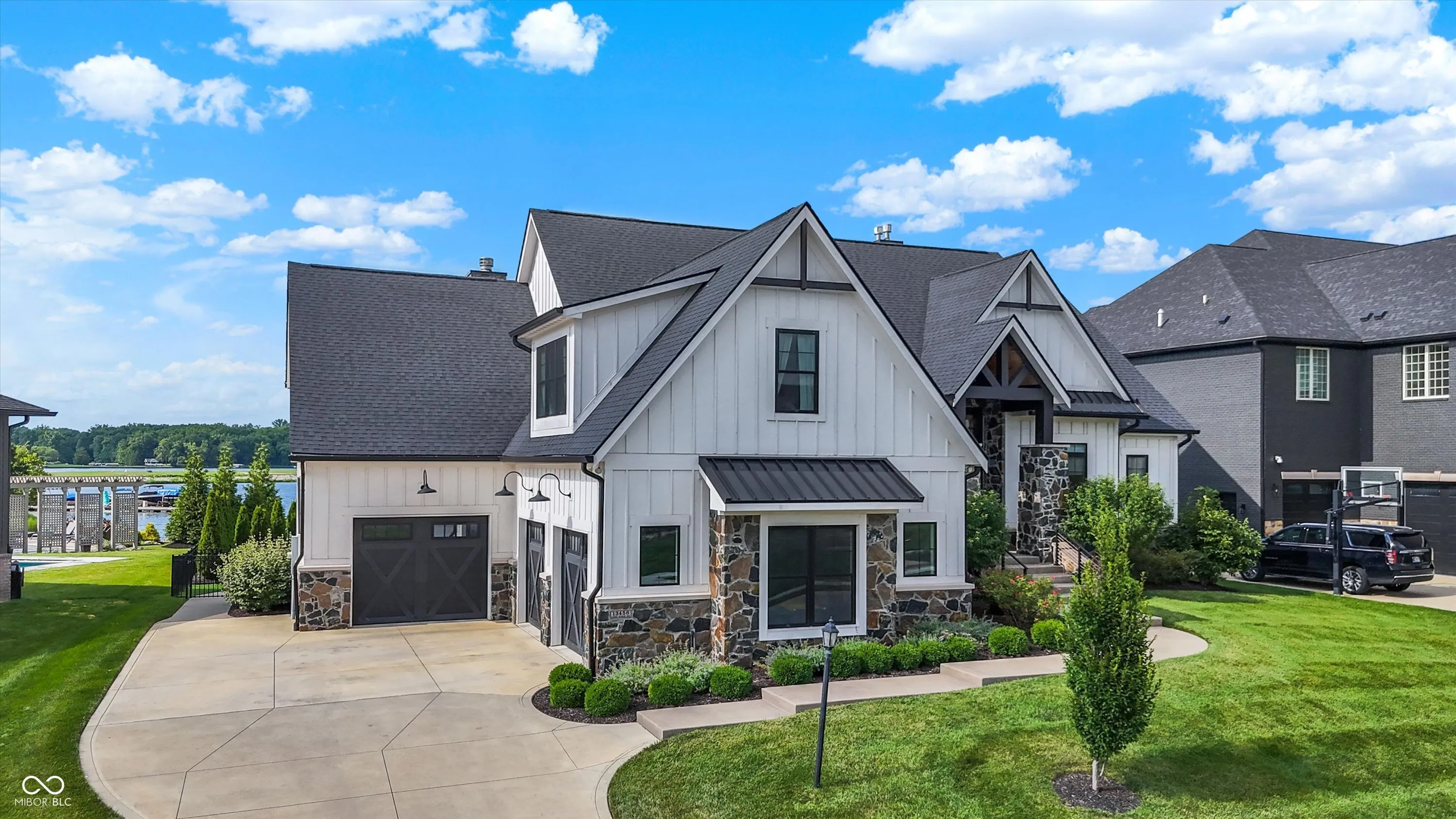 The Pinnacle of Waterfront Living on Geist. Where architectural artistry meets everyday luxury-this custom masterpiece redefines lakeside living with bold design, refined craftsmanship, and sweeping water views from nearly every room. Light oak wire-brushed hardwoods, rustic beams, cable railings, and statement windows set the tone. The chef’s kitchen-with walk-in pantry-flows effortlessly to a covered porch featuring a built-in grill, fireplace, TV, and automated sunscreen. The main-level primary suite is a private retreat. Downstairs, a walk-out basement boasts a full bar, rec room, fitness space, guest suite, and screened porch. Outside, enjoy a smart pergola, heated outdoor shower, turf dog run, large balcony doors, and a waterfront sand patio with firepit-designed for unforgettable Geist nights. Private dock with 5,000-lb lift + dual jet ski ports. Oversized 28-ft deep garage bay for your boat. This isn’t just a home-it’s an experience.