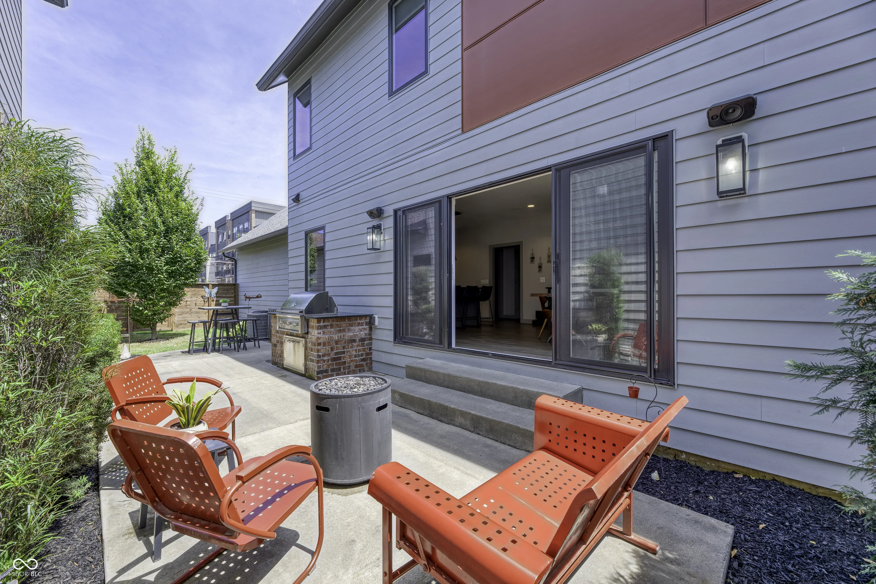 Experience the allure of South Village of Nickel Plate, a vibrant community located just one block from Downtown Fishers and the dynamic Nickel Plate District, which boasts an ever-growing array of Restaurants, Shops, Arts, and Entertainment, as well as a Saturday Morning Farmers market during warmer months. The Nickel Plate Trail is steps from your Front Door, with the Cheeney Creek Trail also nearby. This home showcases a magnificent open-concept design, perfect for entertaining. The Great Room is anchored by a warm gas Fireplace, and oversized Slider Doors seamlessly connect the Kitchen and Dining area to a private side Patio, enhancing the Indoor-Outdoor lifestyle. The Kitchen features abundant Countertop and Cabinet space, a large Center Island, and an oversized, custom-designed Wall unit for additional storage and serving. The Patio is equipped with a built-in Grill, and the private side Yard is secured with six-foot Fences on both ends, each with a Gate allowing easy access front and rear. Retreat to the large Primary Suite, complete with a deluxe Bath, Tiled Walk-in Shower, dual Vanities, and a custom Walk-In Closet. The Basement already includes a finished third full Bathroom, leaving the rest of the space ready for your personal finishing touches. Additionally, the new Fishers Event Center and the many restaurants of the Fishers District Culinary District are just a five-minute drive away. This property truly offers the ideal combination of luxury, comfort, and unparalleled location.
