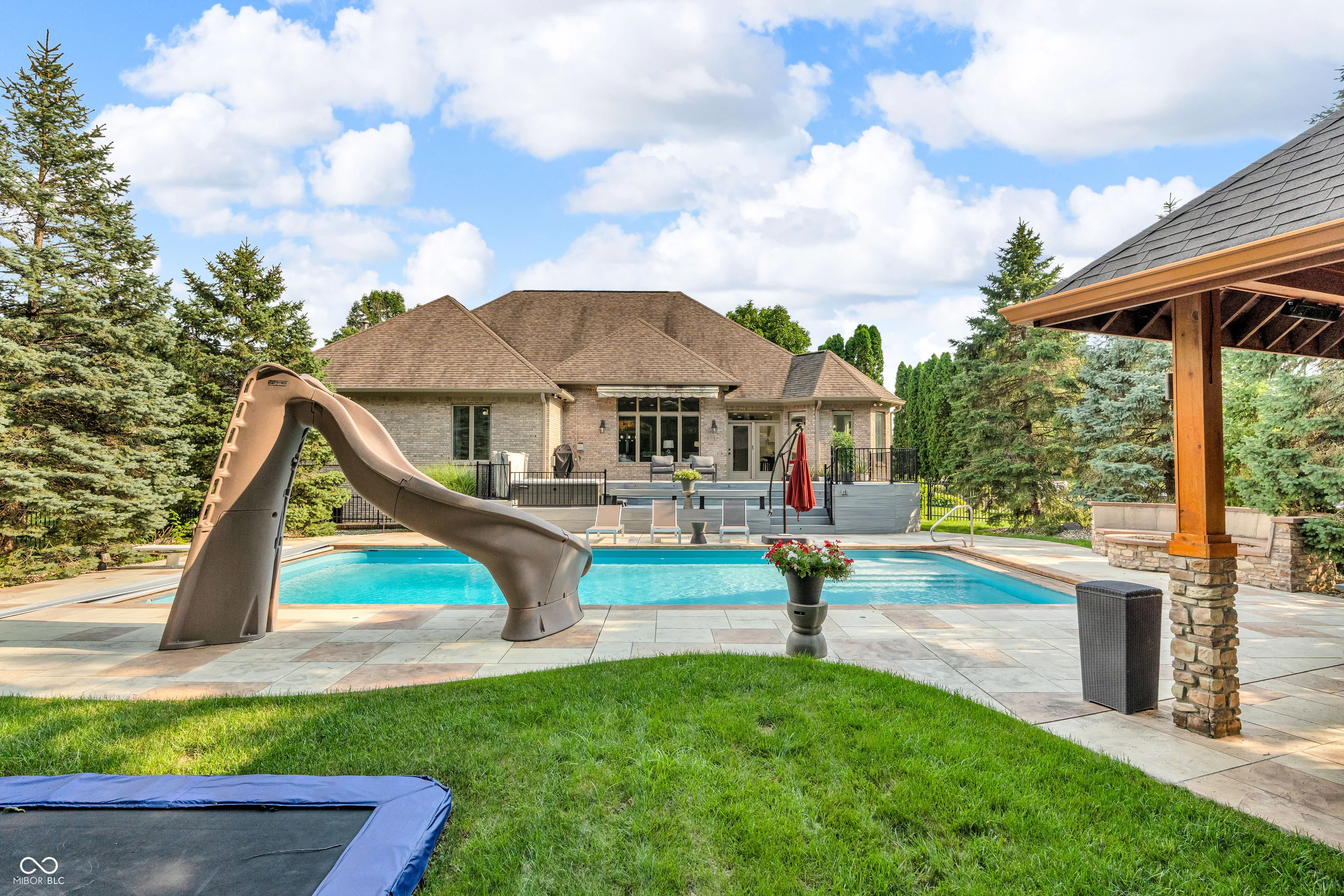 Live Like You’re on Vacation – Every Day! This custom-built ranch with a full basement in the heart of Center Grove’s Highland Park neighborhood delivers over 5,400+ sqft of thoughtfully designed bright living space, featuring 5 spacious bedrooms, 3.5 baths, large great room, 2 fireplaces, nice bar in family room in basement with refrig,dishwashwer,wine cooler & TV, a dedicated workout room, and your very own movie theater!! But the real showstopper? Step into your private resort-style backyard featuring a 40×20 heated in-ground pool with a slide, multi-level trex deck with a hot tub, and a beautiful outdoor pavilion with bar seating – perfect for weekend hangouts or impromptu pool parties. Cozy up around the crescent-shaped gas firepit and enjoy a yard surrounded by mature trees for maximum privacy and that peaceful, tucked-away vibe. This one-of-a-kind home is where every day feels like an every day getaway. Welcome Home!