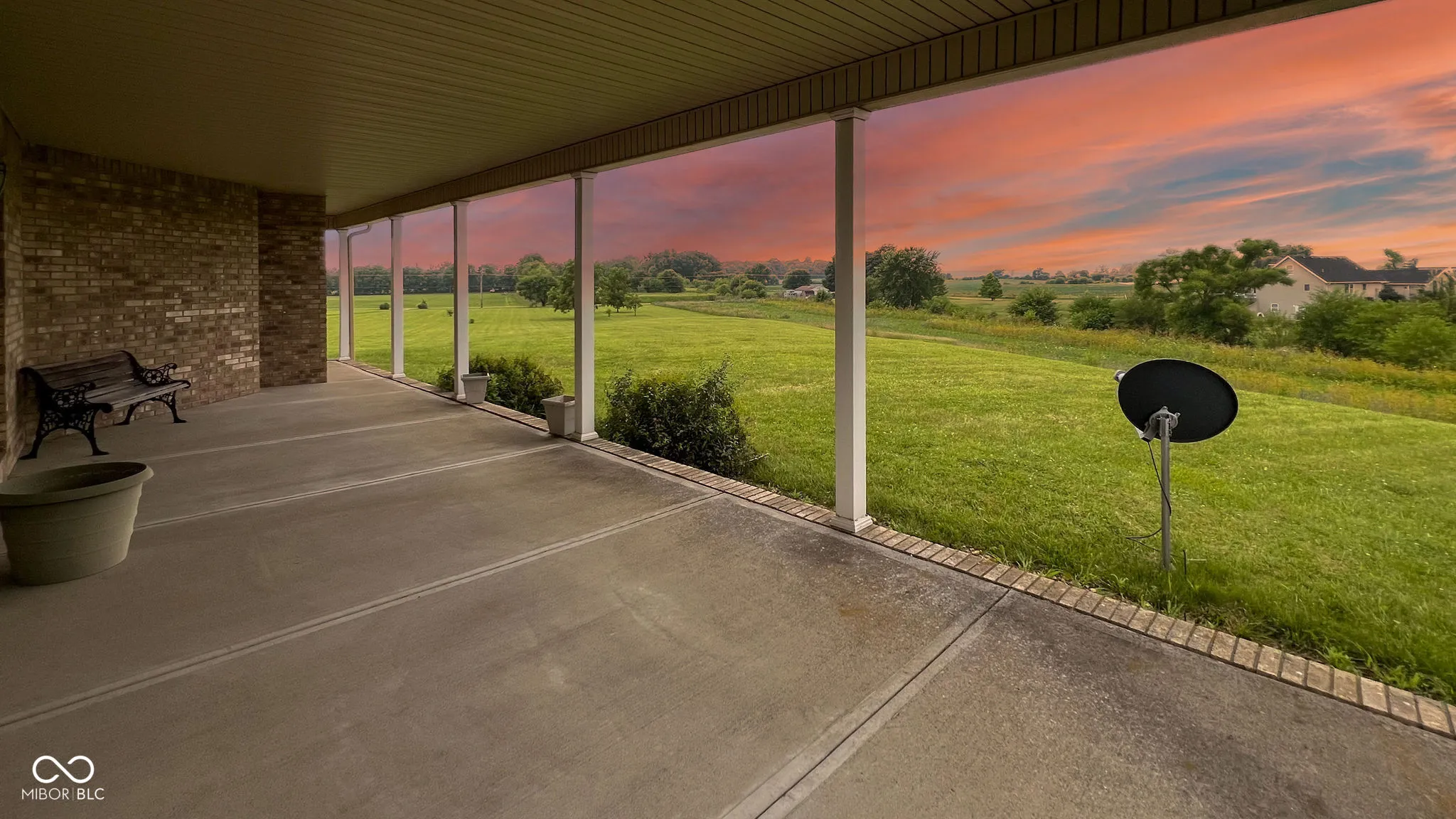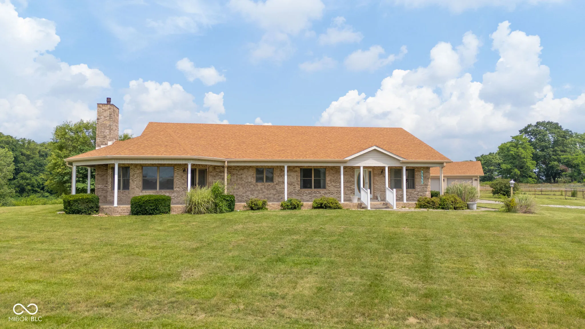 Striking sunset views of the countryside from a custom-built house on a hill. Built in 1999, this one-of-a-kind, custom brick ranch was built by Ferrell Builders & sits at the crest of a hill on a 6.76 acre lot. It features incredible views of the surrounding area. The house is 2453 sq ft with 3 bedrooms & 2 full baths. The open kitchen and living room area incorporate the view. There are multiple ways to access the wrap-around porch including from the primary bedroom that features a private bathroom, a walk-in closet, and the sunset view. All appliances stay including the main-level laundry and the upright freezer in the garage. There is both an oversized attached 2-car garage and a detached 2.5-car garage/workshop. New roof in 2021. House is wired for a generator.