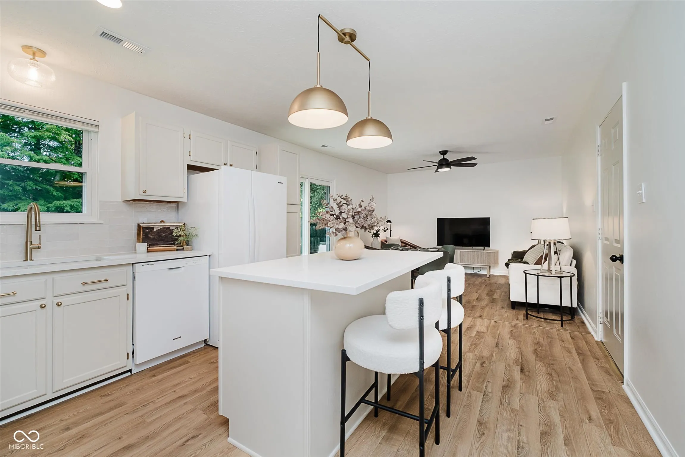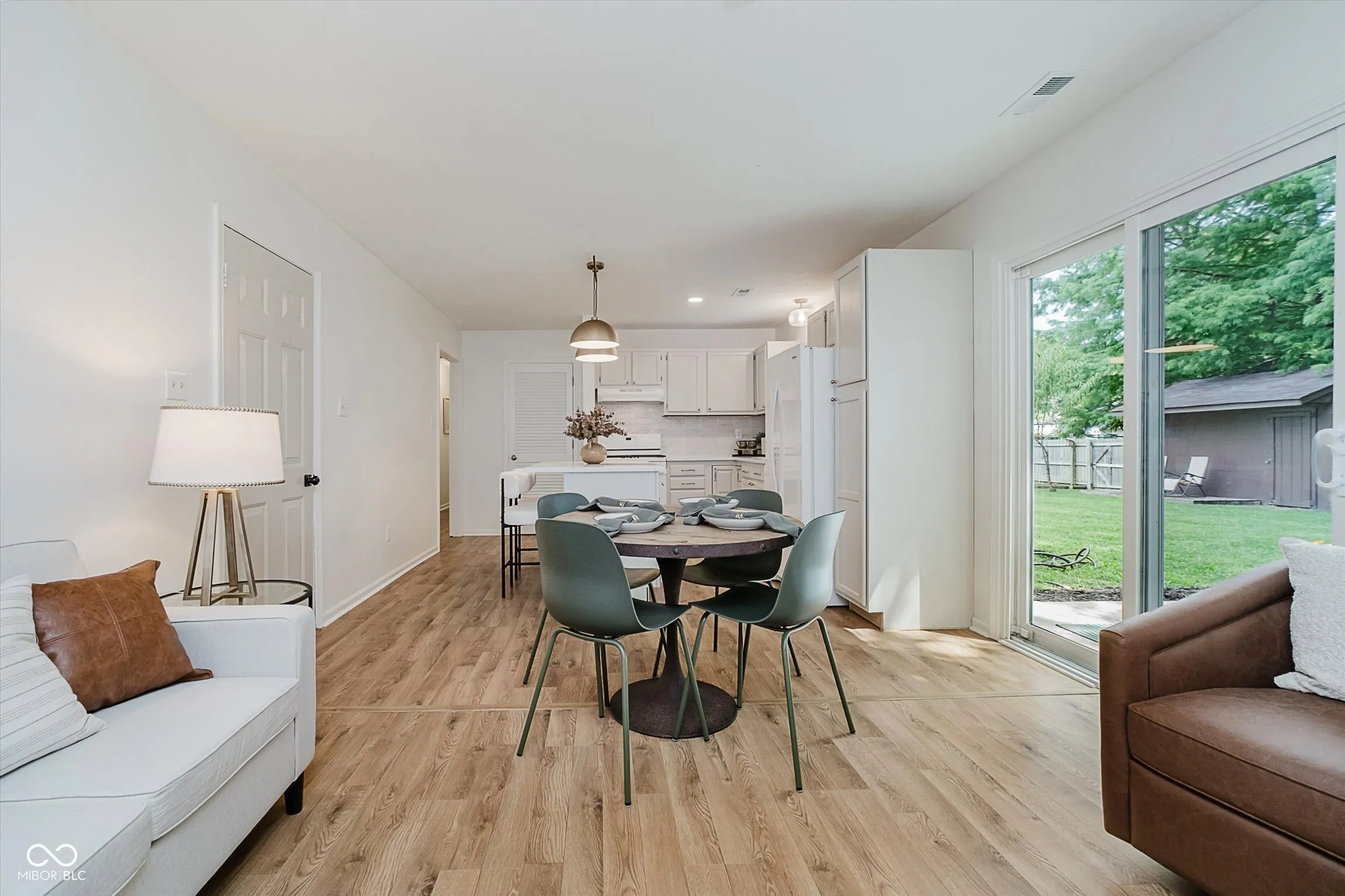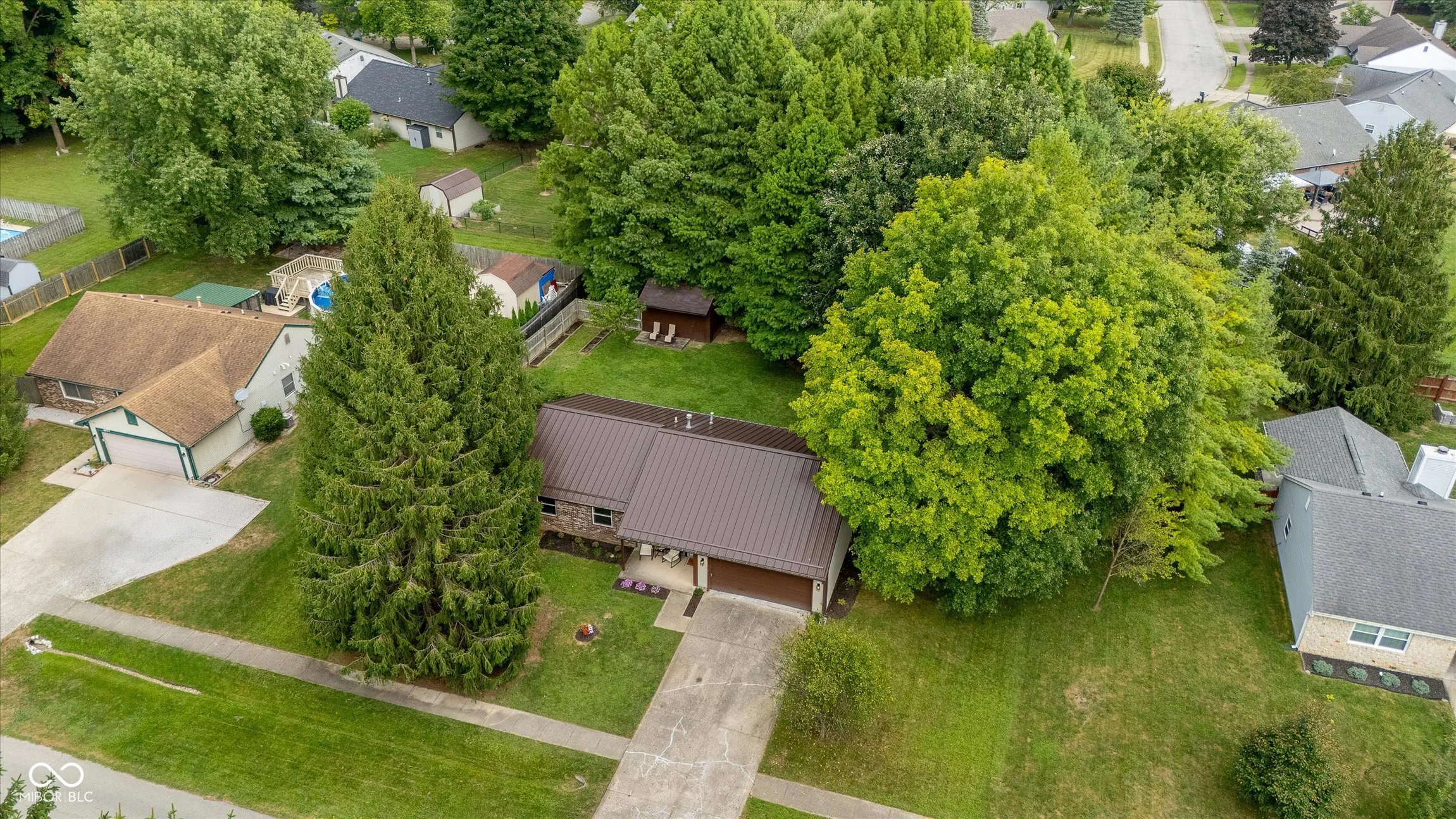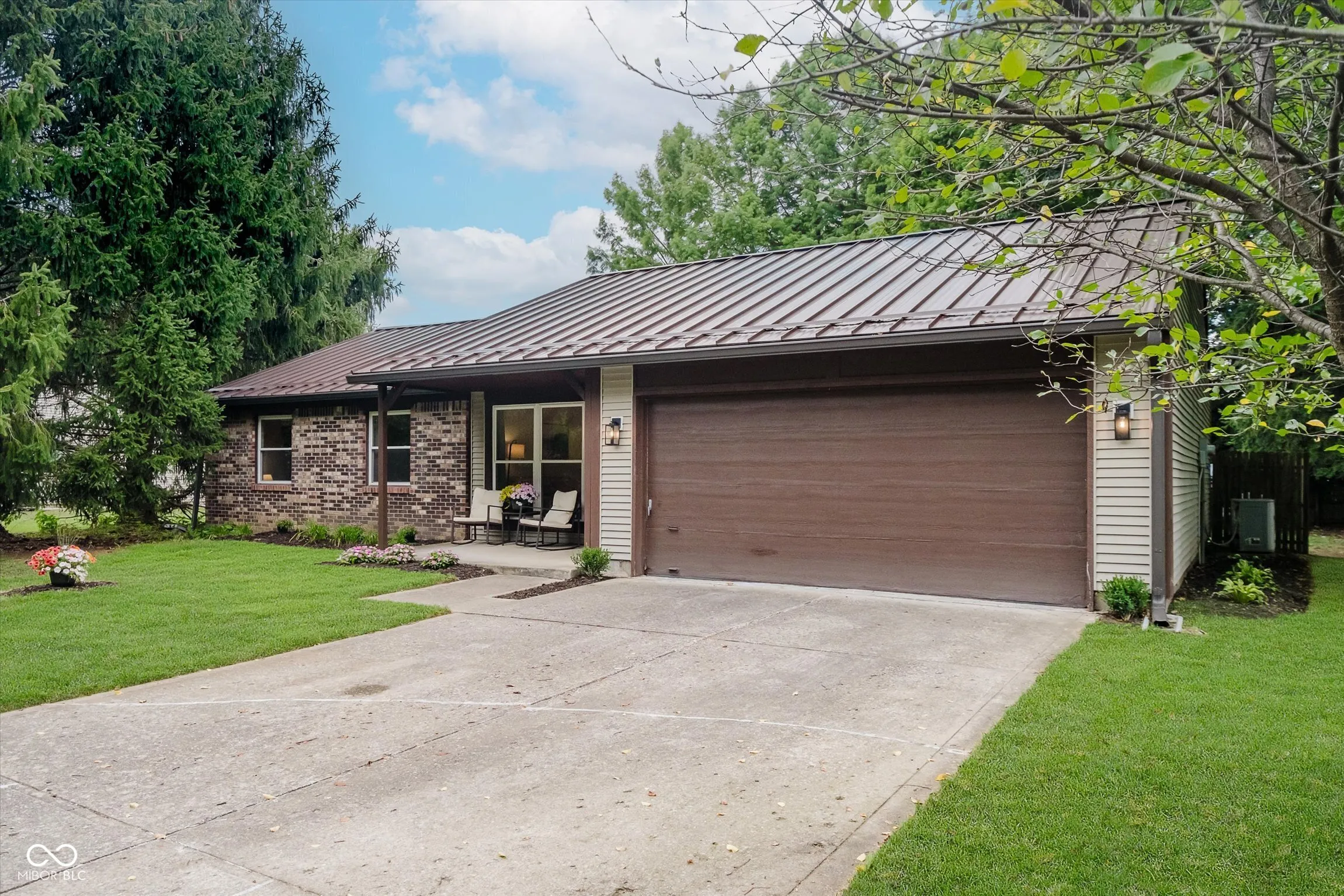 Remodeled, fresh, & move-in ready, this 3 BR/2BA Brownsburg ranch home on .35 acre has a covered front porch, 2-car garage, private & fenced backyard w/ mature trees, back patio, & storage shed – No HOA. Metal roof installed 2019. UPDATED 2025: New Flooring throughout (laminate wood in living spaces, carpet in BRs, LVT in BAs); New Paint throughout; Kitchen – New quartz countertops, ceramic zellige tile backsplash, light fixtures, sink & faucet, garbage disposal, appliances (new in 2022) including a gas range; Baths – New vanities, faucets (Delta), light fixtures, & mirrors. Home Warranty transferable to Buyer. Cozy charm of an established property combined w/ modern updates; floor plan has 2 living spaces, providing flexibility for your personal needs – options for formal dining or living room, great room/eat-in kitchen combo, etc. Incredible Lot! The backyard features sun & shade areas, garden beds ready for fall planting, fire pit area, the list goes on! Located near schools, retail, and walking distance to popular Williams Park. Check out interactive virtual tour linked in listing for highlight video!