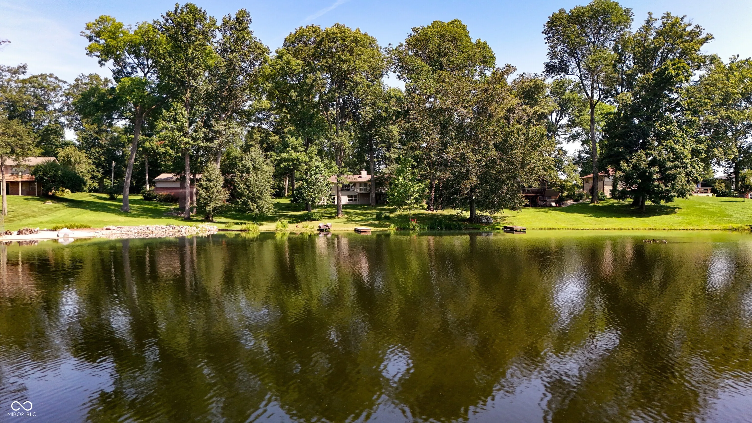You’ll enjoy this beautiful lakefront home on a large, wooded lot with extensive landscaping! *Inviting front porch *Living room features hardwood floors, a bank of windows for an abundance of natural light and stunning views of the lake *Kitchen offers double built-in oven, gas cooktop, breakfast bar, pantry, hardwood floors and breakfast area *Formal dining room with hardwood floors & double-sided fireplace *Primary bedroom suite with great views of the lake & attached full bath *Walk-out lower level offers 13×29 family room with built-in bookshelves & cabinets and wood stove, bonus room and large unfinished area for workshop or storage *Huge deck overlooking the lake for entertaining family & friends or just relaxing with morning coffee and a good book *Patio for evening cookouts *Dock * Dual heat system…Furnace & AC installed in 2022 *Extensive landscaping includes Hydrangeas, Azaleas, Lilacs, Rose of Sharon, Russian Sage, white Daisies, Jacob’s Ladder, Roses, Coral Bells & Peonies *Swimming, fishing & kayaking are just steps from your back door! *Easy access to Columbus & I-65