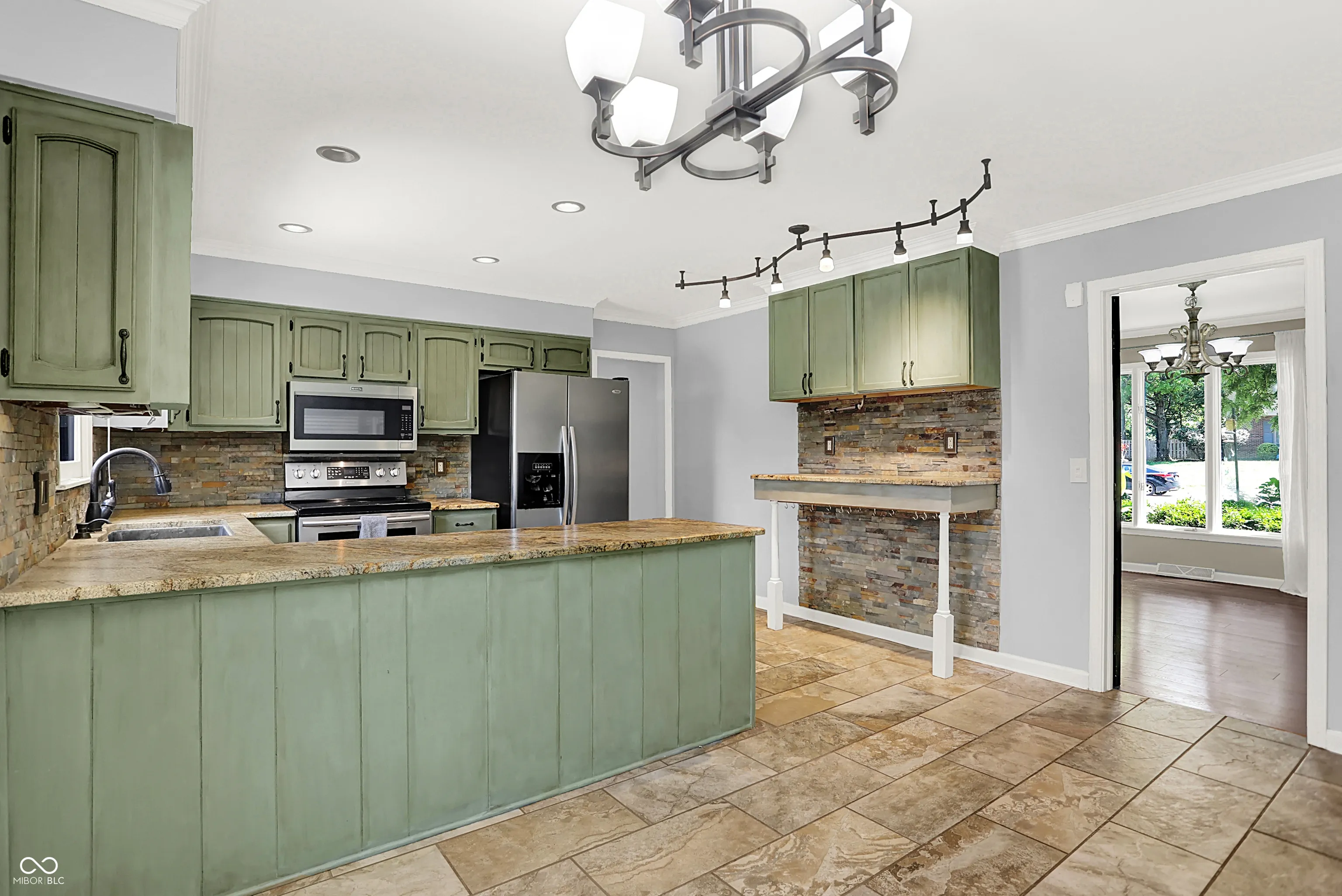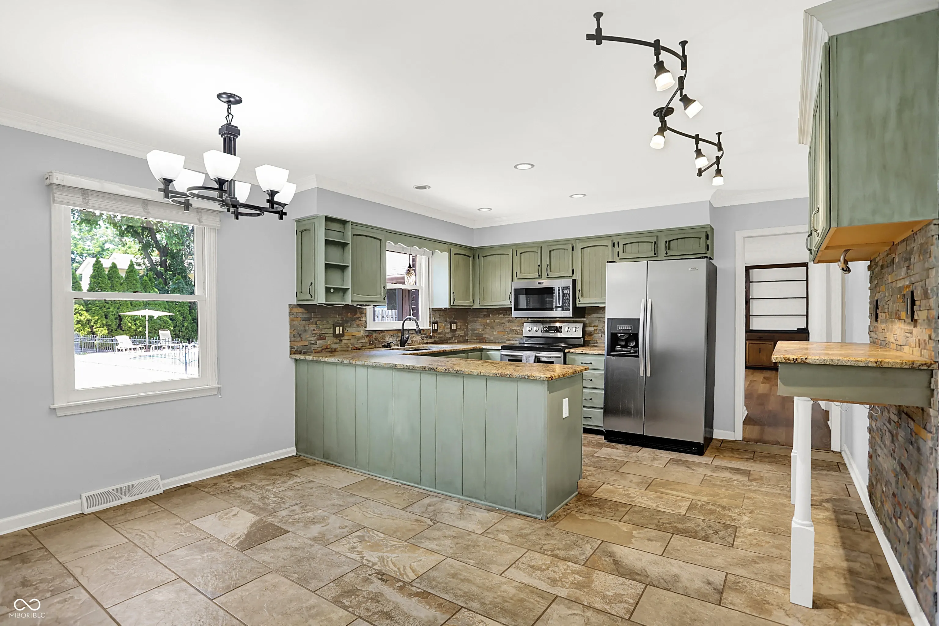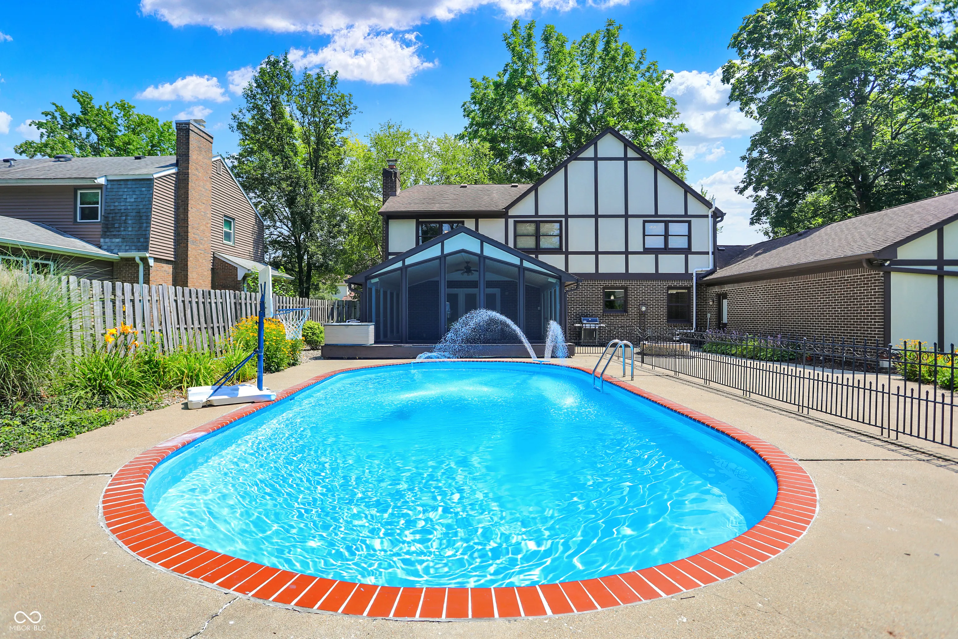 Welcome to this impressive Tudor-style residence offering timeless character, wonderful updates, and generous space for comfortable living and entertaining. Located in the popular Brookshire neighborhood of Carmel, this 5-bedroom, 3.5-bathroom home seamlessly blends traditional charm with thoughtful upgrades and abundant space. Inside, you’ll find the foyer leading to a spacious living room with built-in cabinets and crown molding. The comfortable family room and fireplace with built-in bookshelves and cabinets leads to the backyard and half bathroom. The tiled eat-in kitchen includes rich, earthy updates such as custom antiqued cabinets, suede honed granite countertops, Italian slate backsplash, modern appliances, and oil rubbed bronze fixtures. Breakfast nook double doors lead to the formal dining room with elegant trim details and chandelier. A dedicated home office with built-ins for a productive, organized workspace, features a separate entrance. Laundry room on main level has convenient utility sink and additional full bathroom to rinse off after a dip in the pool. Upstairs are 4 generously sized bedrooms and 2 full bathrooms- both with dual sinks and updated counters! Wonderful, finished basement offers even more room to spread out, complete with convenient wet bar, 5th bedroom, bonus/guest room which could be used as a workout space, and additional storage. Step outside into the tremendous screened-in porch with vaulted ceiling, while overlooking the fully fenced backyard oasis. This yard is an entertainer’s dream, with an inground heated swimming pool, spacious patio, and built-in fire pit. HUGE 3+ car attached garage with built-in storage is also heated. Located just minutes from top rated schools, shopping, dining, and Carmel’s Arts & Design District. This superb home is the perfect blend of character, comfort, and convenience. Welcome to your new home!