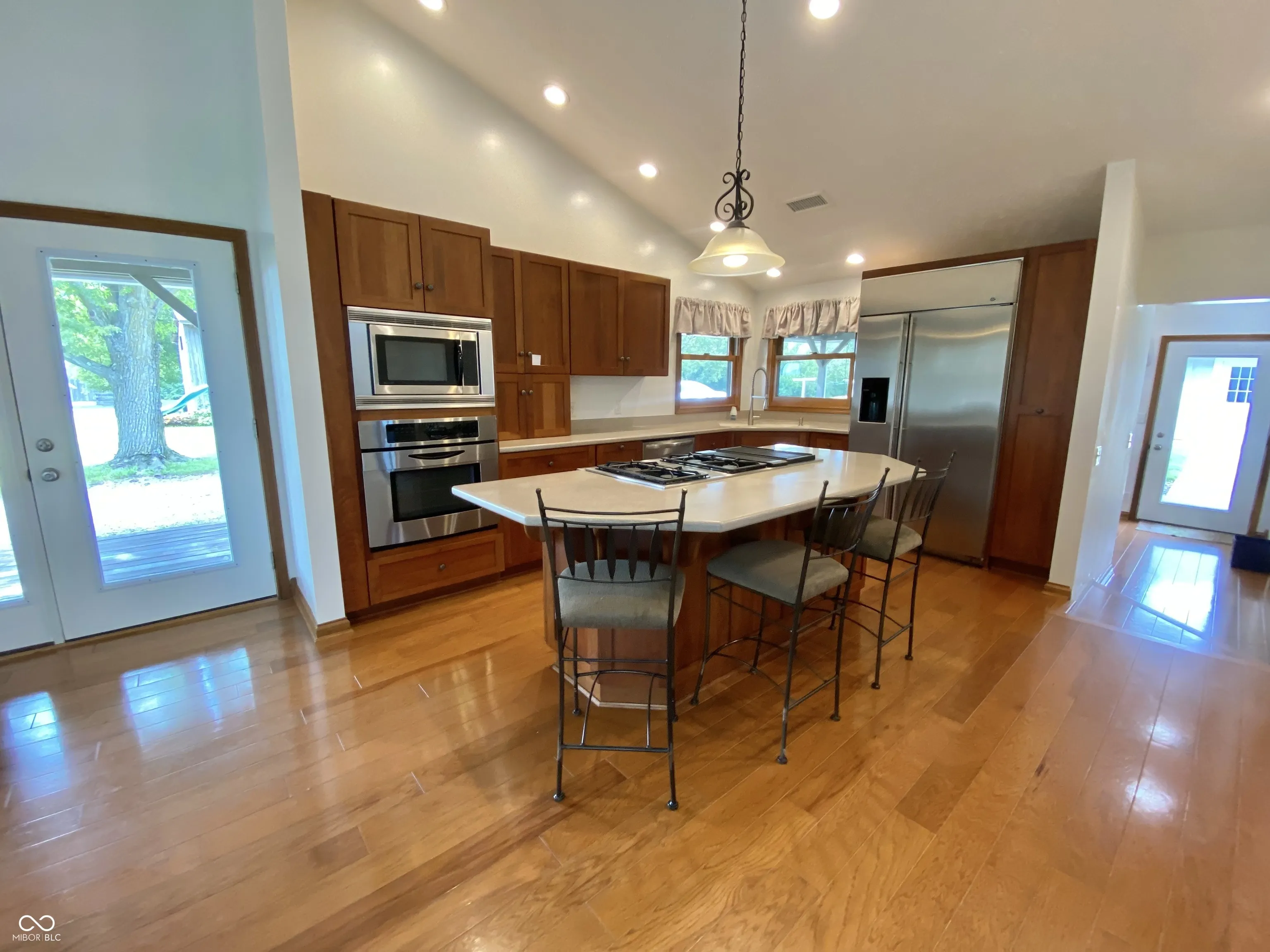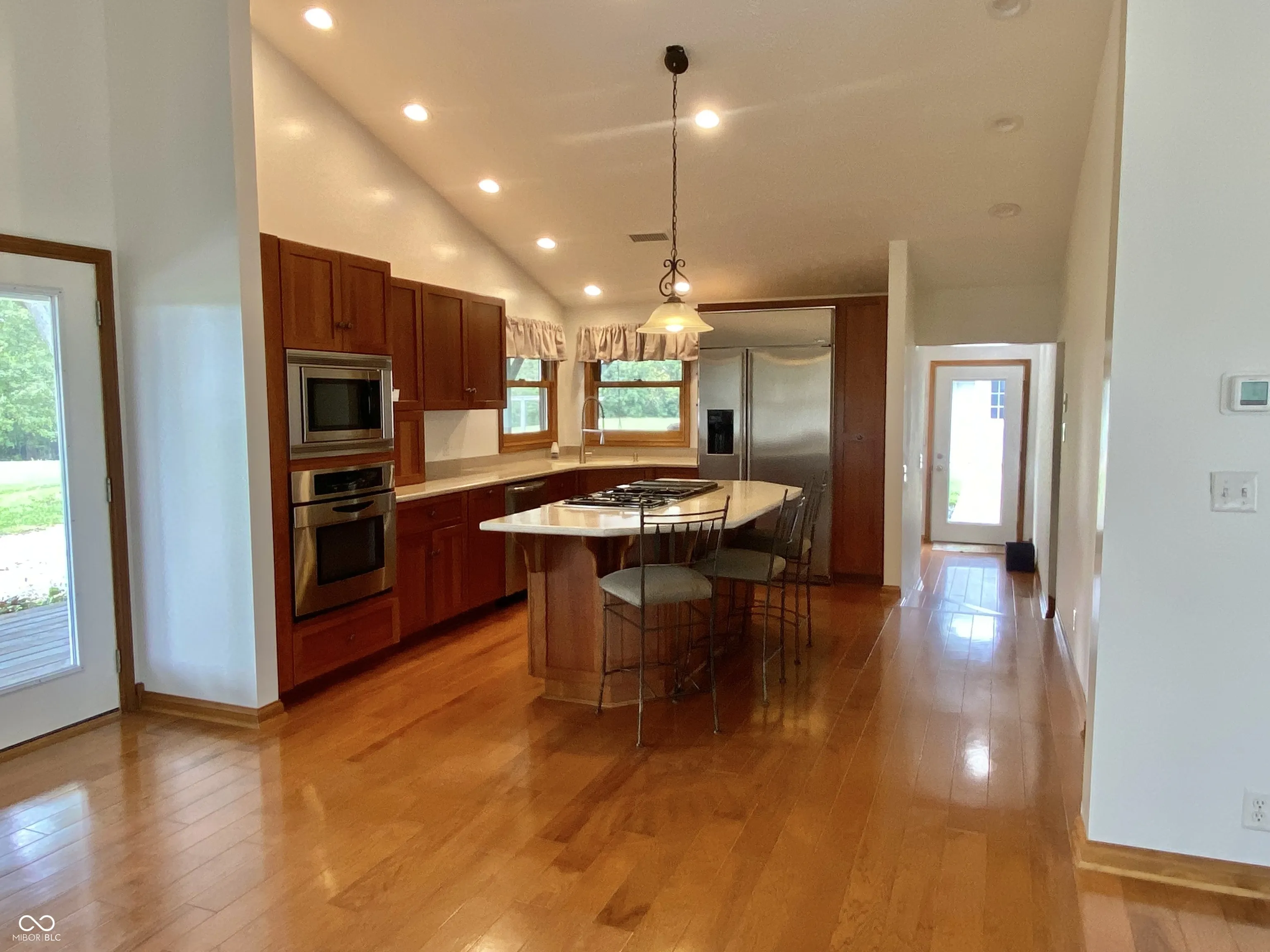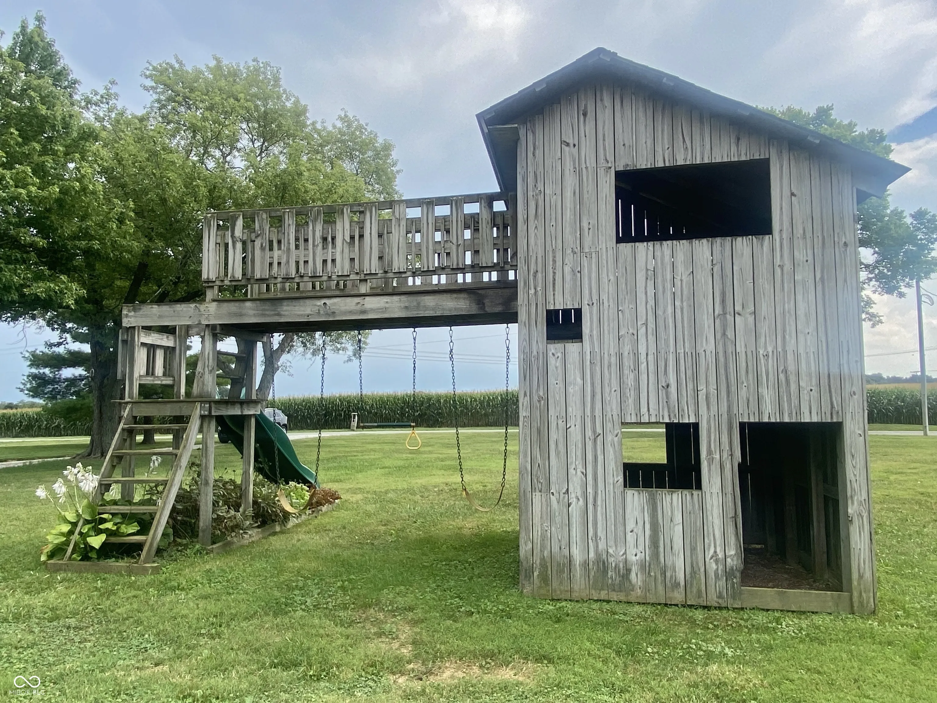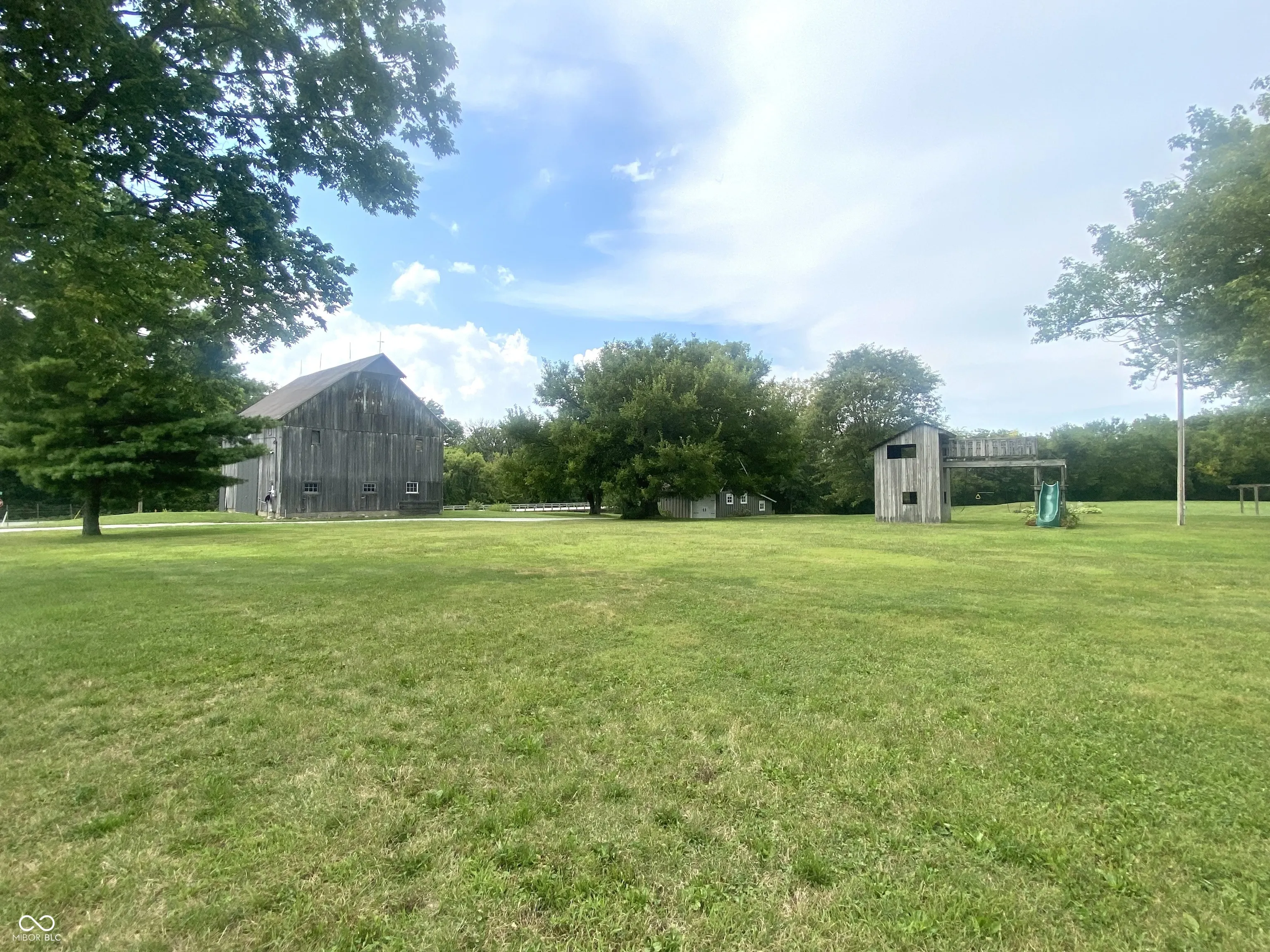 So many options! Family compound; hunters delight; personal retreat? Nestled on an expansive 21.95 acre lot in GREENFIELD, discover this delightful home w/ 2 primary bedroom options. The heart of this residence is undoubtedly the kitchen. A culinary haven designed for both functionality & social interaction; a large kitchen island anchors the space, providing ample room for meal prep & casual dining, while the kitchen bar invites conversation & connection; equipped w/ a gas Jenn Aire cooktop w/ 4 burners plus a grill / griddle, Kline custom cabinets, gorgeous hardwood flooring, huge refrigerator, slide out pantry, on demand hot water, & built in Jenn Aire microwave & oven. This kitchen is as practical as it is beautiful. The Great Room & Dining Room are designed to impress! Those same gleaming hardwoods continue, loads of natural light & a vaulted ceiling creates an airy & expansive atmosphere. This space is perfect for relaxation or entertaining, and the view from every window is amazing. The Kitchen, Dining, & Great Room have been listed as separate spaces, however it’s an open floor plan allowing you to customize your perfect layout. The primary bedroom upstairs features a customized walk-in closet with built in shelving and cabinets. It should be in a magazine! The second primary bedroom is on the lower level (down 4 stairs) features built in shelving & large walk-in closet. This space could also be utilized as a 2nd family room. There’s a large mudroom at the back door. The two full bathrooms have both been updated w/ tasteful, high-end finishes. The laundry room is amazing! Utility sink, built in folding table & hanging racks all neatly tucked away behind large louvered doors. There’s also a 2 car detached garage, huge barn, storage building, & playset. Sugar Creek runs through this property & there are some trails already cut out; more could easily be added. The field is income producing. Wildlife galore! 3 parcels total