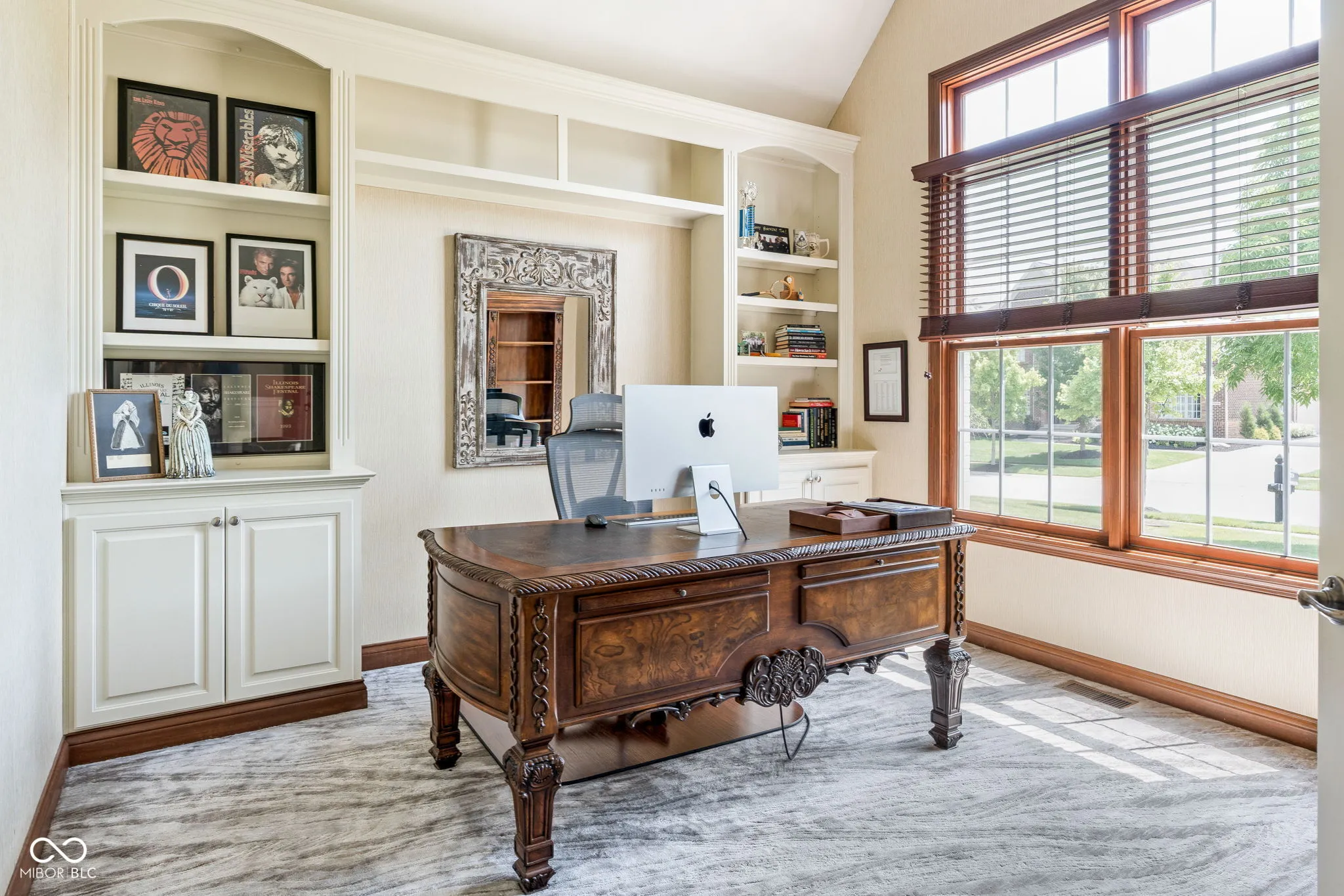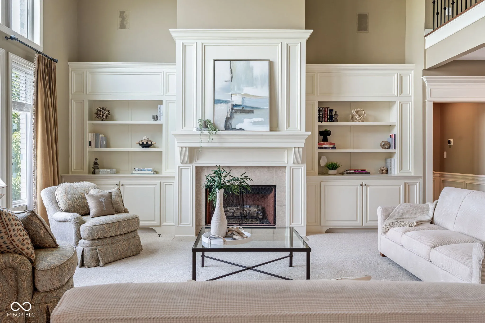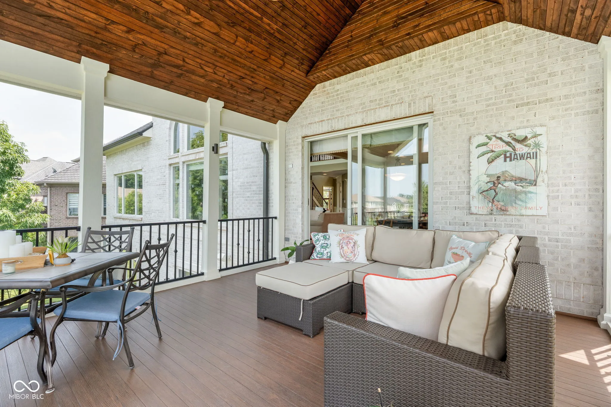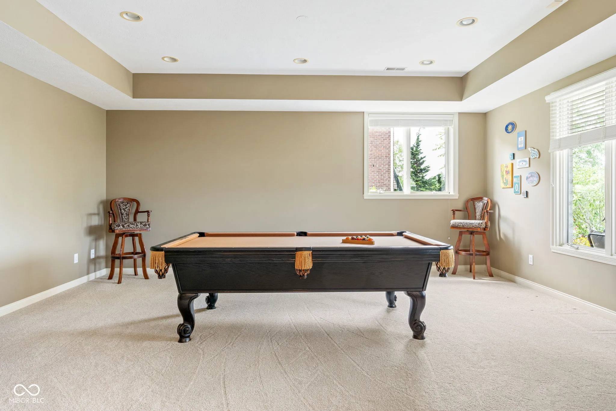 Welcome to an exceptional residence that redefines luxury living, offering 5 bedrooms, 5.5 bathrooms, and over 5,500 square feet of finished living space, thoughtfully designed for elevated comfort and entertaining. Perfectly situated at the center of an oversized pond with three lighted fountains, this home boasts the most expansive water views in the neighborhood. The living room is drenched in natural light from the panoramic windows and open to kitchen. The main-level primary suite provides a peaceful retreat with serene pond views, a spa-like bath, and a generous walk-in closet. Each additional bedroom features its own en suite bathroom and large walk-in closet, offering privacy and luxury throughout. In addition, a large screened-in porch with Trex decking provides a private and tranquil space to relax while overlooking the pond. The oversized three-car garage features epoxy floors and an electric vehicle charging outlet, combining style with functionality. A whole-home clean water filtration system adds another layer of thoughtful living. The finished walk-out basement is an entertainer’s dream with soaring 10-foot ceilings, a full bar equipped with a dishwasher and oven, a spacious gaming area, and a dedicated theatre room with built-in surround sound. Step outside to the stamped concrete patio where a fully equipped outdoor kitchen, fire pit, and beautifully landscaped surroundings set the stage for unforgettable gatherings, all framed by picturesque water views. Located just steps from the Midland Trace Trail-which connects directly to the Monon Trail-this home offers unmatched access to recreation and nature. Set in a highly sought-after neighborhood where homes rarely become available, this is a rare opportunity to enjoy refined living, privacy, and natural beauty in one extraordinary home.