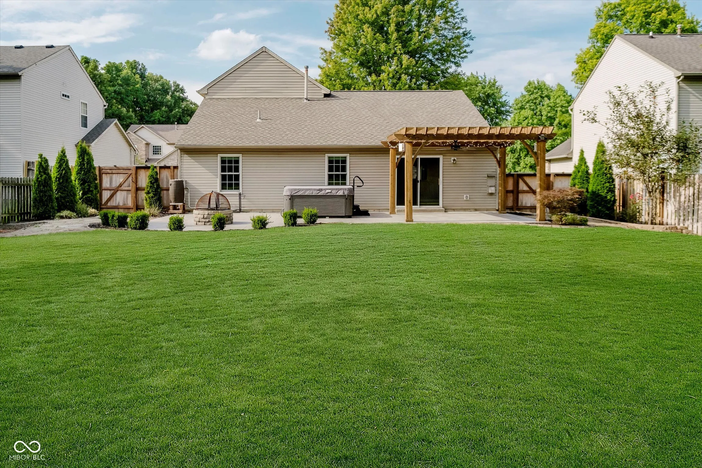 Welcome to this beautifully maintained 4-bedroom, 2-bath home ideally located in the heart of Fishers. This inviting residence offers 1.5 levels of thoughtfully designed living space, featuring three bedrooms on the main floor and a spacious fourth bedroom upstairs. The upper level also boasts a large loft area w/ triple windows, a cozy bench seat, and built-in surround sound speakers. Currently, the 4th bedroom is set up as an office, complete with a commercial desk and storage that remain with the home.Step outside to your private backyard oasis, where an over-sized custom stamped concrete patio w/ a pergola outfitted w/ lights and speakers creates an ideal outdoor retreat. The space also includes paver stone walkways, a new high-end, 8-person Isla Margarita Artesian Spa hot tub, & privacy fence w/ new cedar gates, perfect for gatherings or peaceful evenings.Inside, the open-concept great room features vaulted ceilings & a gas fireplace overlooking the backyard, creating a warm and welcoming atmosphere. Freshly painted in Sherwin Williams Shoji White & outfitted w/ new carpet, this move-in ready home feels fresh & bright. The owner’s suite impresses w/ dual closets & spacious bathroom w/ an oversized tub/shower. Additional highlights include new Anderson windows in bedrooms, tile flooring in bathrooms, and all bedrooms featuring walk-in closets. The kitchen is outfitted with new stainless steel appliances including a French door refrigerator w/ bottom freezer, an induction cooktop range, & an LG ThinQ dishwasher. Laundry is made easy w/ a stacked LG ThinQ washer & dryer,folding table & storage cabinets.Completing this exceptional home is a finished two-car garage, fresh landscaping & mulch, and a highly convenient location close to Fishers’ shopping, dining, entertainment, downtown, highly-rated Hamilton Southeastern Schools, and retail amenities!
