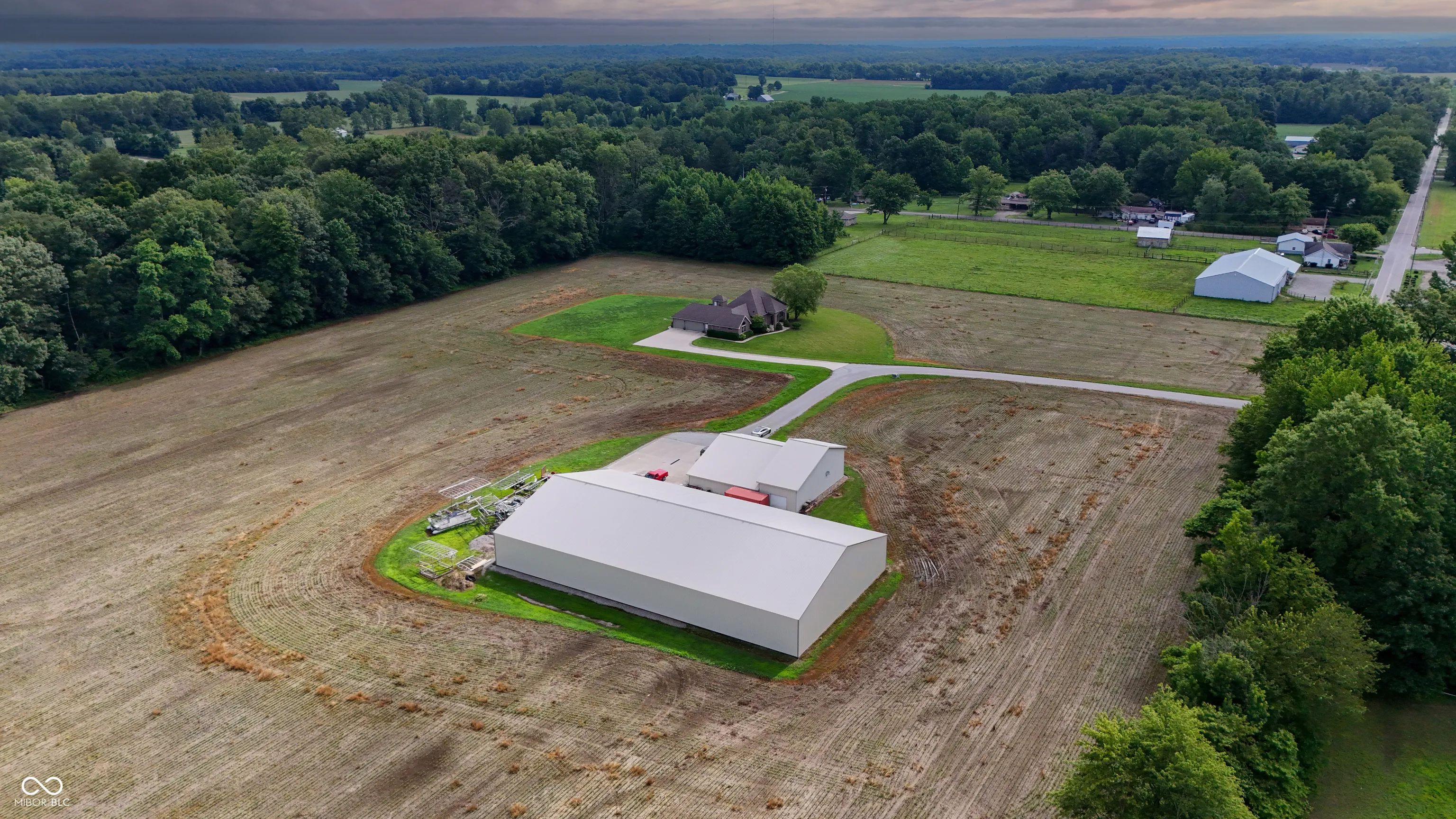 Nestled on 17 picturesque acres just west of town, this custom-built home offers the perfect blend of modern luxury, functionality, and endless possibilities. From the moment you step inside, you’ll be greeted by soaring ceilings, expansive windows, and an abundance of natural light that fills every corner of this spacious, open-concept floor plan. The heart of the home is a gourmet kitchen that’s every chef’s dream. With a large pantry, high-end finishes, and ample counter space, it’s perfect for preparing meals or entertaining guests. The living and dining areas flow seamlessly, creating a warm and inviting atmosphere ideal for both everyday living and special occasions. The luxurious primary suite provides a peaceful retreat, featuring a generous walk-in closet and a spa-like en suite bath. The fully finished lower level adds a wealth of living space, offering a large family room, full bathroom, and a versatile area with egress windows that could easily transform into additional bedrooms, a home gym, office, or even a home theater – the possibilities are endless. Step outside through the French doors to your private outdoor paradise. The in-ground pool is perfect for relaxing or entertaining, and the accompanying pool house adds both charm and convenience to your outdoor experience. This property comes with two impressive barns – a 52 x 60 barn and a massive 80 x 144 barn – providing endless storage or space for your hobbies, livestock, or even a business venture. Whether you need room for animals, equipment, or projects, these barns offer exceptional potential. With its luxurious finishes, expansive layout, and versatile barns, this exceptional property is a true gem. Schedule your private tour today to explore all the incredible opportunities this home and acreage offer!