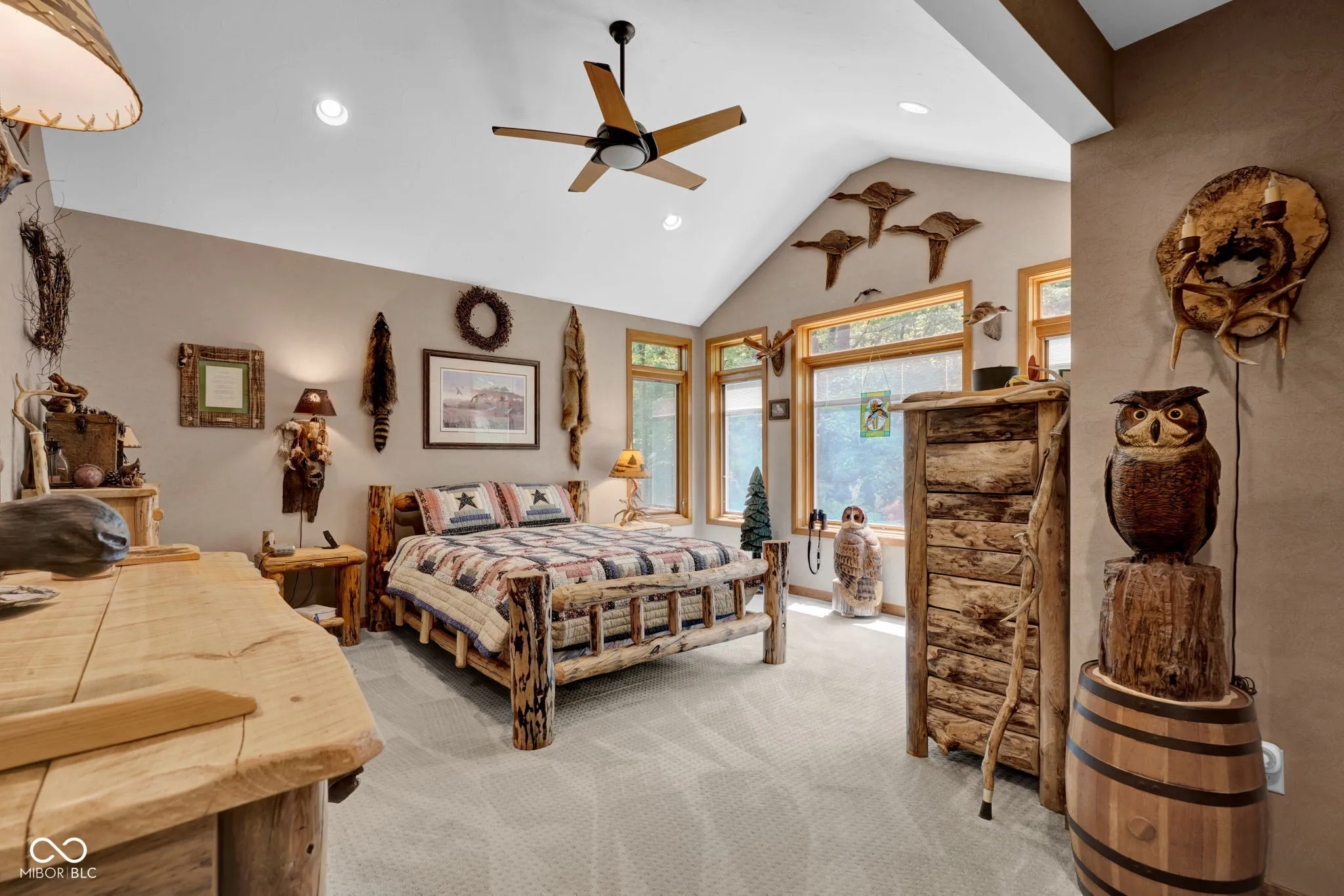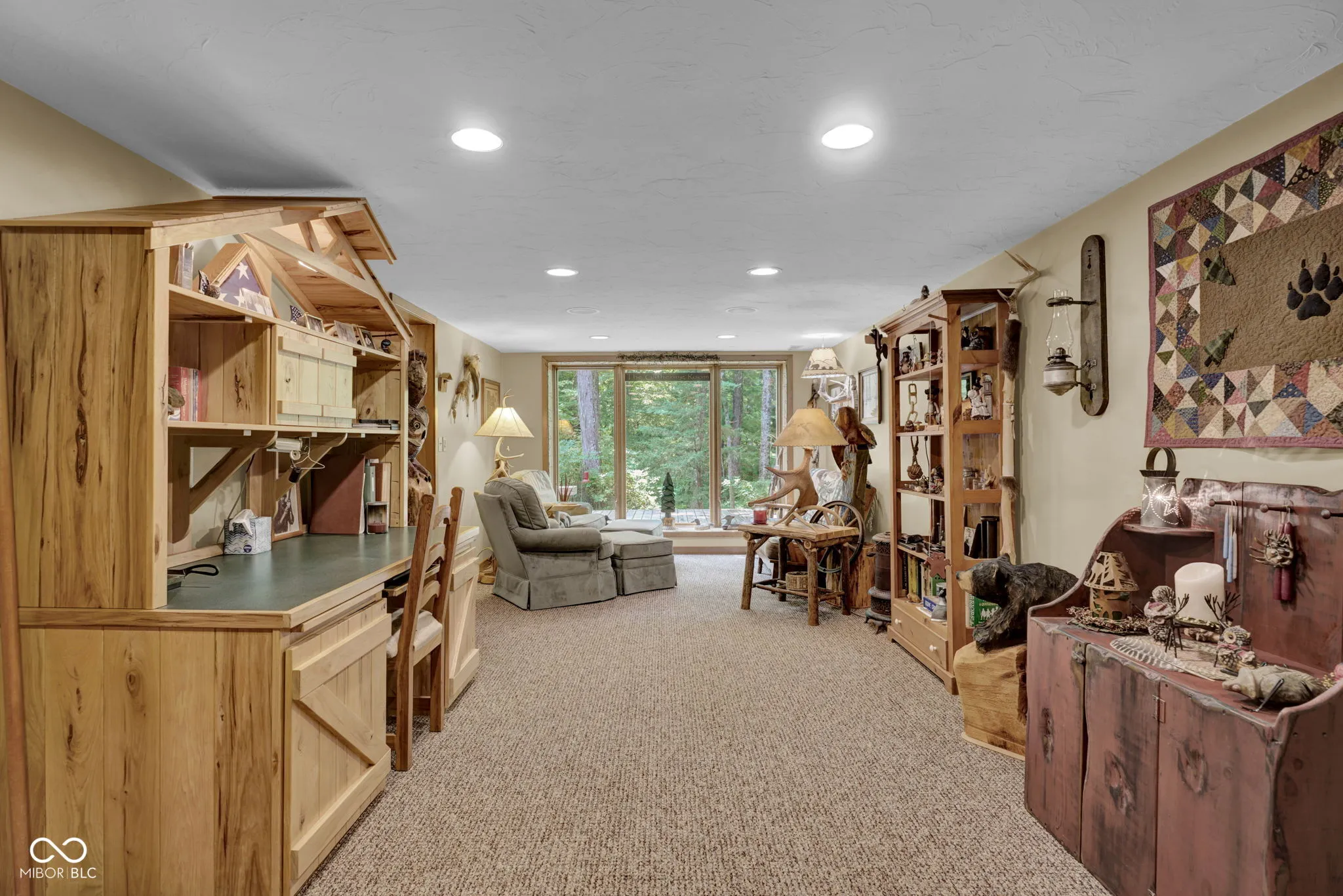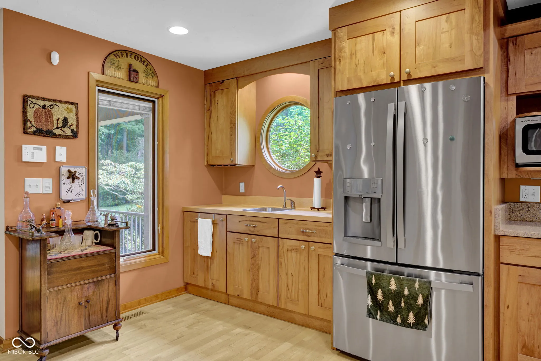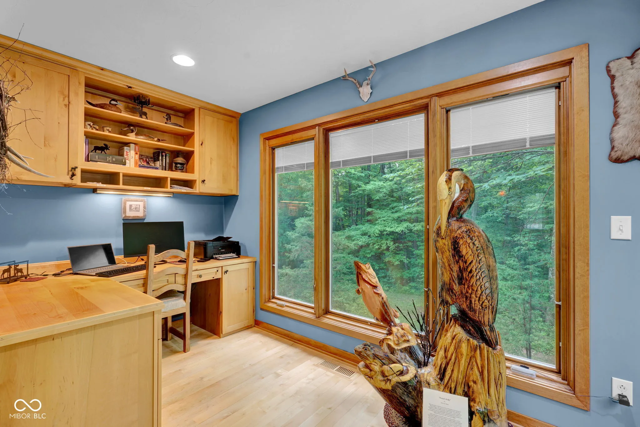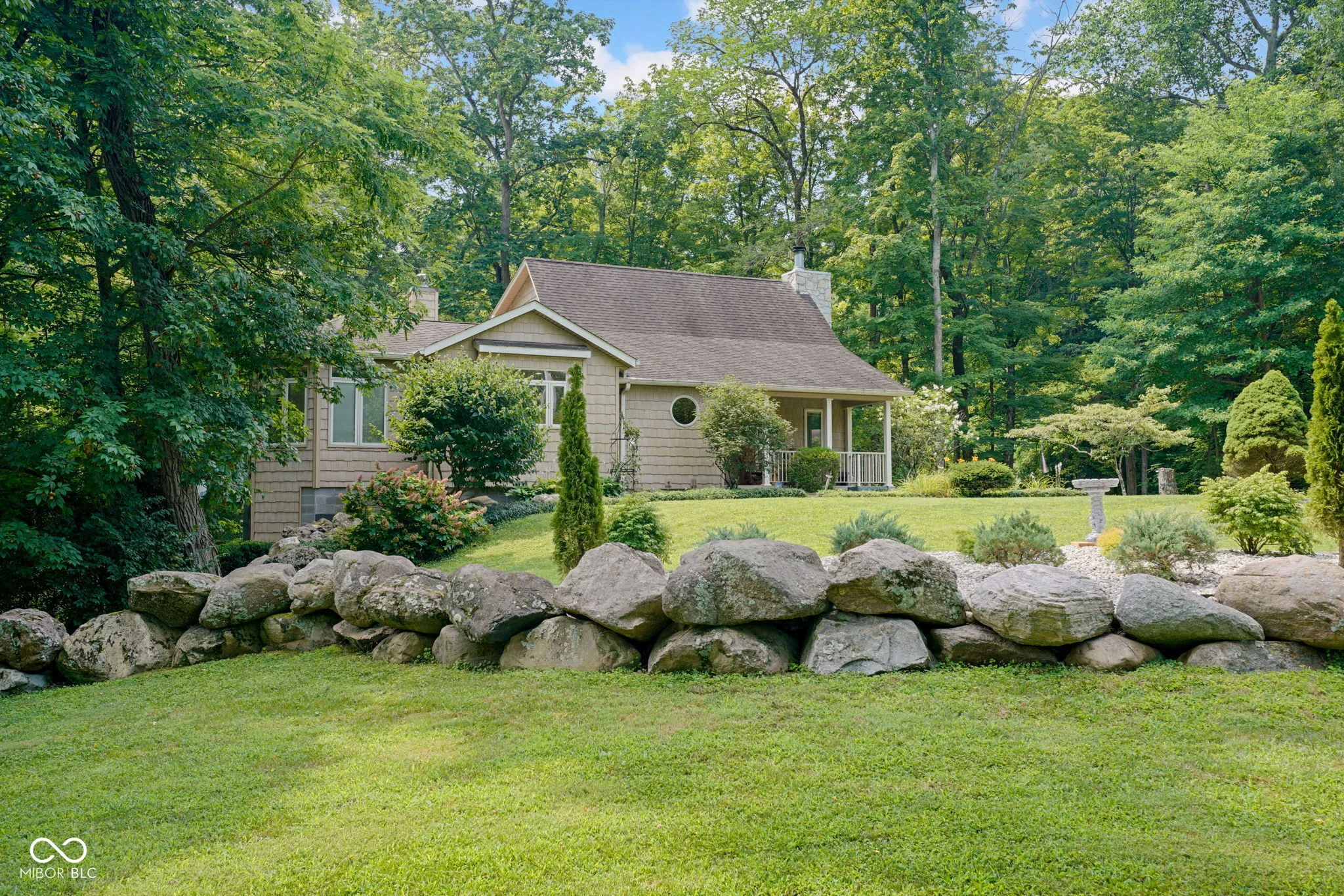 Escape to nature! Over 5 acres of heavily wooded wonderland where wildlife & waterfowl gather at the pond. 3800sqft of living space in this captivating custom home with a versatile finished walkout basement and windows everywhere! Step in the front door and enter the great room with a striking two-story stone fireplace. The sprawling eat-in kitchen includes ample counter space and cabinetry, as well as a large center island with stove top, storage and seating space. Besides a double oven, there is a fun wood-fired pizza oven, and even a wet bar. Formally dine in the enchanting turret and enjoy the views in 5 directions, or step out to the deck to absorb nature. Just try to get any work done from the fabulous office with a built-in desk, shelves, and cabinets, while gazing out the window wall or from the adjoining balcony. Whether this is your primary home, a country retreat, or a blended household, there is something for everyone! Primary suite on main level with a huge WIC; guest suite as the entire upper level; and a third bedroom, full bathroom, PLUS a second kitchen in the finished walk-out basement. Also found in the basement is a living room, family room, second wet bar, and huge storage room. One of your favorite spots will be gazing at the birds, hawks, deer, and ducks on the pond from the huge basement picture window. Or saunter out on the spacious lower deck for even closer immersion in nature, perhaps stroll down the trail in the woods around the pond and pause to watch the great blue heron, fish, and frogs… relax… and just… breathe.