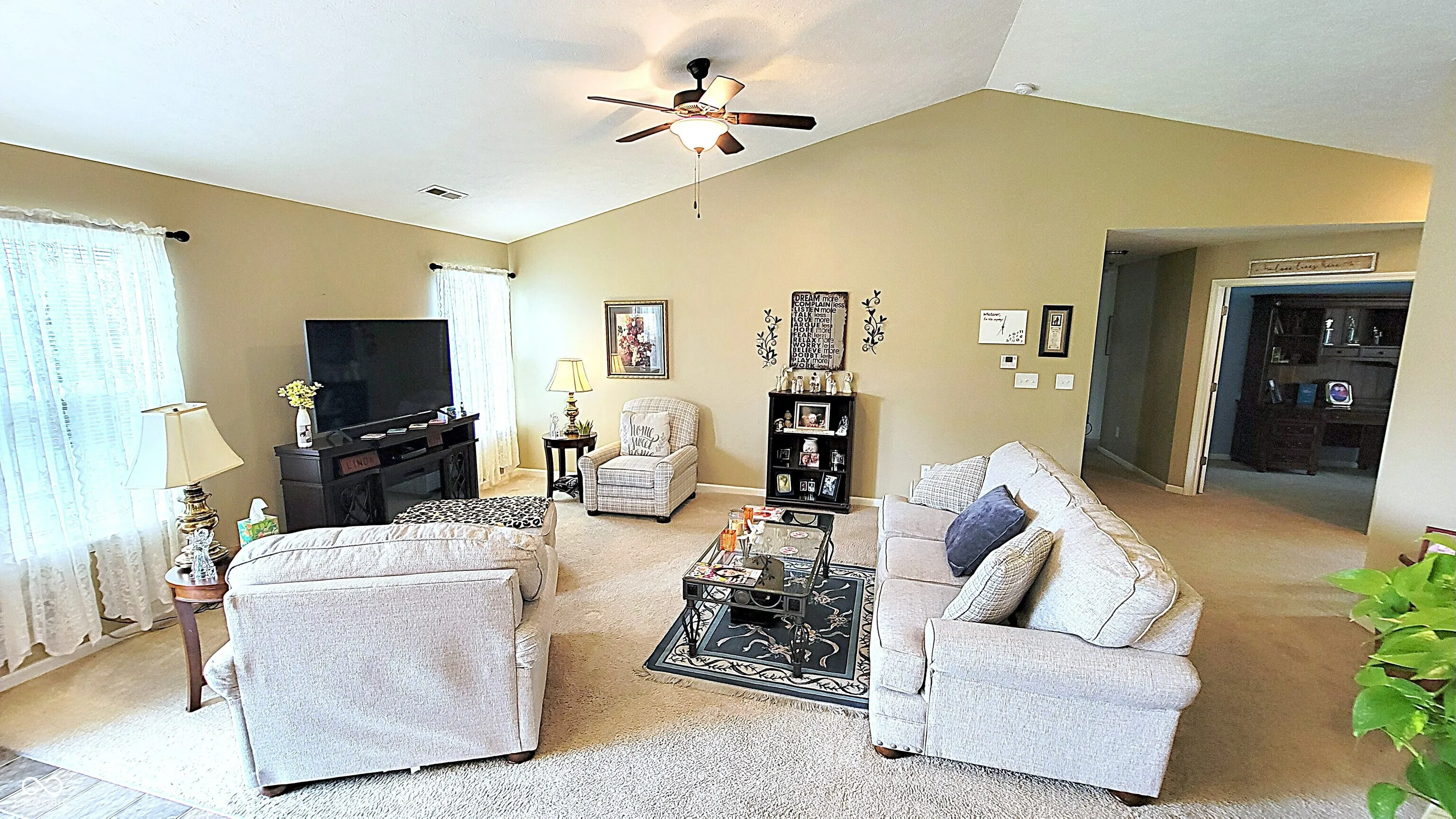 Charming Well-maintained 1 owner Ranch with Spacious Open Layout – Perfect Blend of Comfort & Style! Welcome to 5985 Oakhaven Dr, a beautifully maintained ranch home in the desirable Wakefield West community of Greenwood, Indiana. This thoughtfully designed residence offers 3 bedrooms, 2 full baths, and 1,690 sq. ft. of comfortable living space – with the added versatility of a den that can easily become a fourth bedroom or home office. As you step inside, you’ll be greeted by a bright, open-concept living area featuring vaulted ceilings that create an inviting sense of space and flow seamlessly into the kitchen and dining room – ideal for entertaining family and friends. The well-appointed kitchen boasts quality cabinetry and plenty of storage, including a pantry closet. The generous primary suite is a true retreat, complete with a private bath and large walk-in closet, while the additional bedrooms also offer walk-in closets and plenty of natural light. A convenient hallway laundry area adds practical everyday convenience. Outside, enjoy a covered front porch overlooking established landscaping – perfect for morning coffee or evening relaxation – and a backyard with a patio area and space for outdoor gatherings. The two-car attached garage provides ample parking and storage. Located within the Center Grove School District, this home combines timeless ranch-style living with modern functionality, all in a great neighborhood setting. Don’t miss your chance to make it your own!